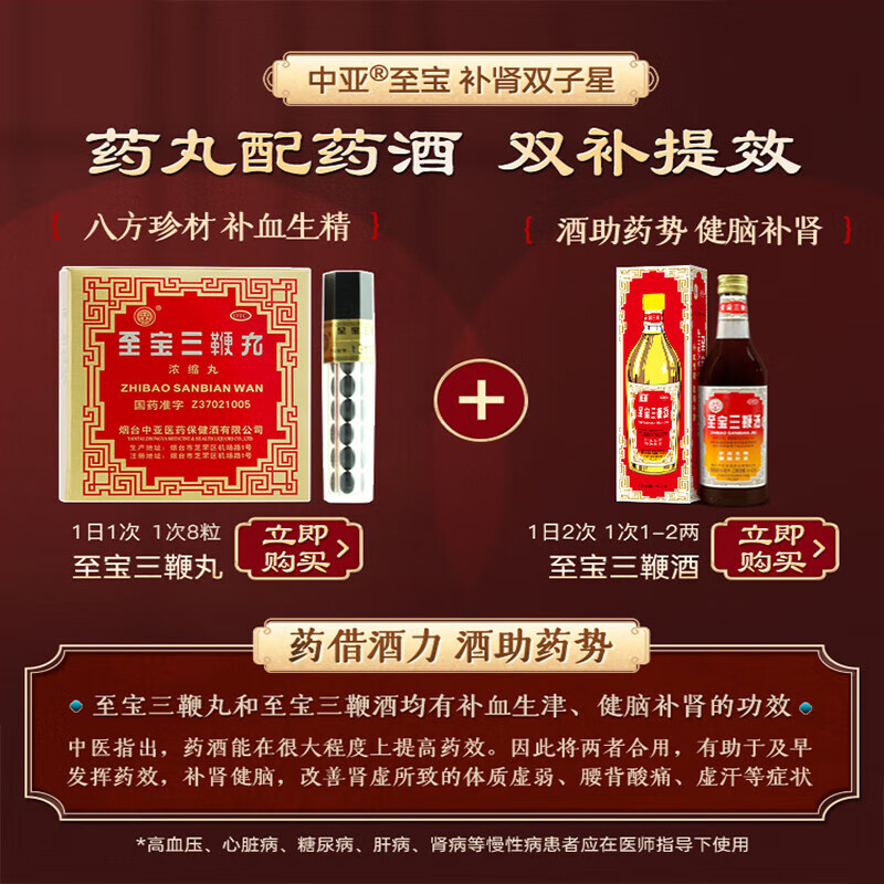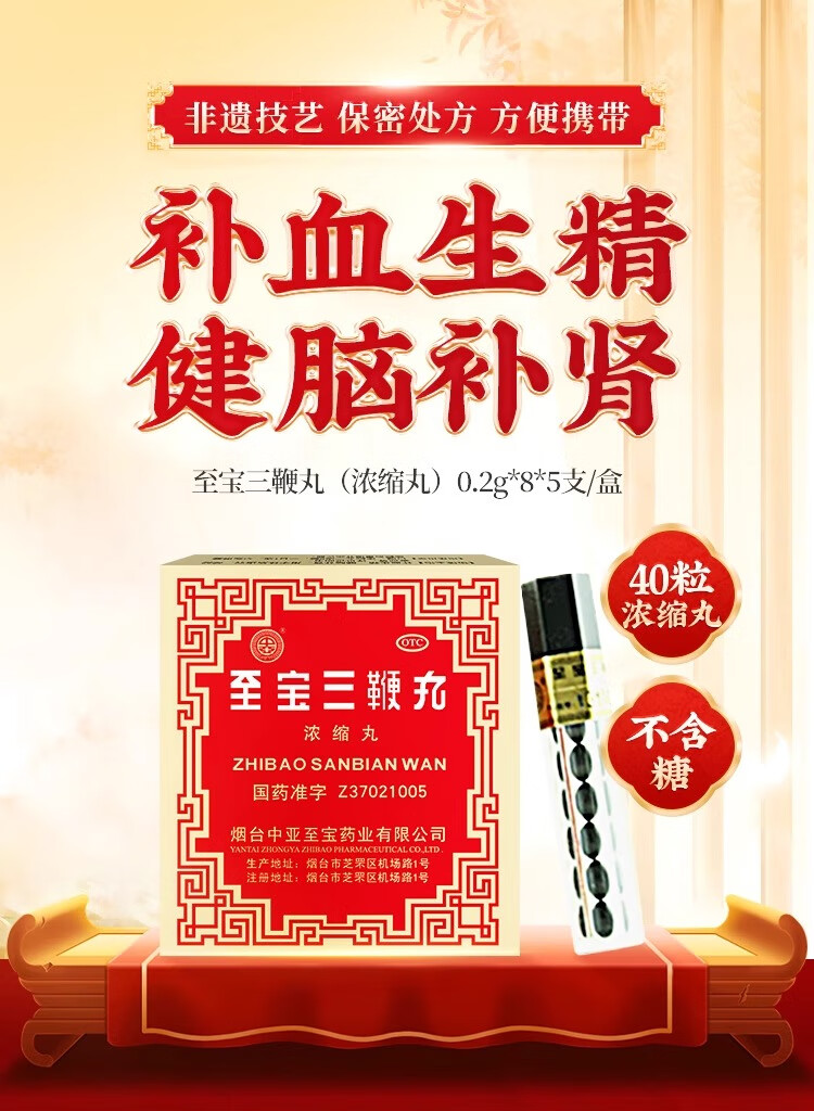 中亚 至宝三鞭丸 浓缩丸 40粒 补血生精 健脑补肾 神经衰弱 腰背酸痛 自汗虚汗 畏寒失眠 1盒5支【5天量】