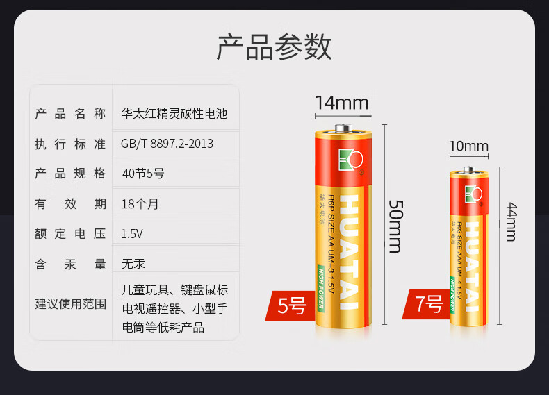 【京东快递包邮】 华太正品红精灵5号7号高性能碳性电池玩具遥控器鼠标挂钟智能锁碳性电池 高性能7号4粒 红精灵【耐用碳性】电量是普通2倍