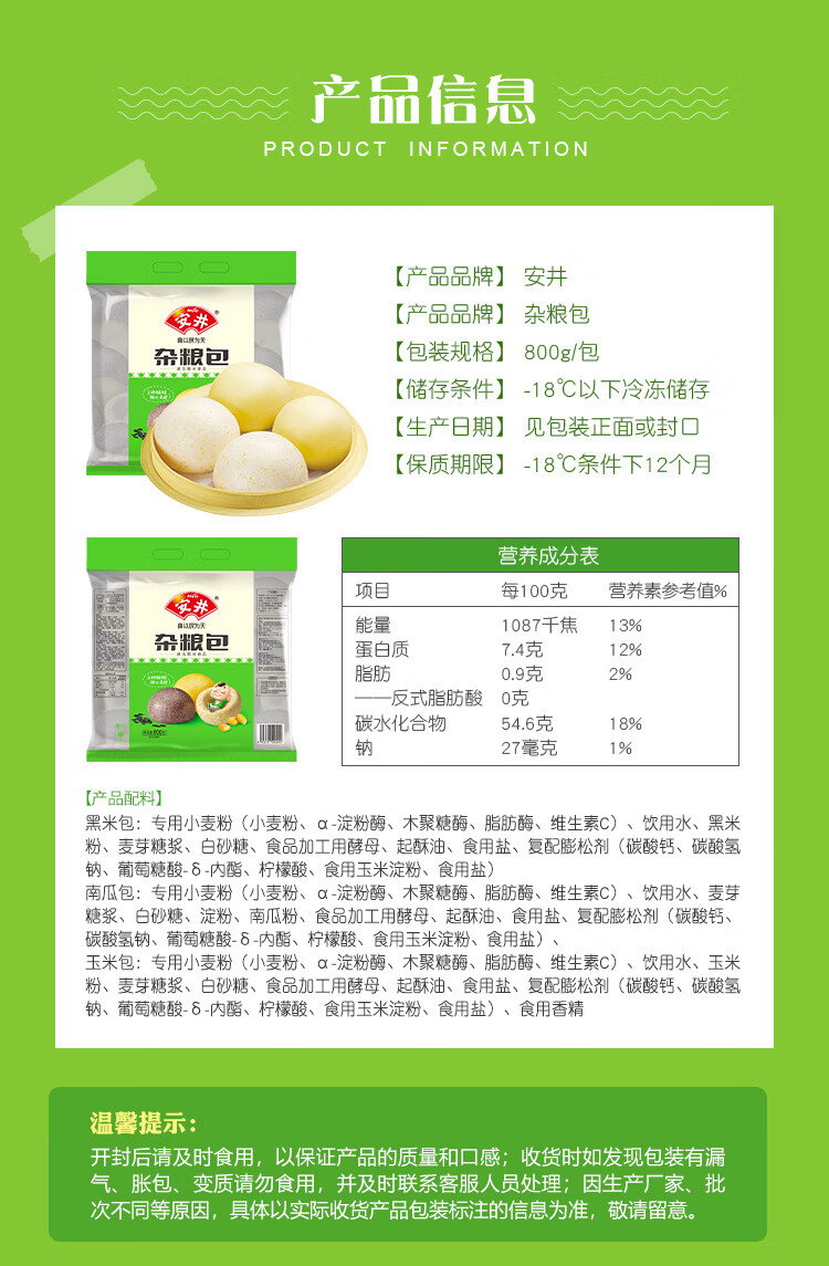安井杂粮包800g1包约27个粗粮馒头花卷家庭面点早餐包子春节也送货