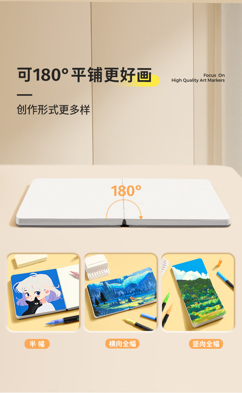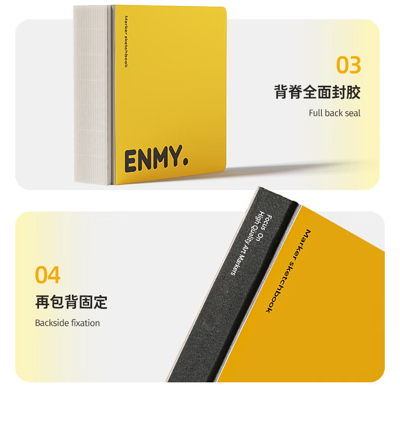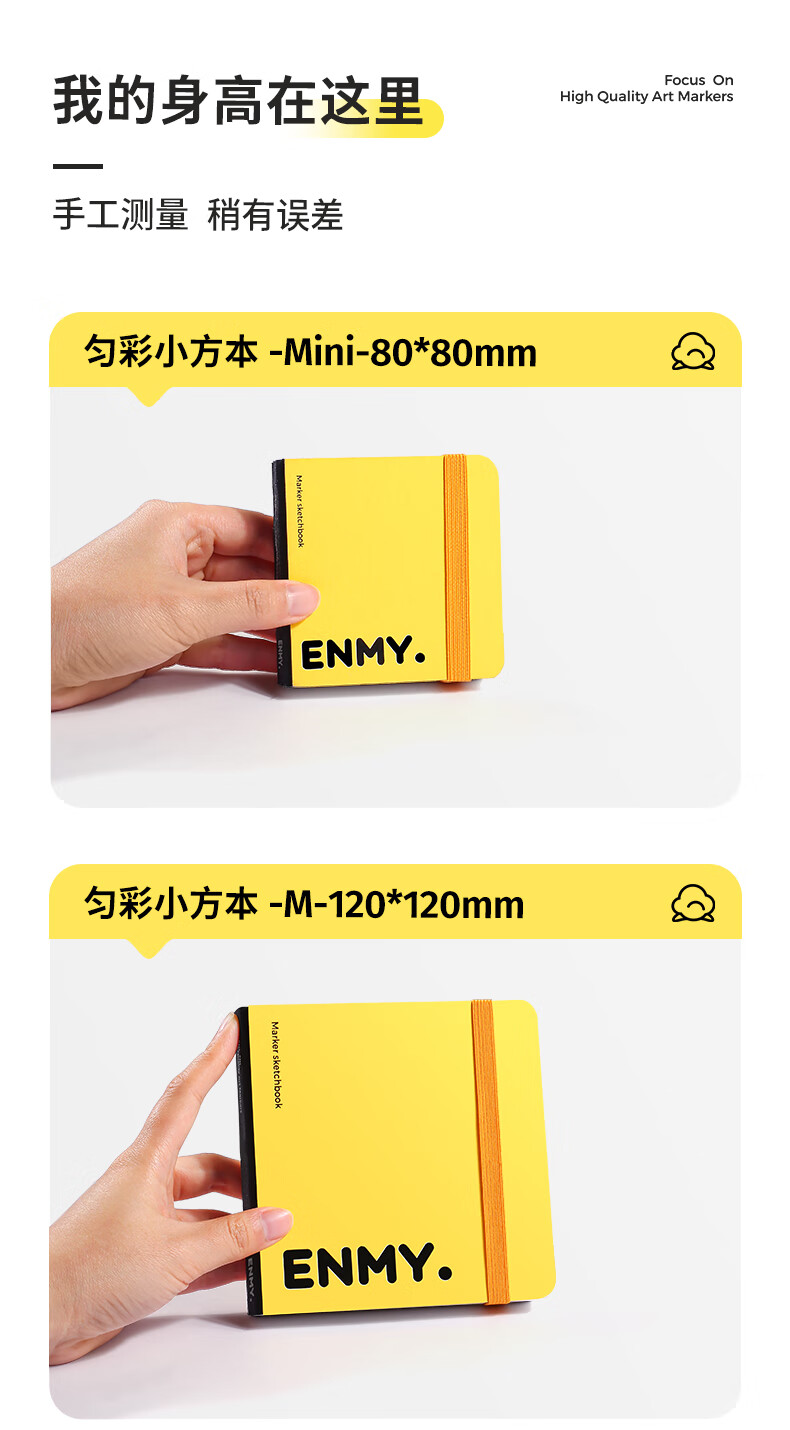 恩米enmy匀彩小方本小黄本300g全棉浆120*120mm丙烯马克笔专用便携式画纸美术生绘画本翻翻乐摸鱼本