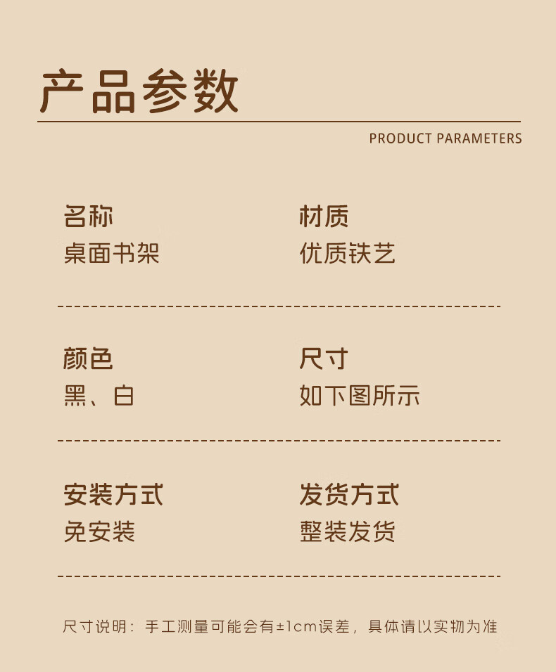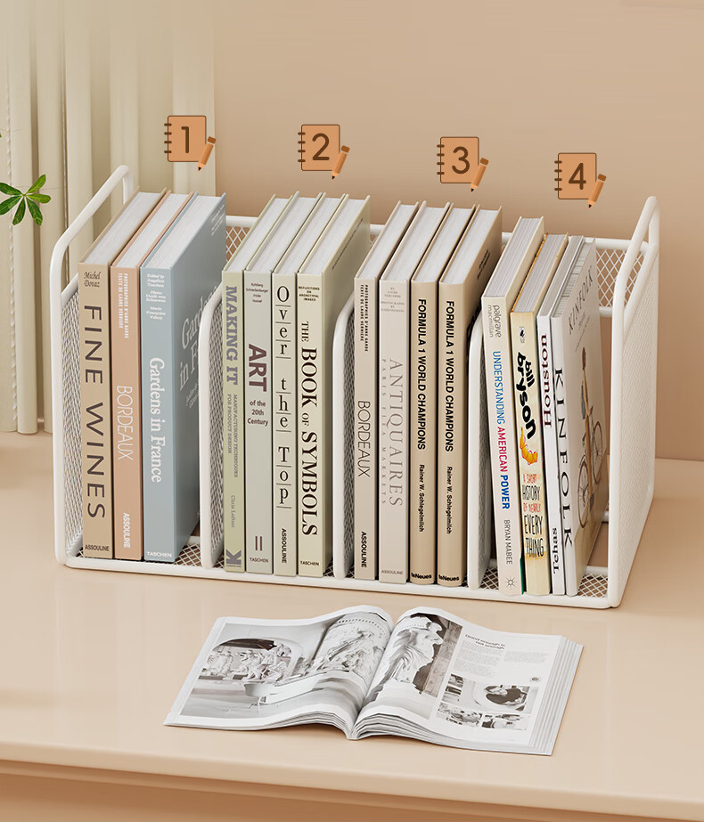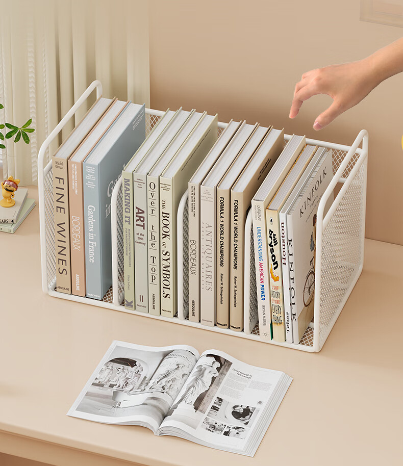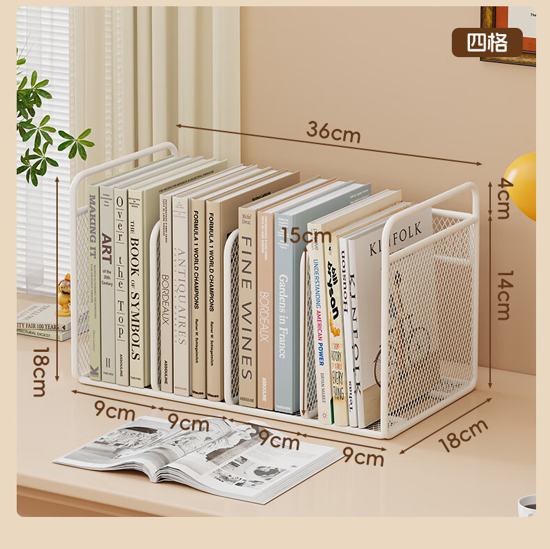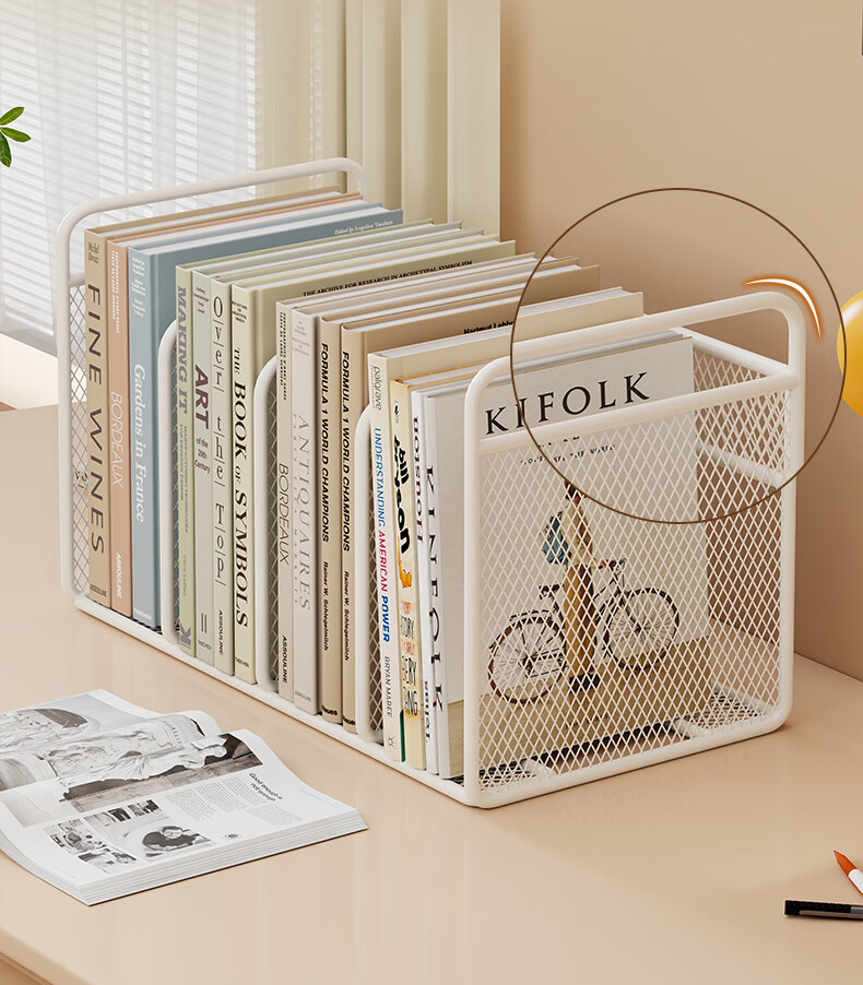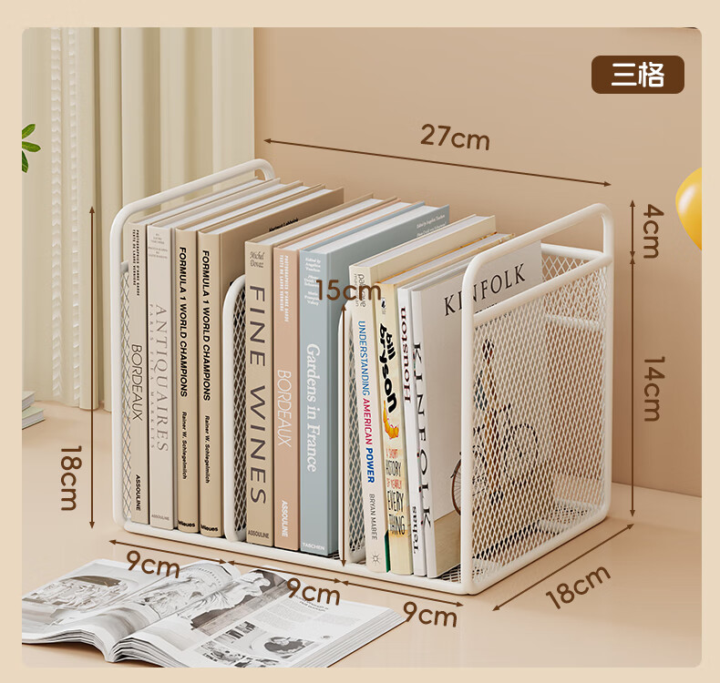 木格格桌面书架桌上简易书架学校用铁艺文件置物架收纳架储物架文件架子 白色三格
