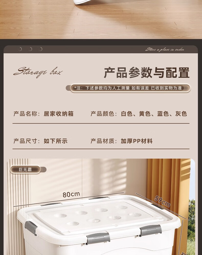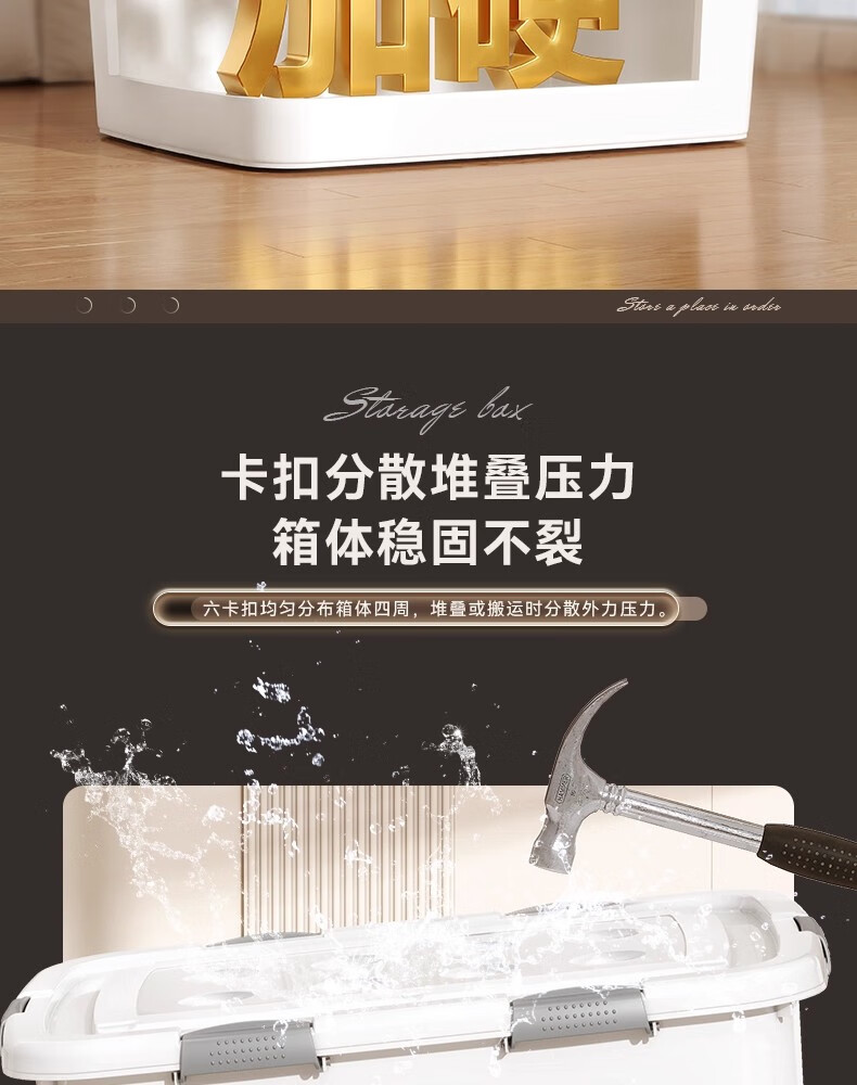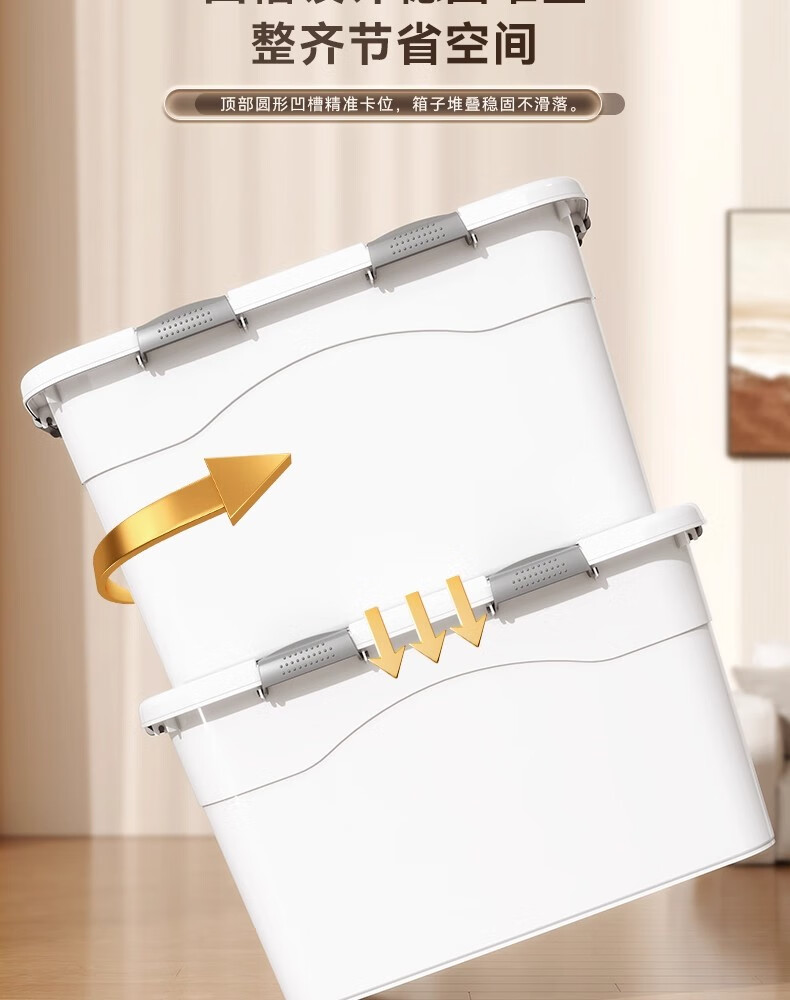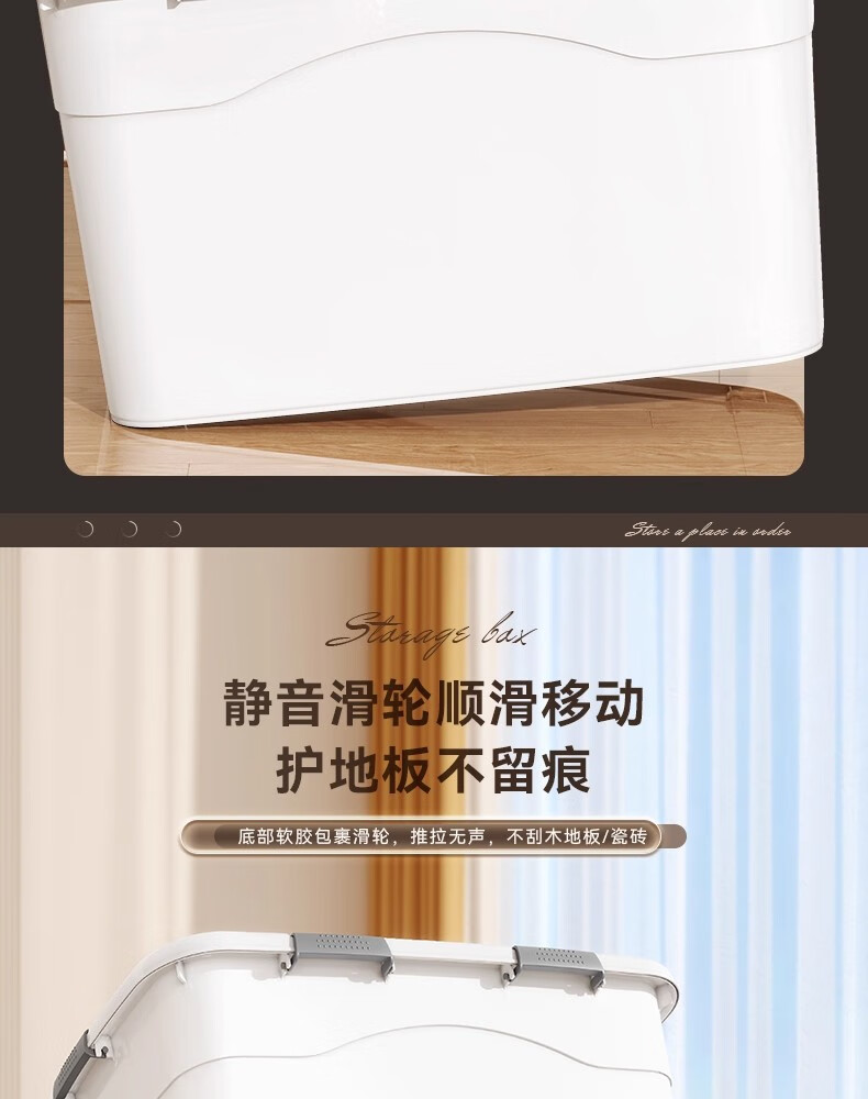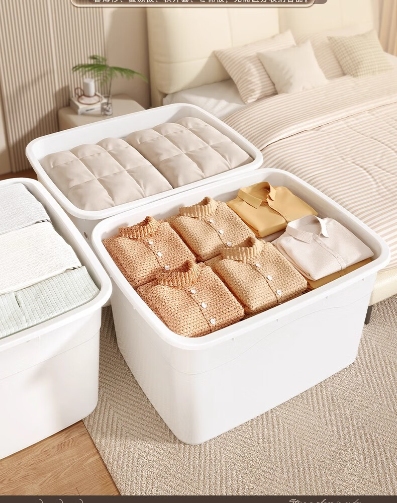 纳份爱收纳箱特大号衣服整理箱衣物被子储物箱塑料箱子收纳盒宿舍搬家箱 象牙白-大号【45*33*24cm】4扣4轮 3个装【升级密封】