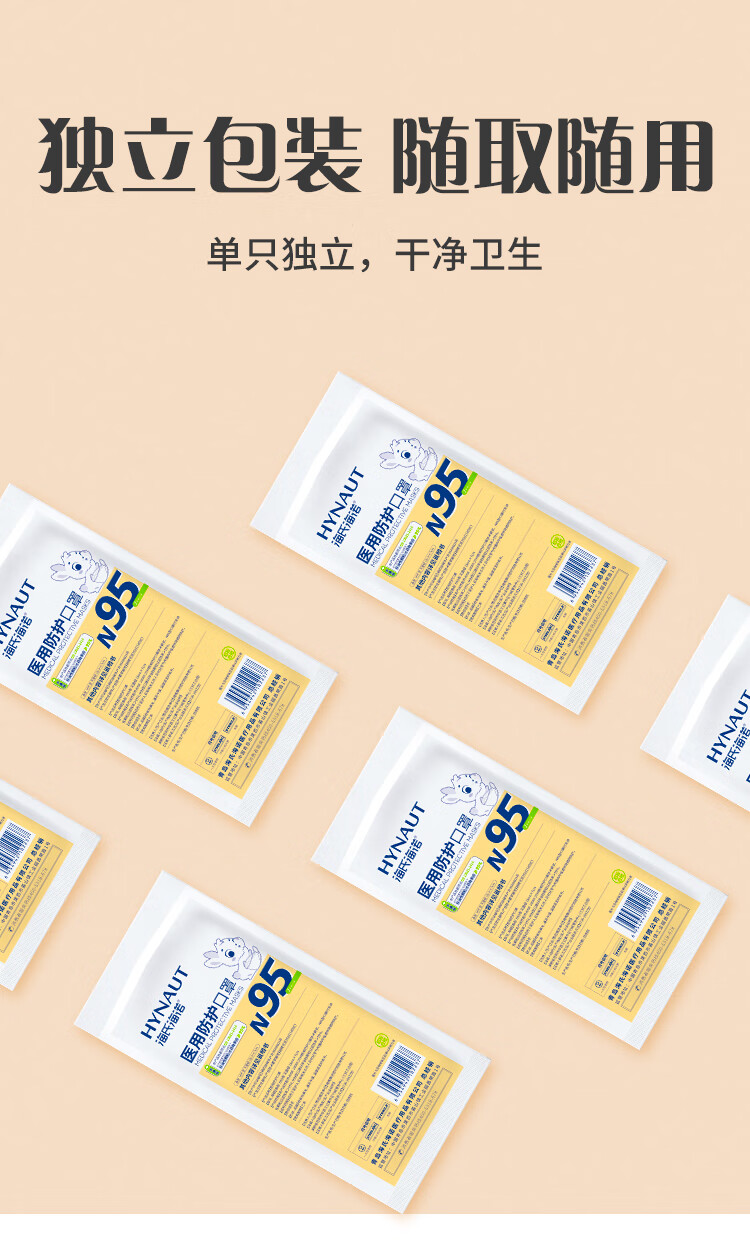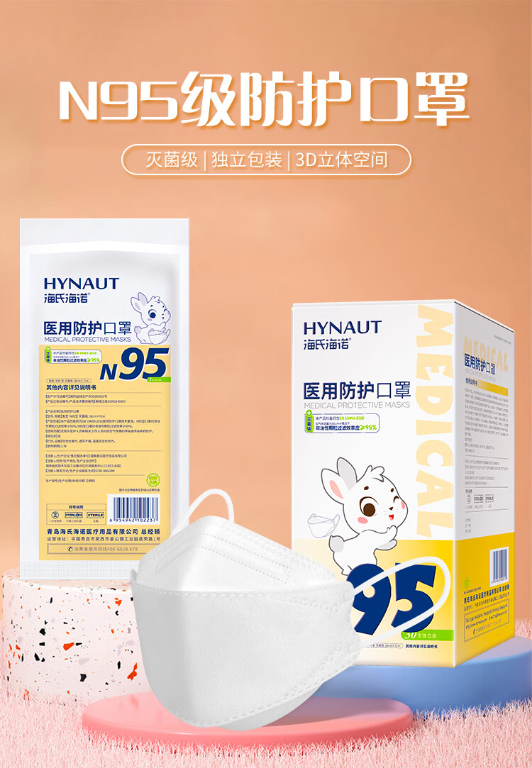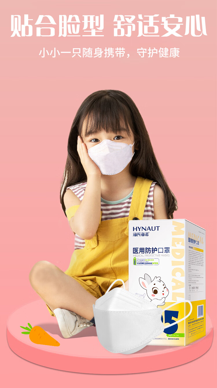 海氏海诺6-12岁儿童口罩N95医用防护口罩灭菌级独立包装一只一袋秋冬30支
