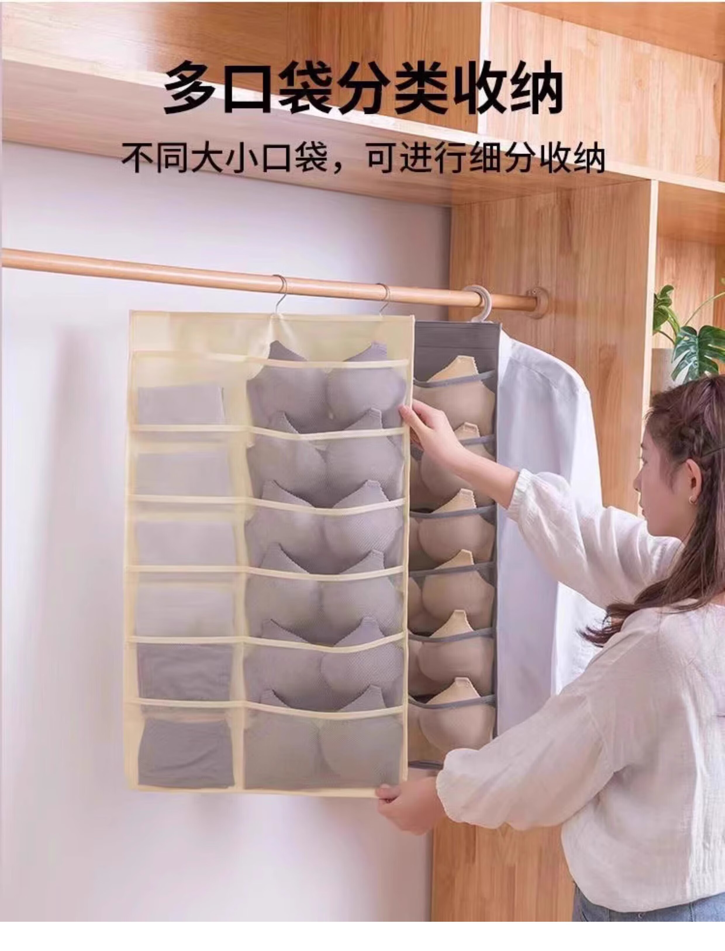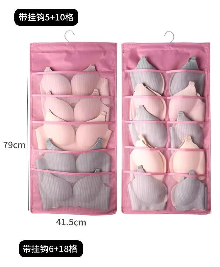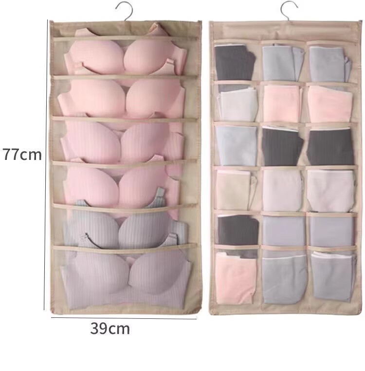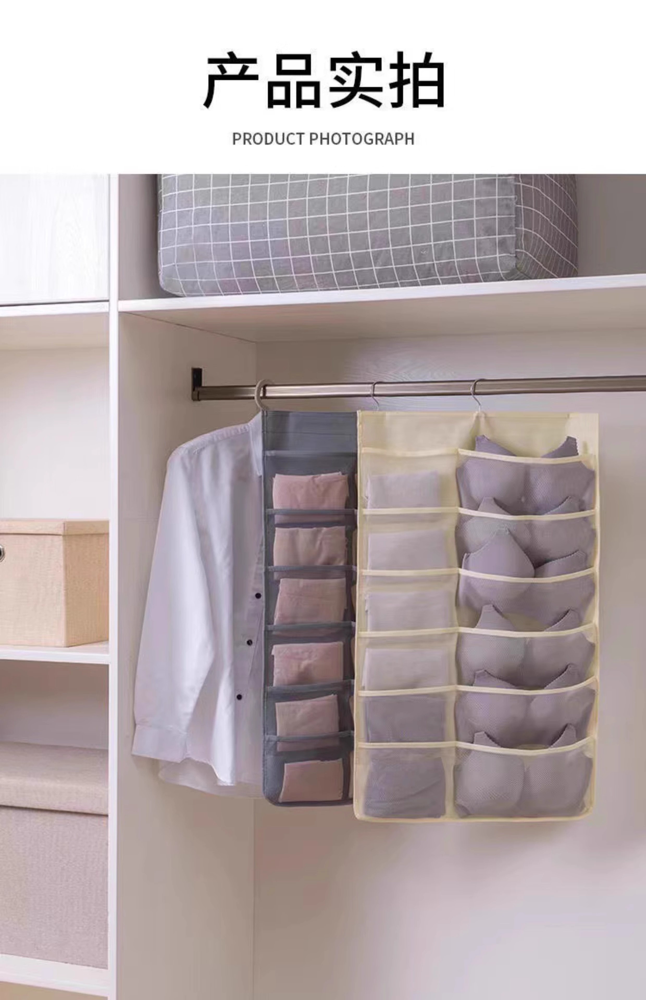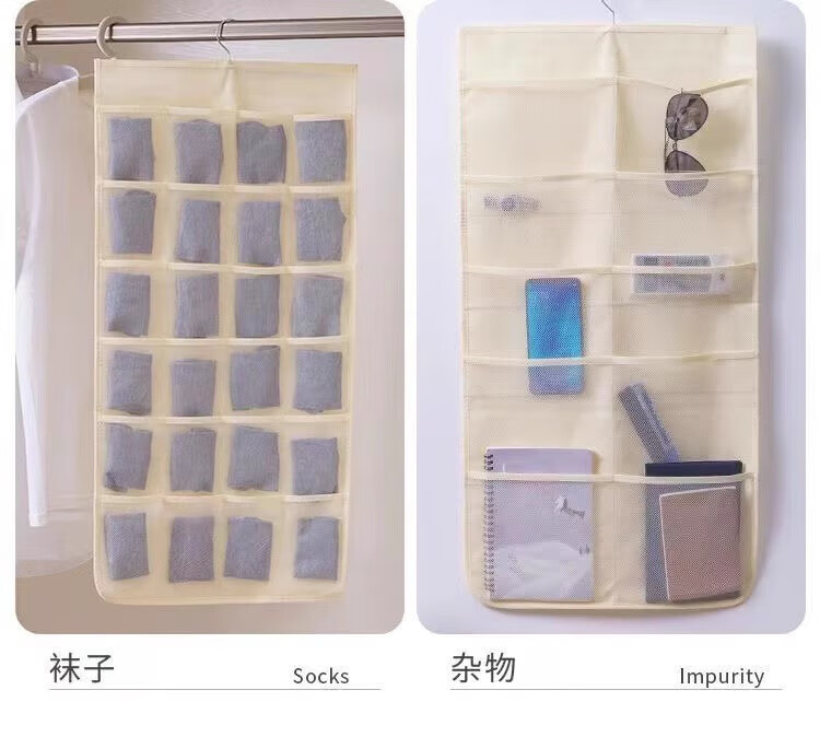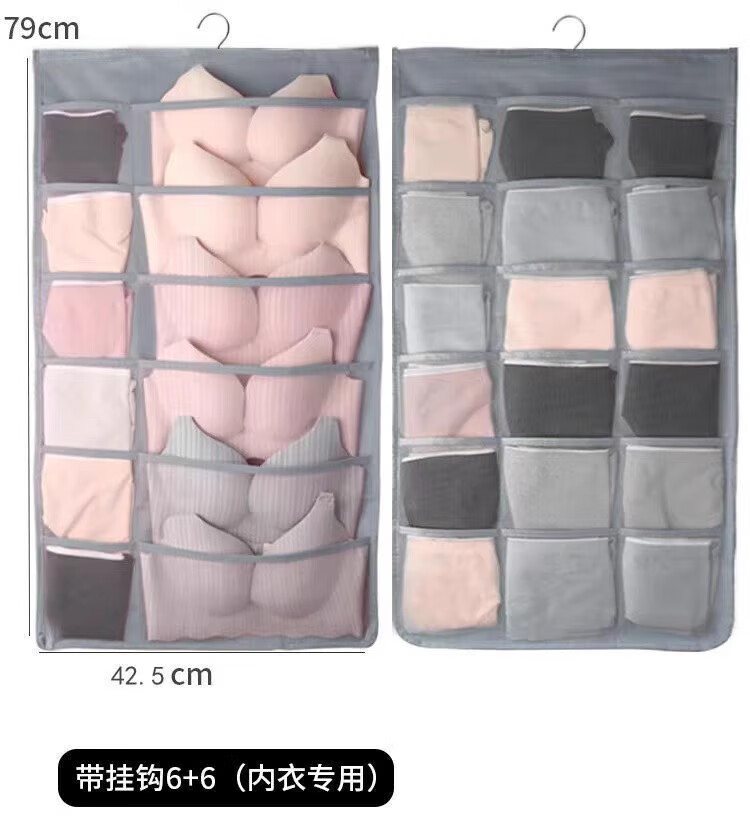 袜子收纳神器宿舍衣柜内衣内裤挂袋悬挂式网兜床头床边整理置物袋 灰色正面12格+反面24格【正反收纳】