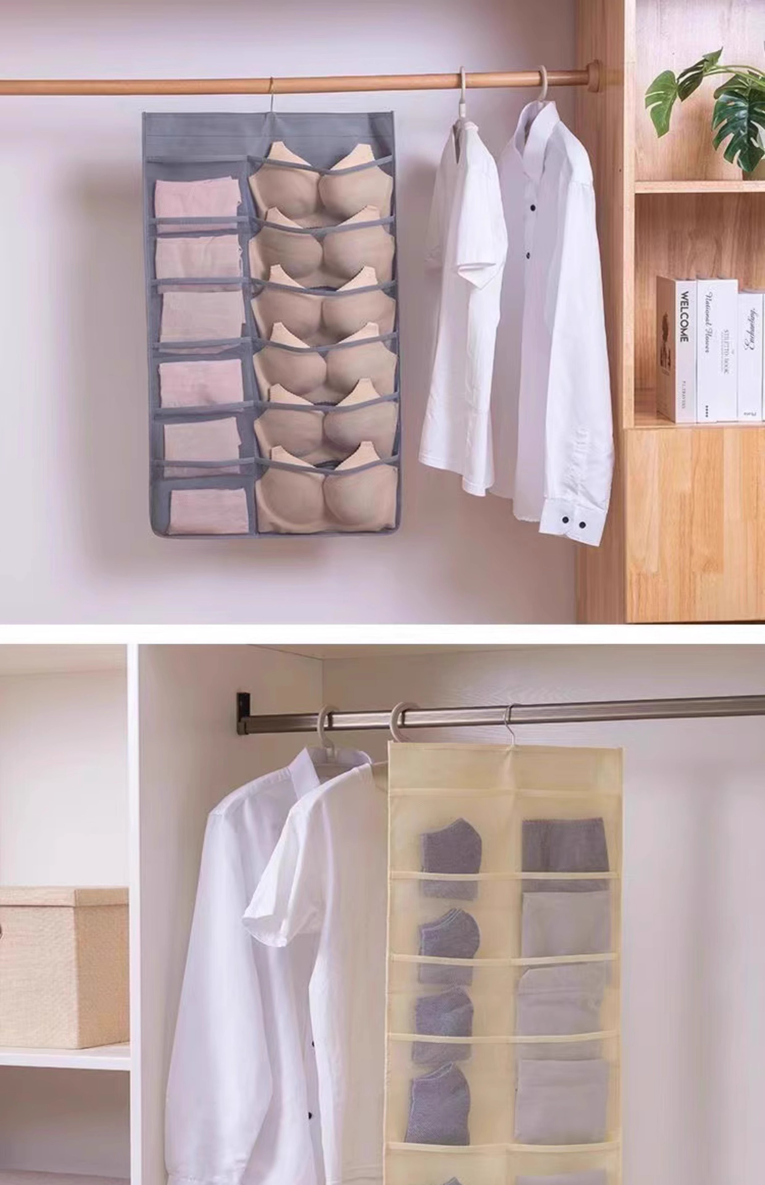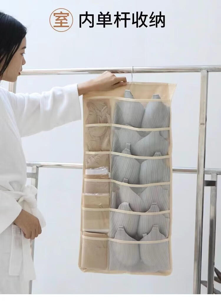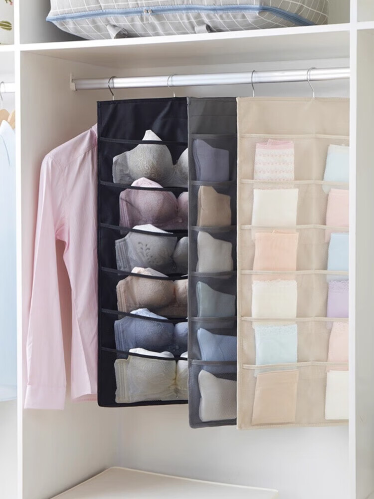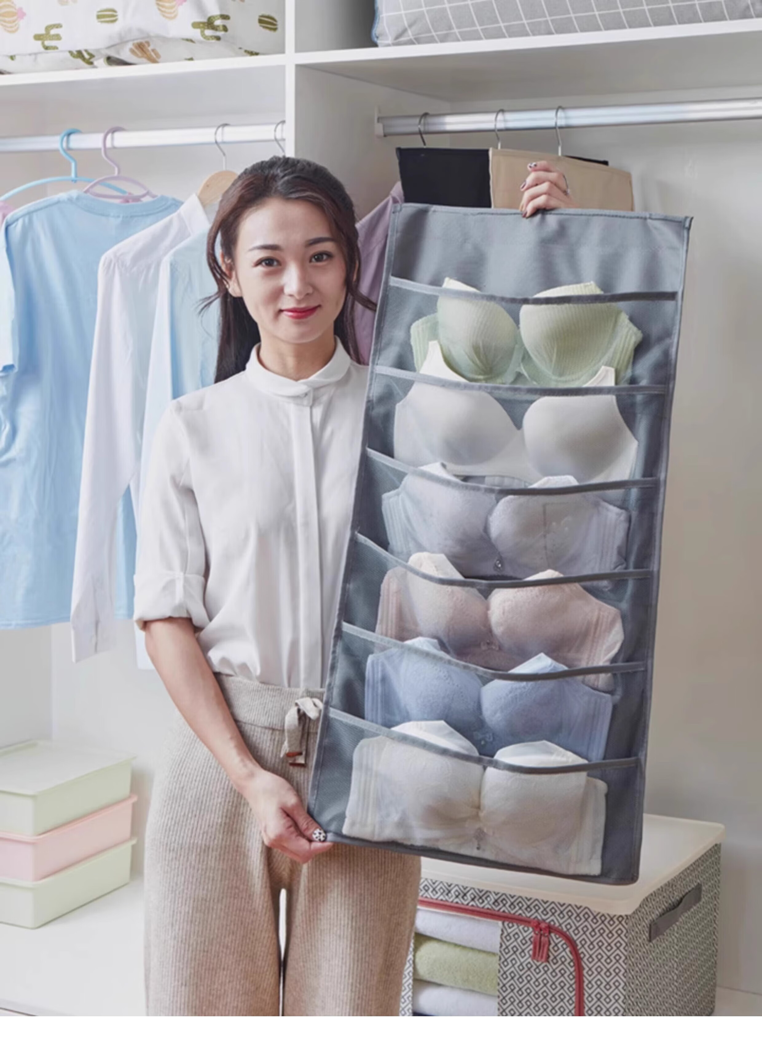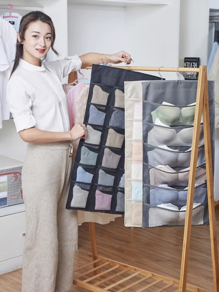 袜子收纳神器宿舍衣柜内衣内裤挂袋悬挂式网兜床头床边整理置物袋 灰色正面12格+反面24格【正反收纳】