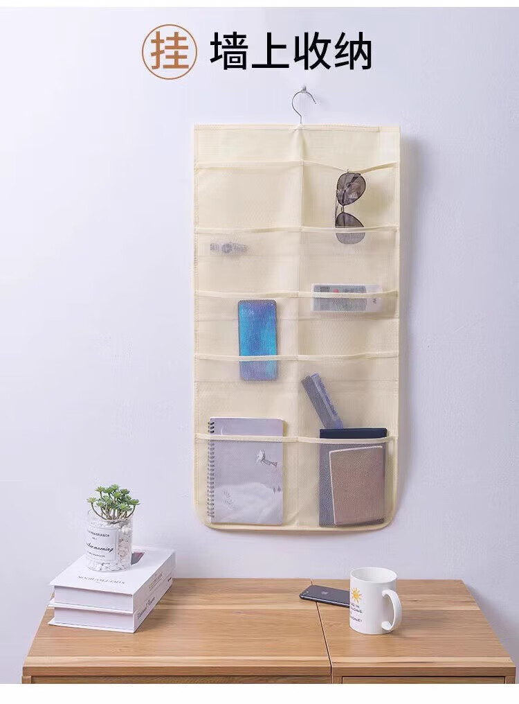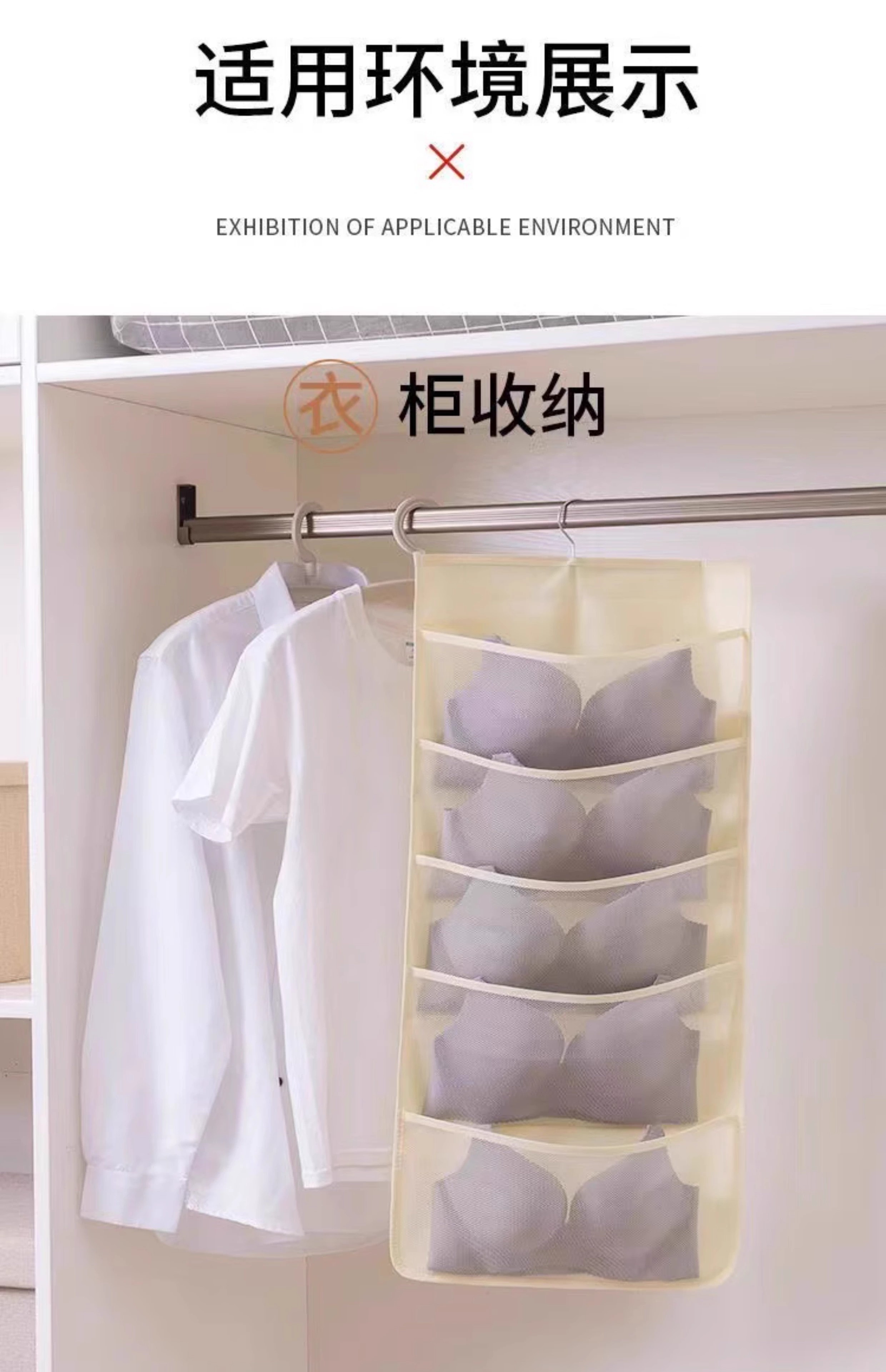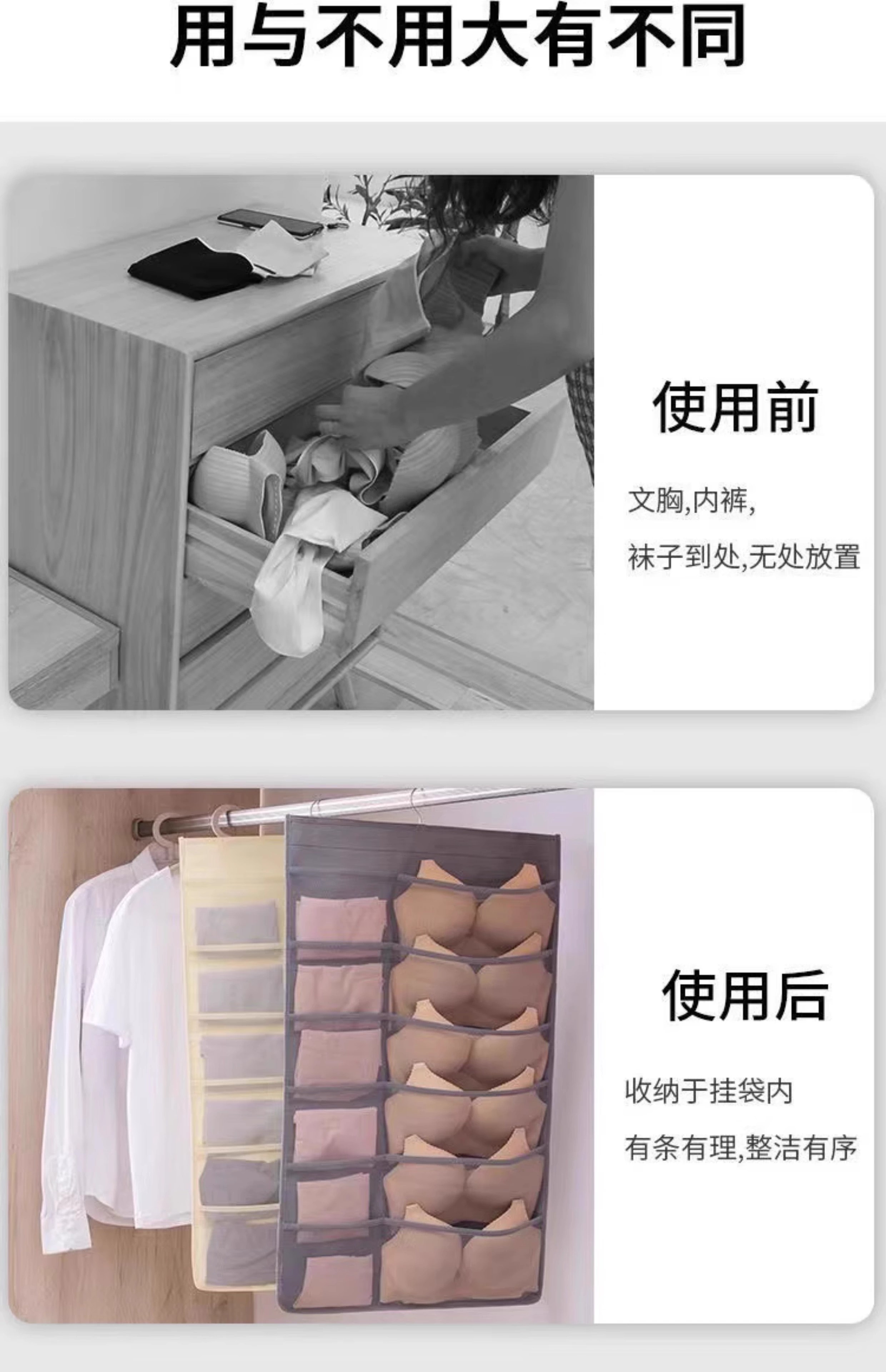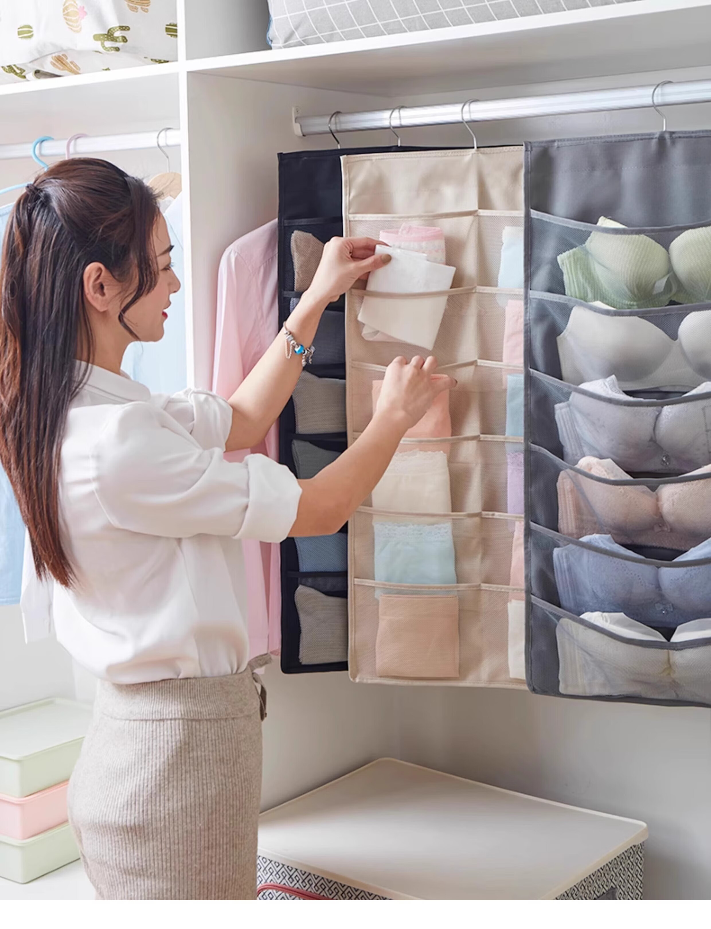 袜子收纳神器宿舍衣柜内衣内裤挂袋悬挂式网兜床头床边整理置物袋 灰色正面12格+反面24格【正反收纳】