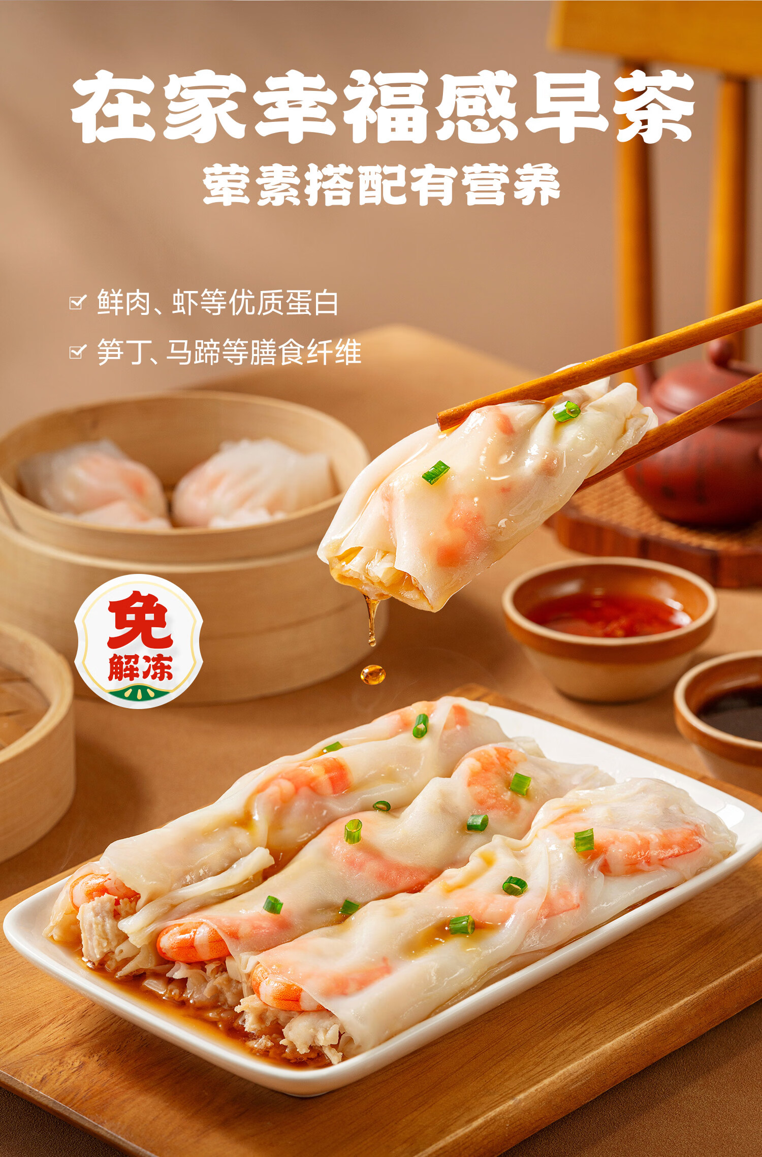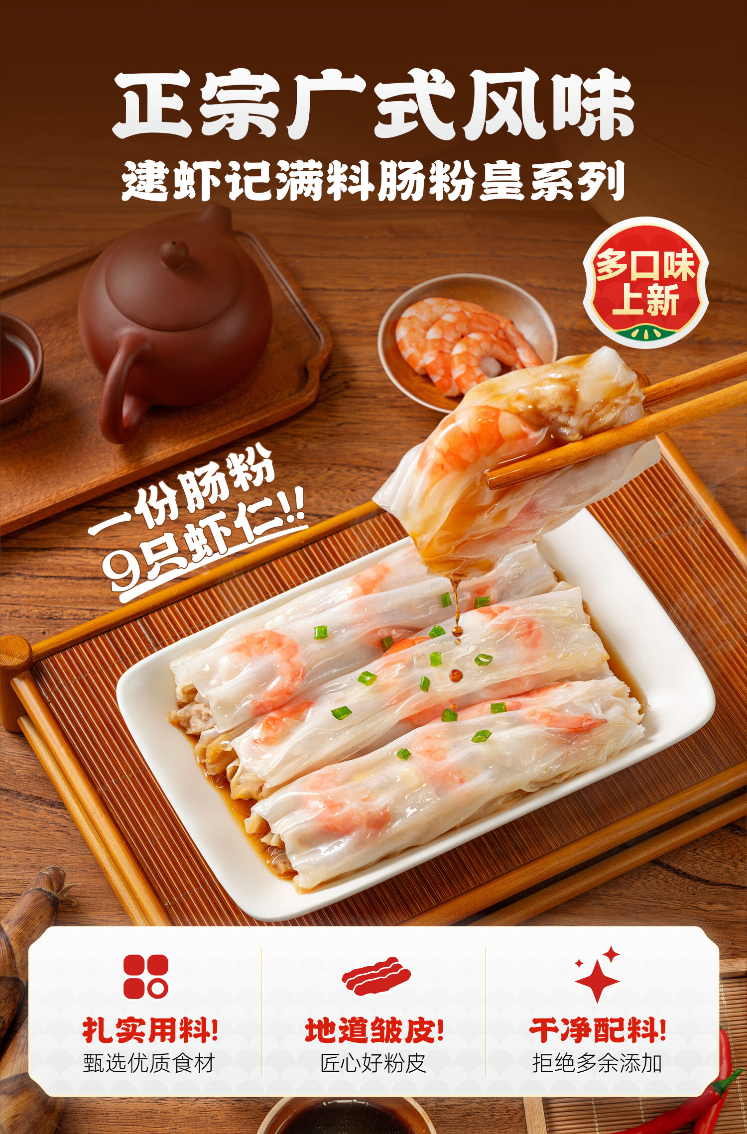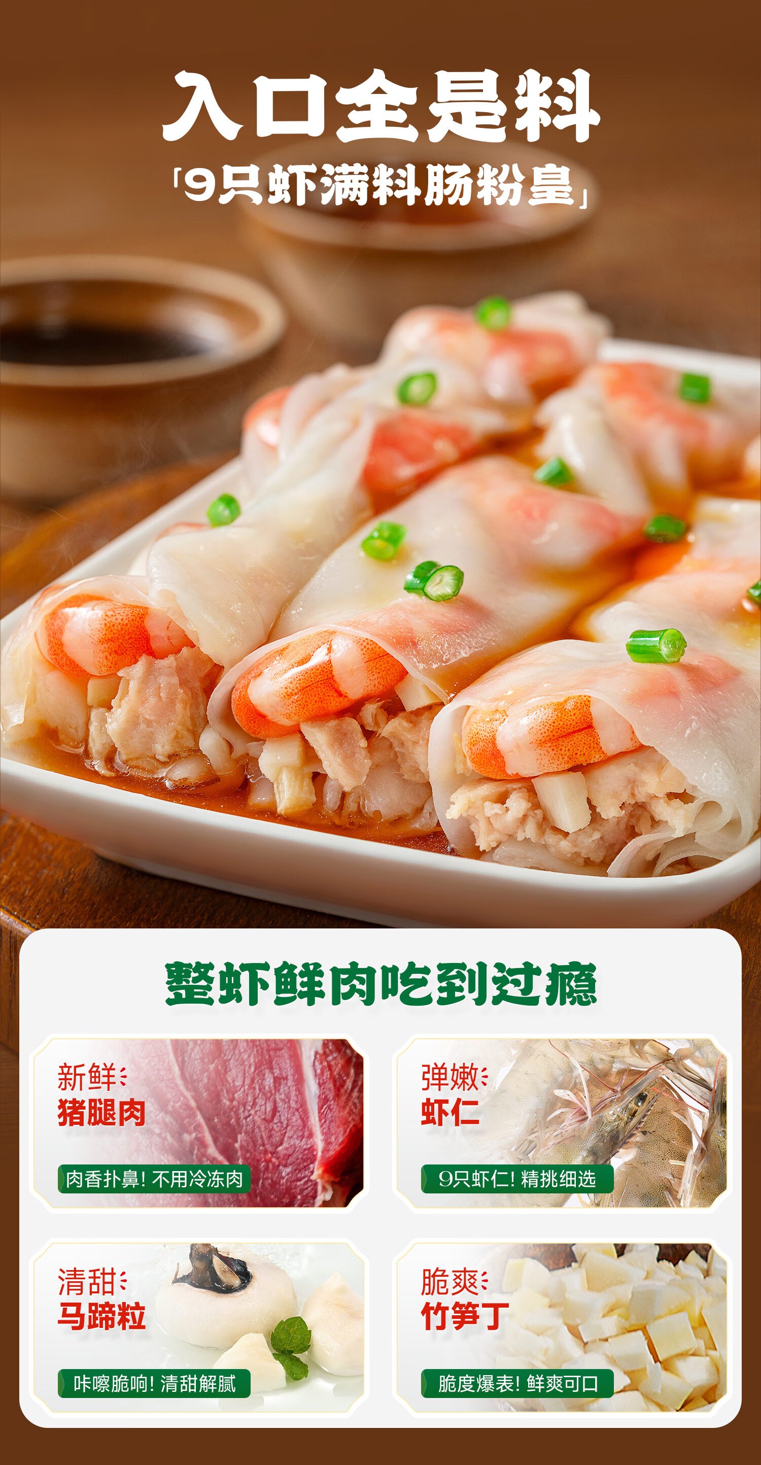 逮虾记【新品】虾仁肠粉加热即食广东肠粉半成品广式肠粉早茶 9只虾满料肠粉皇4袋