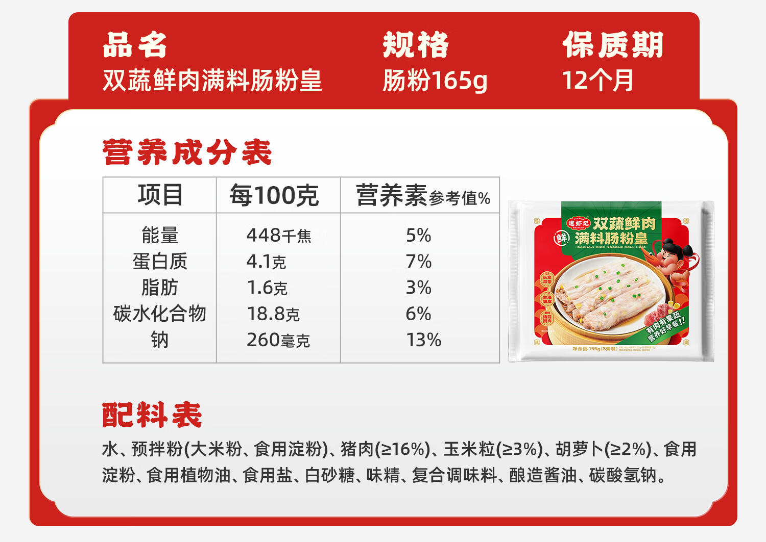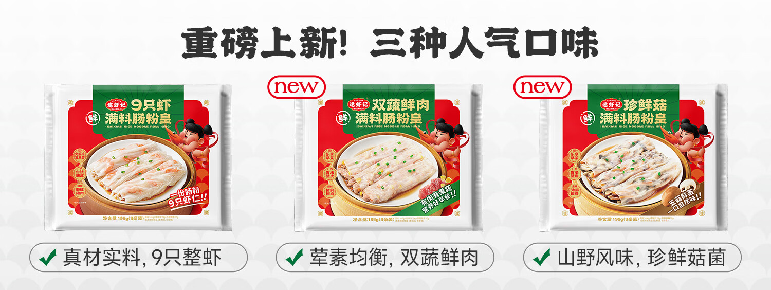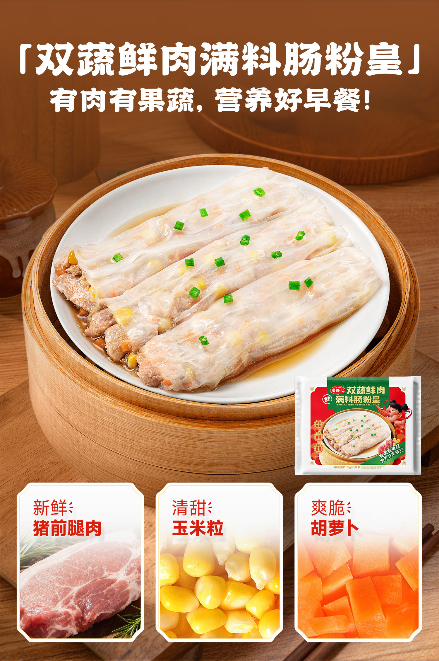 逮虾记【新品】虾仁肠粉加热即食广东肠粉半成品广式肠粉早茶 9只虾满料肠粉皇4袋
