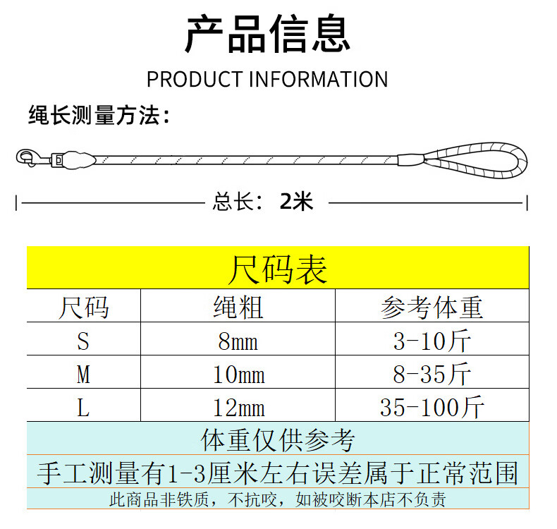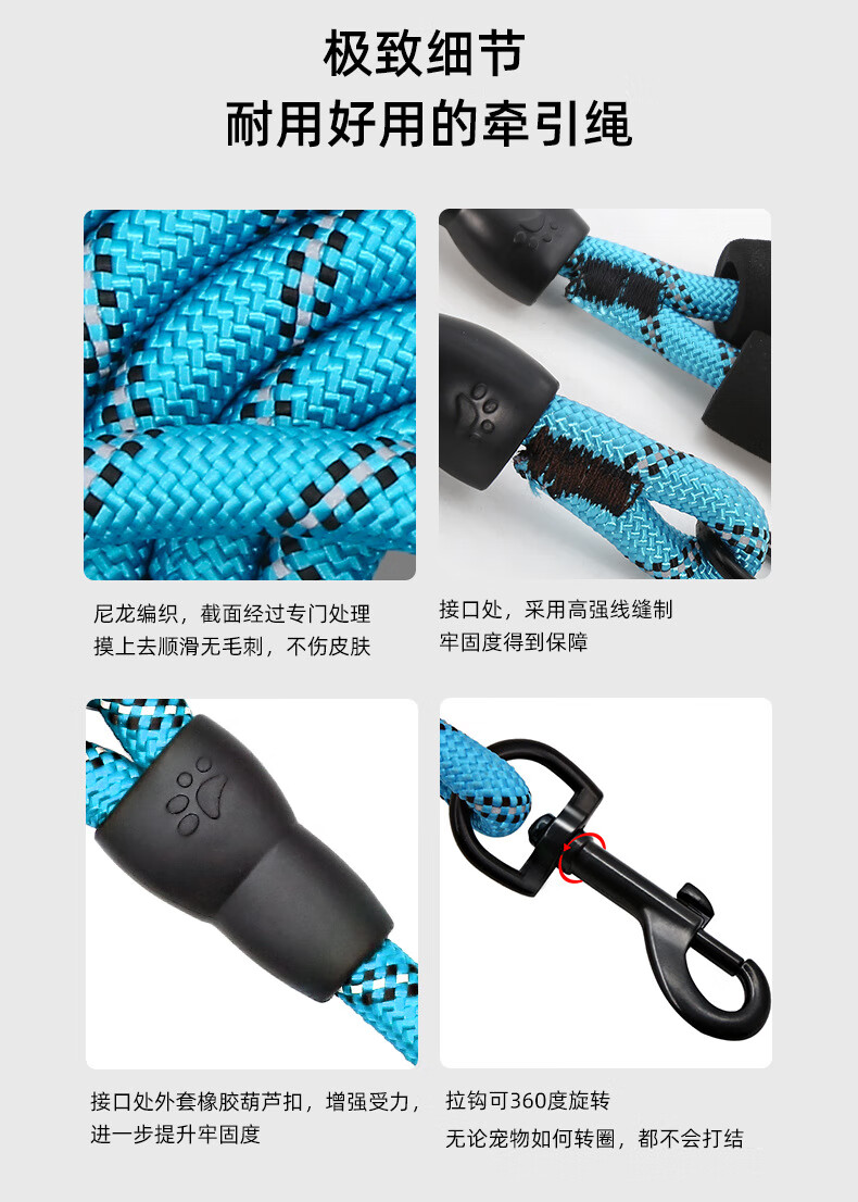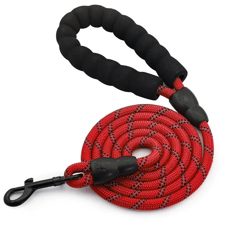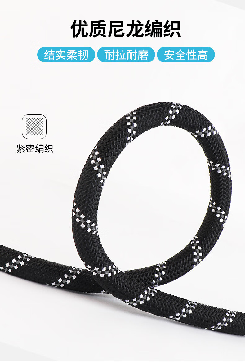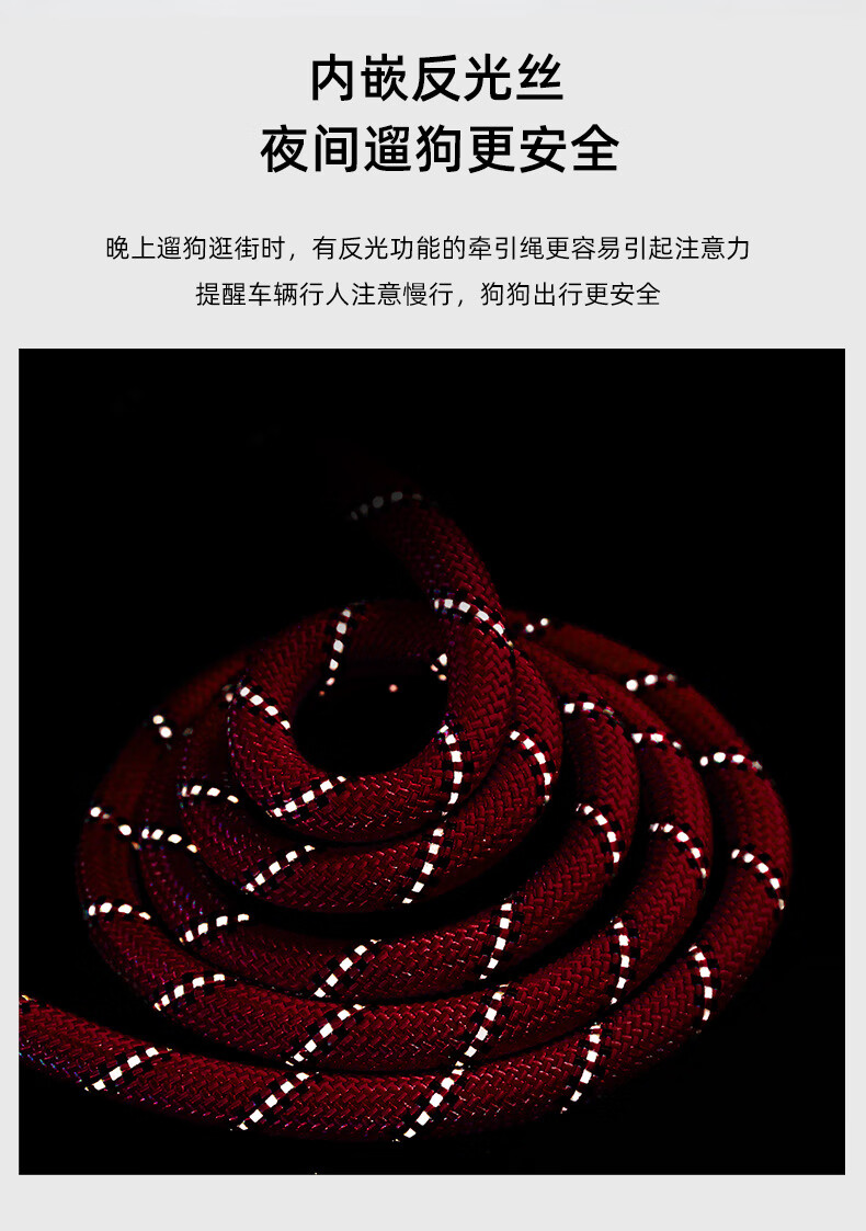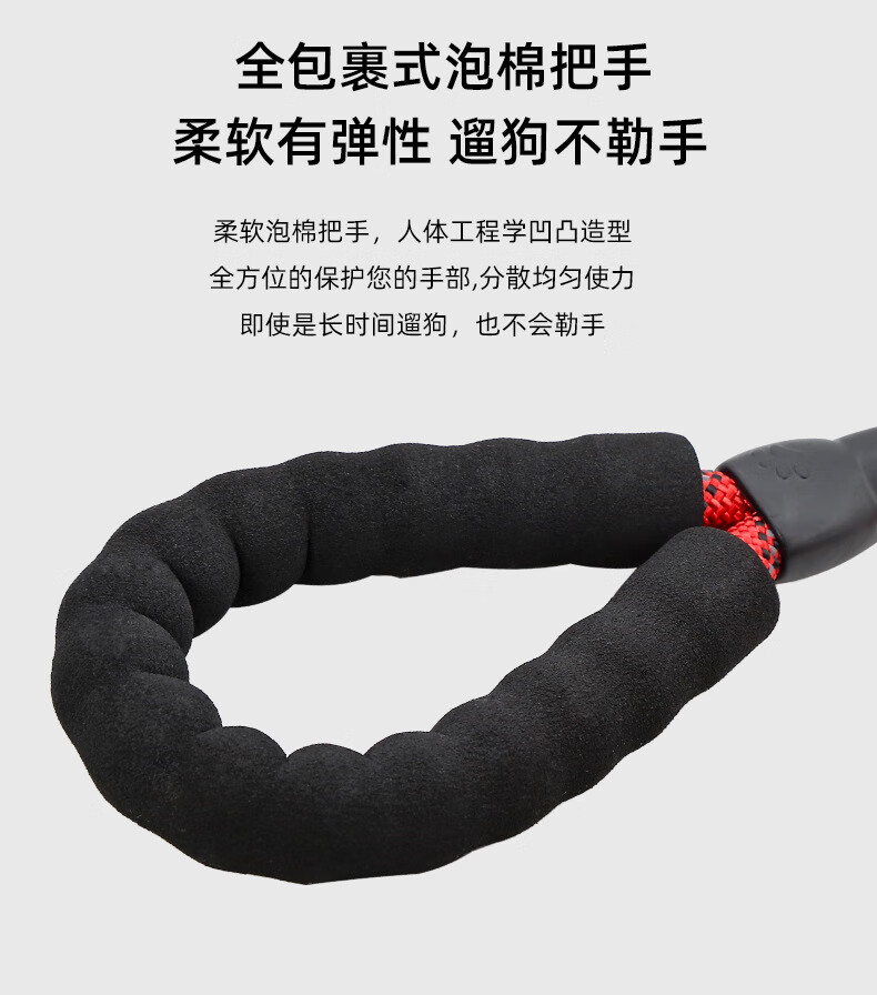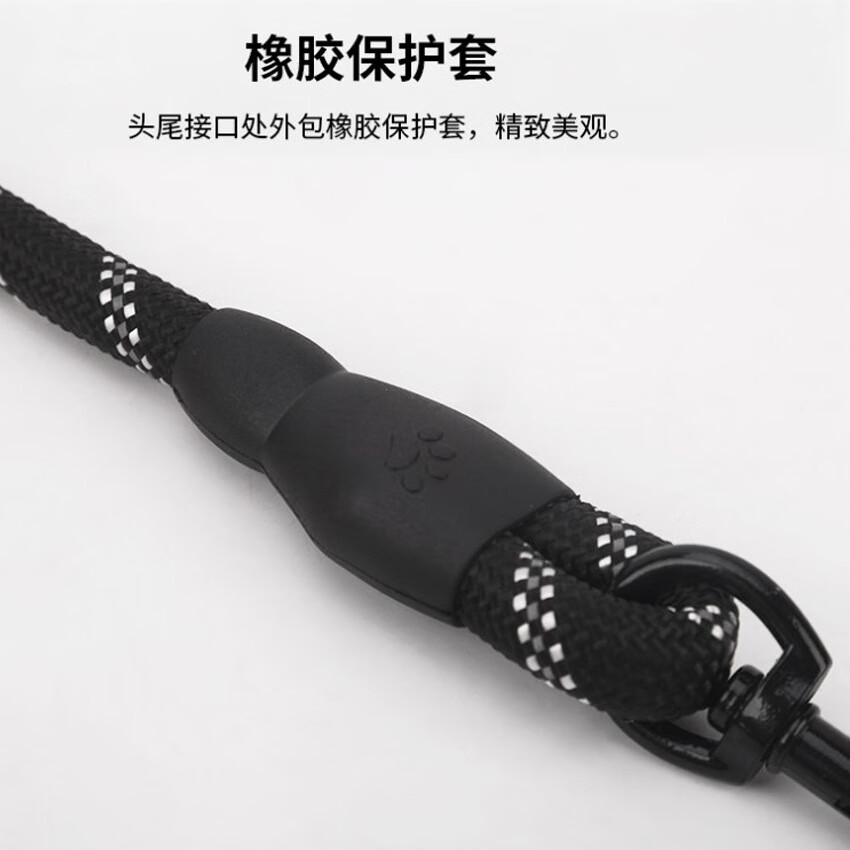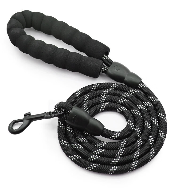 斯派科遛狗牵引绳2/3/5米训犬狗绳小中大型犬弹力反光条牵引绳拴狗链子 黑色/10mm/建议35斤内 2米【送发光吊坠】