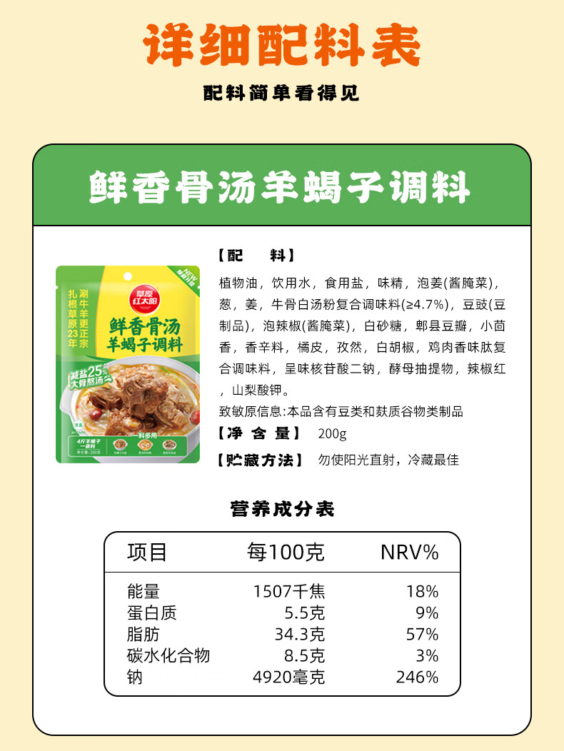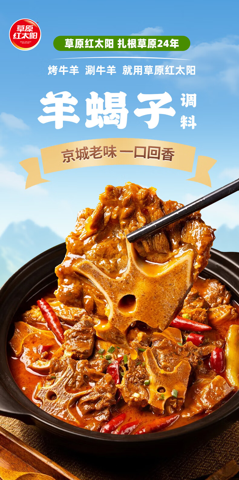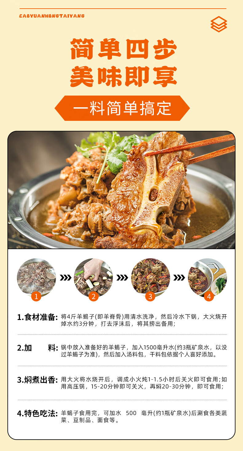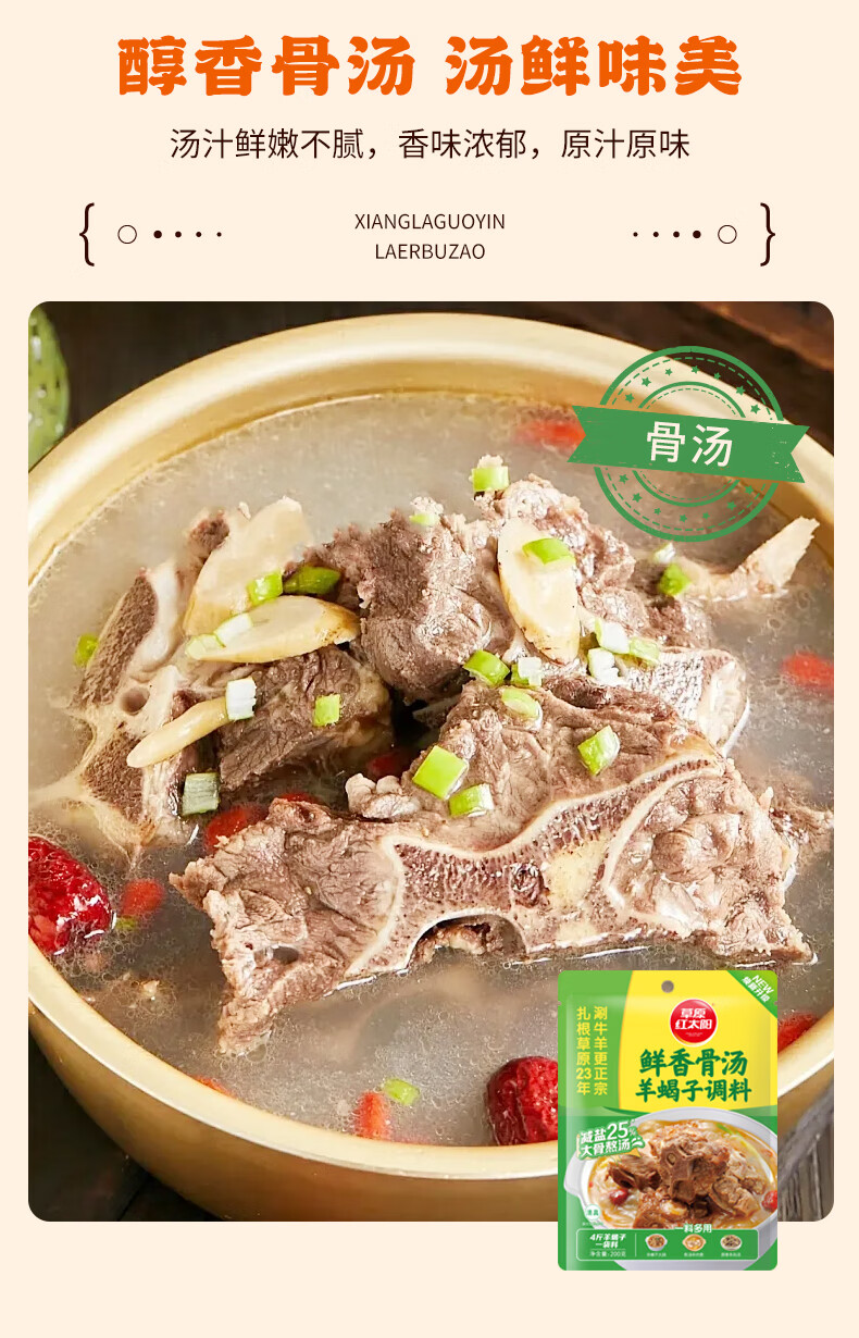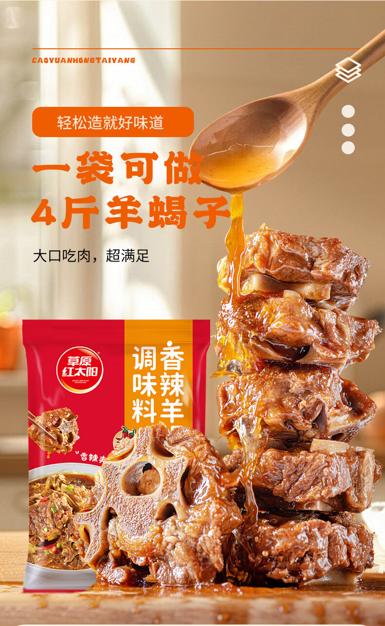 草原红太阳羊蝎子调料包骨汤香辣家常红焖红烧炖牛羊肉棒骨老北京火锅底料 【香辣】羊蝎子调料*3袋