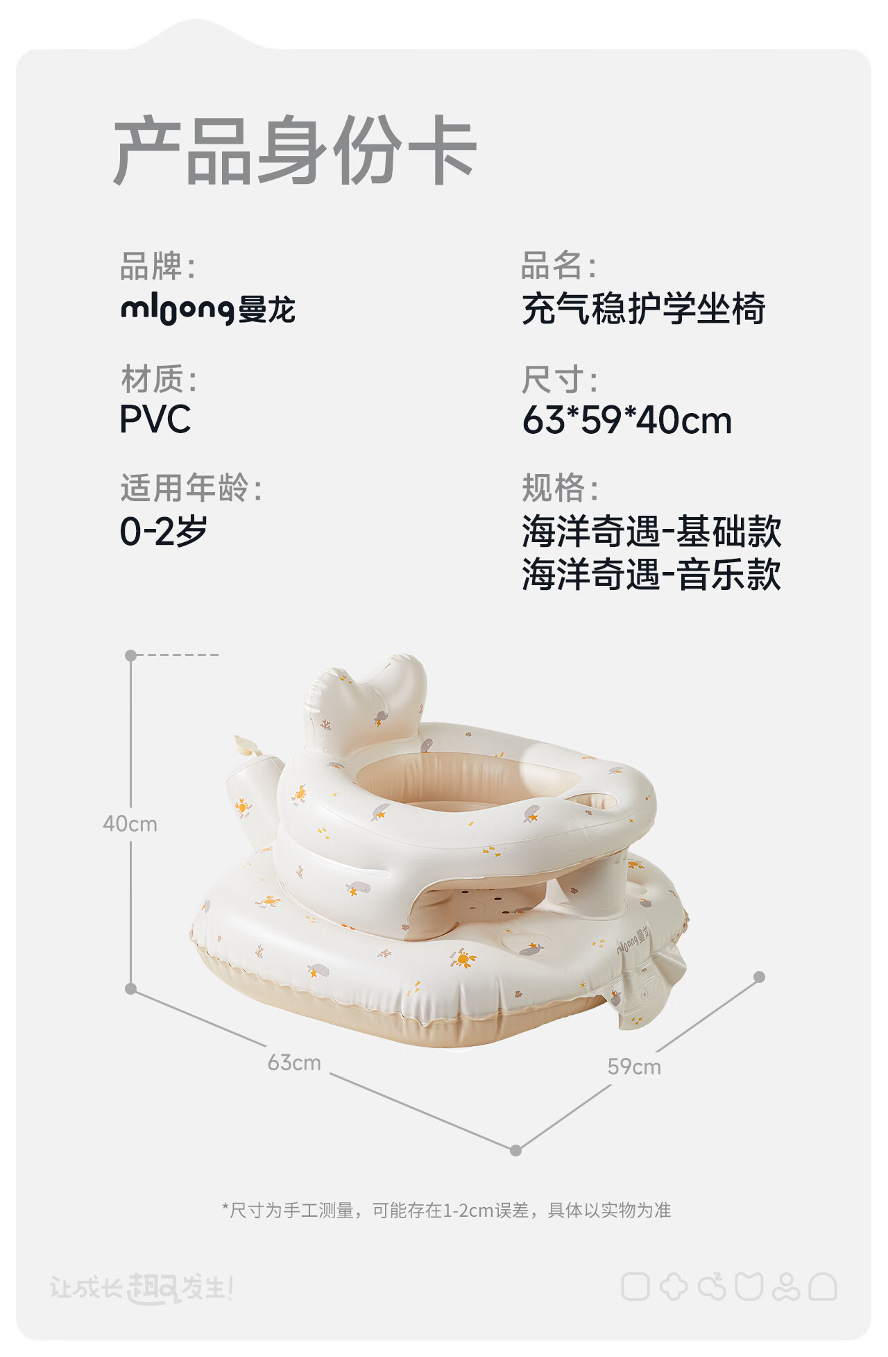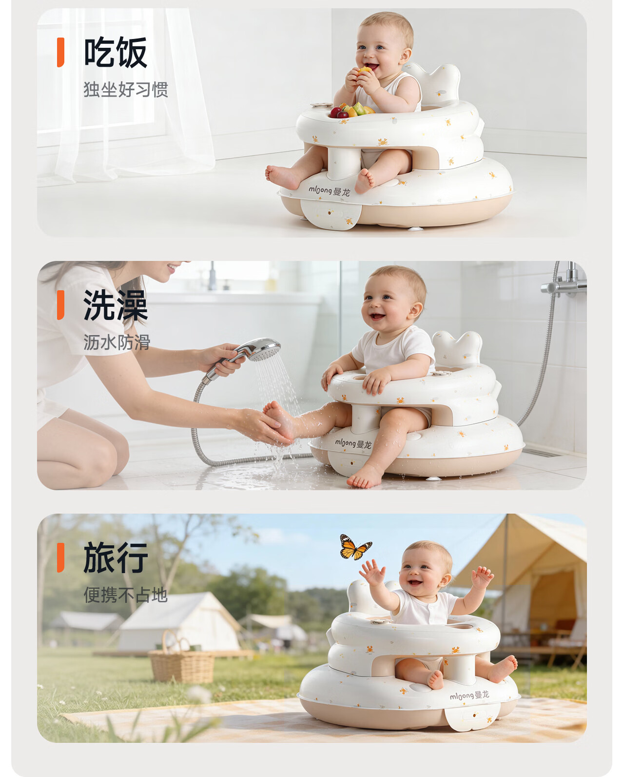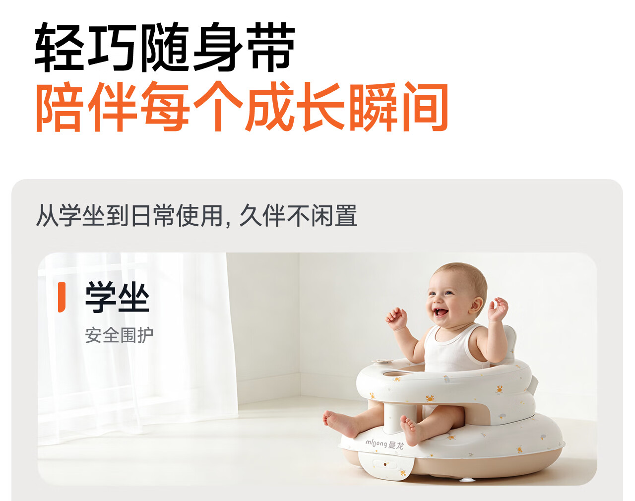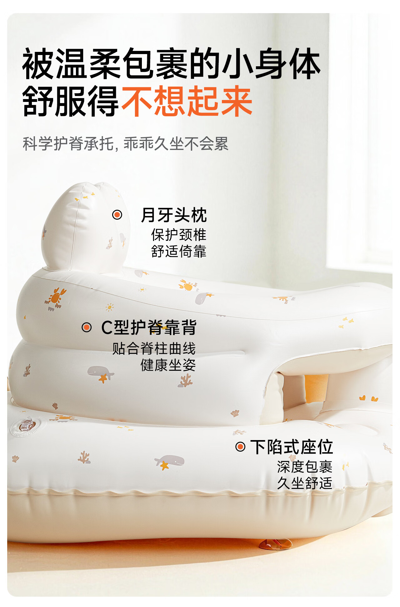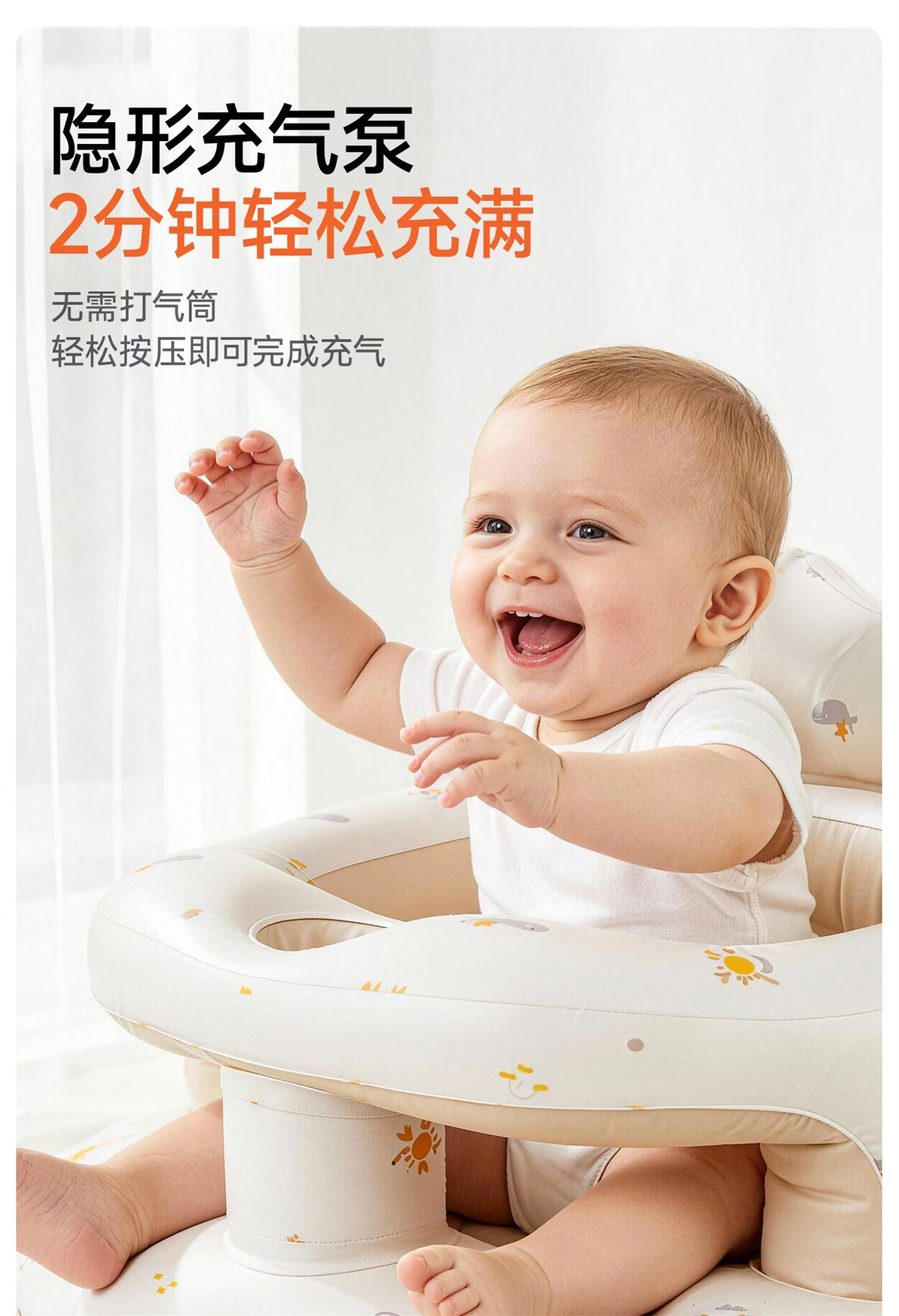 曼龙学坐椅餐椅婴儿充气沙发宝宝坐立神器护脊柱练习儿童不伤脊柱座椅 充气学坐椅-基础款