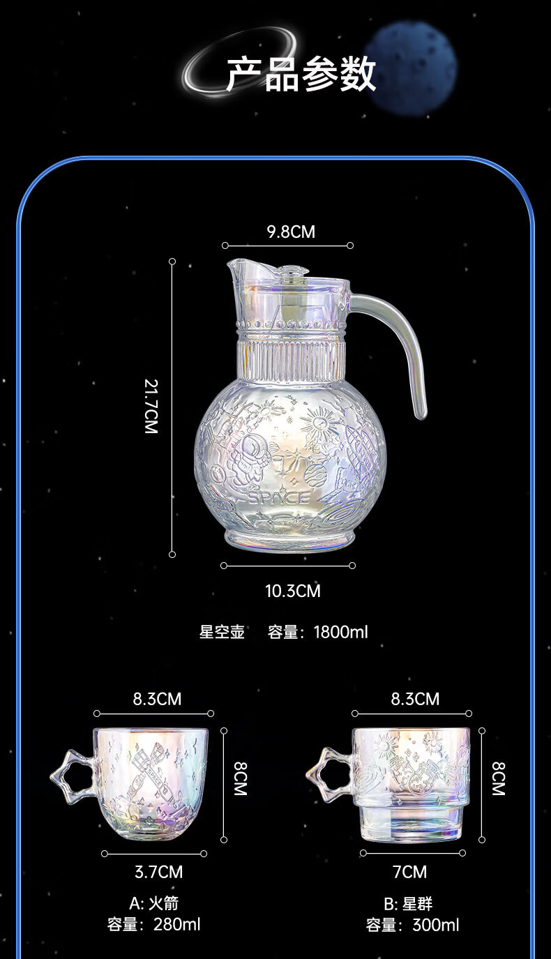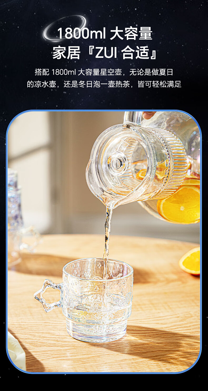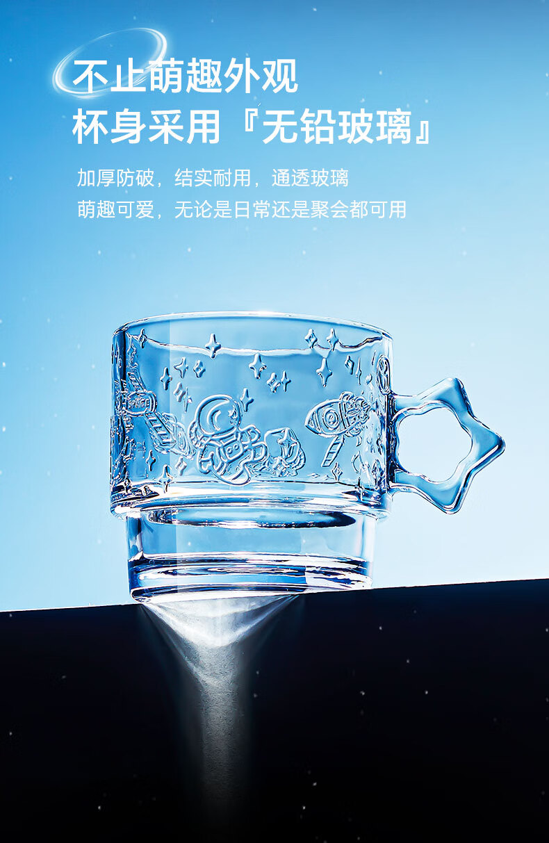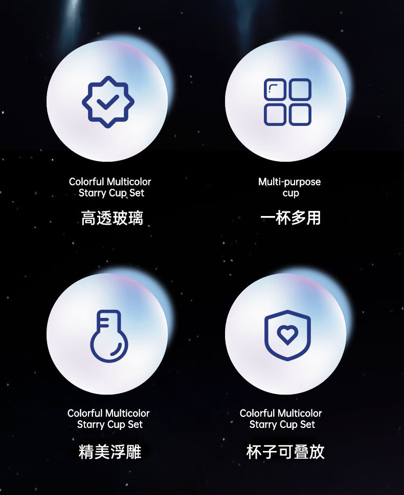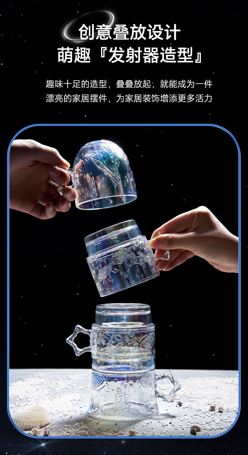乐唯诗(LOVWISH)星空玻璃水杯高档创意高颜值叠叠杯大容量饮料杯 星空杯*4【极光彩】