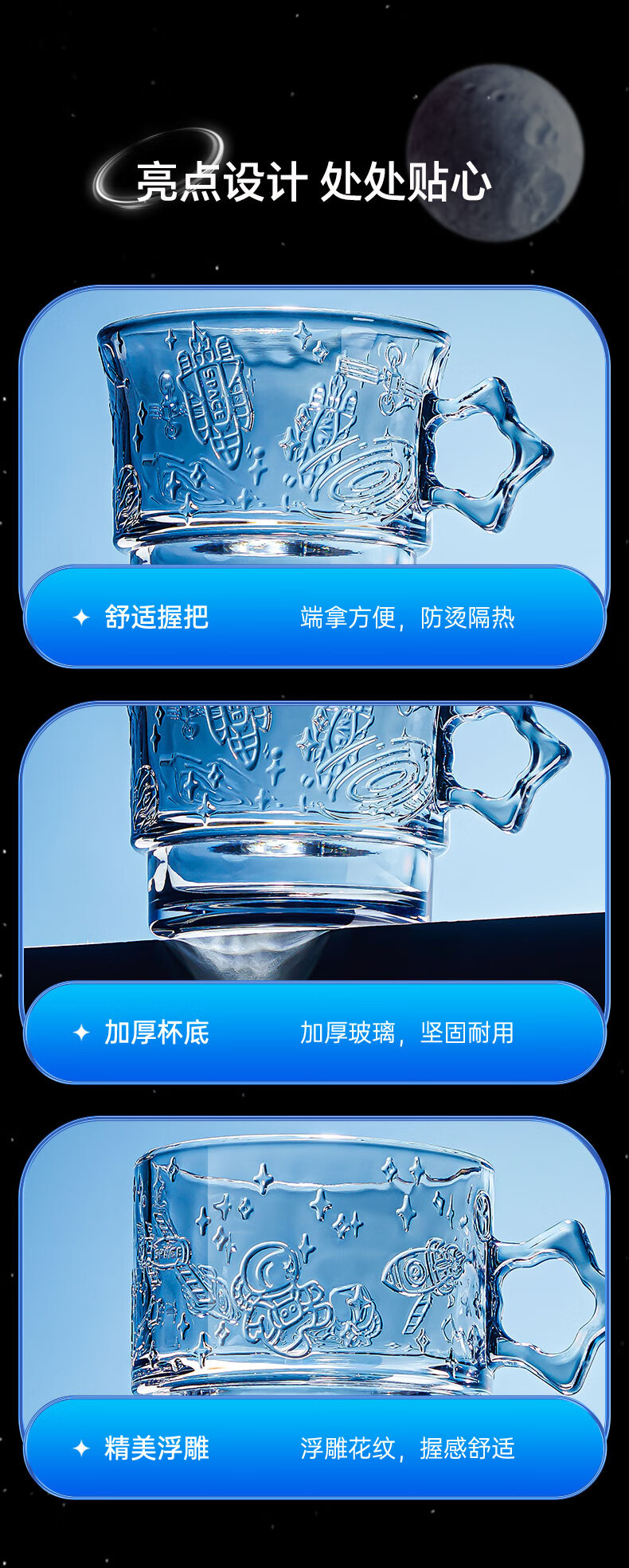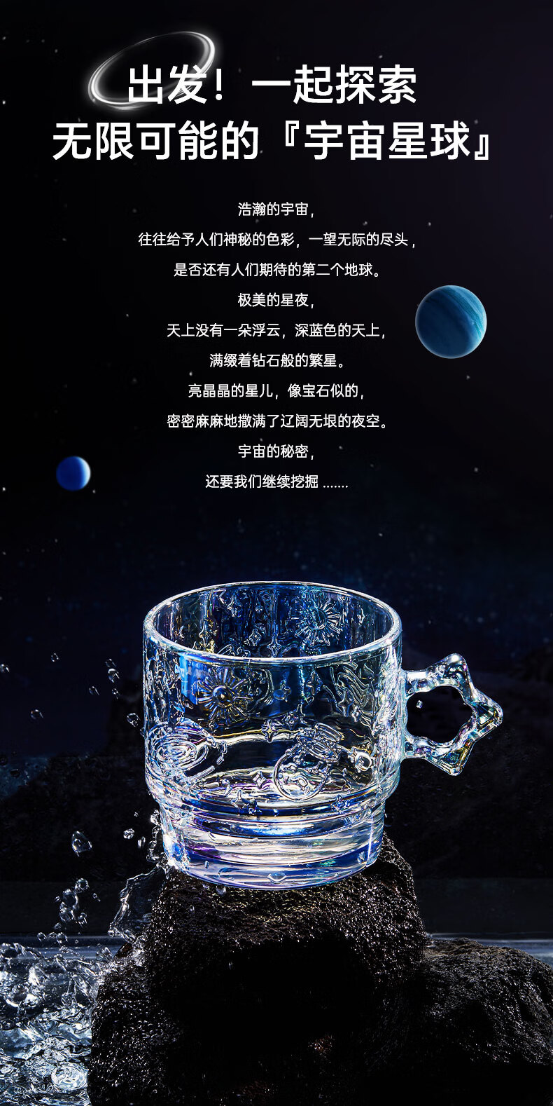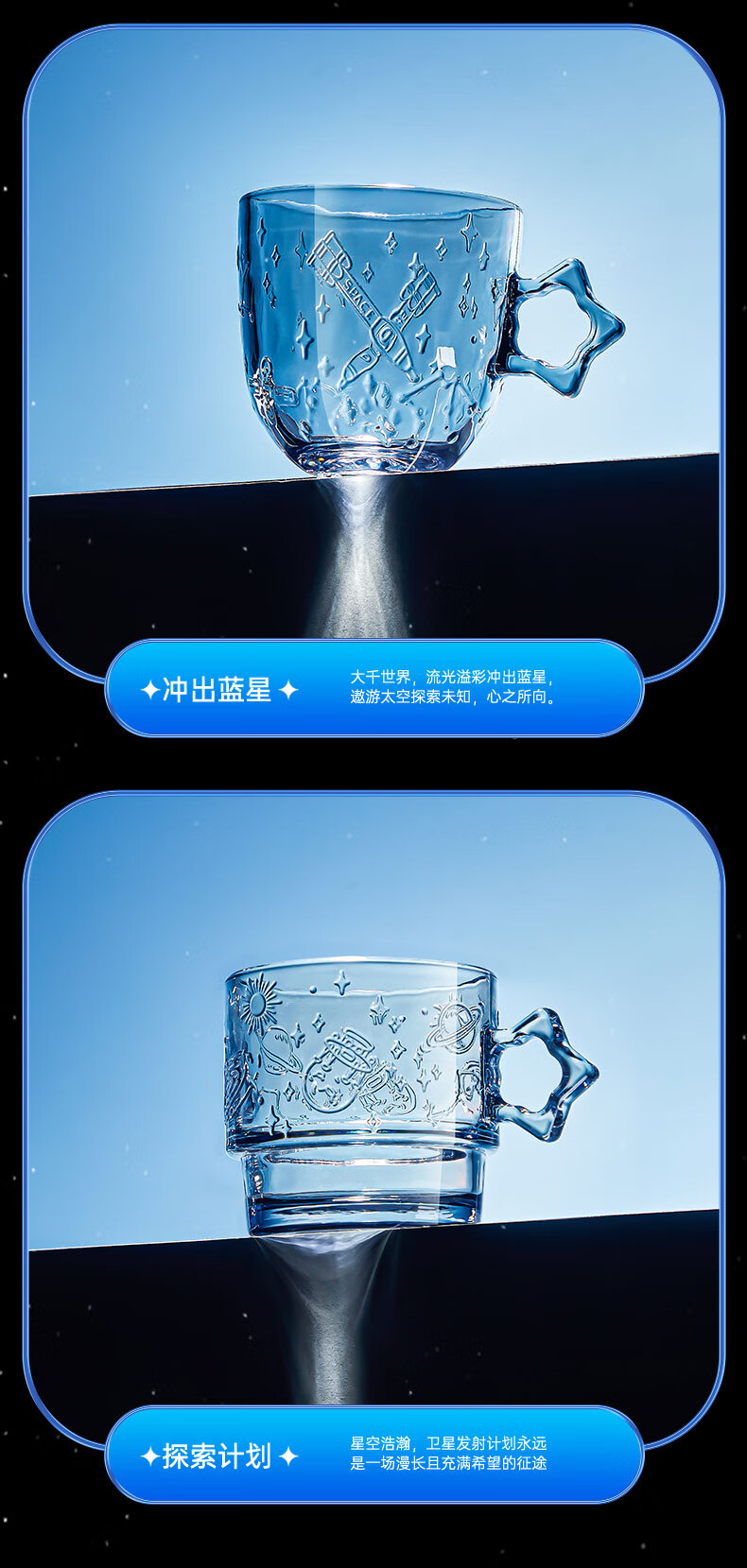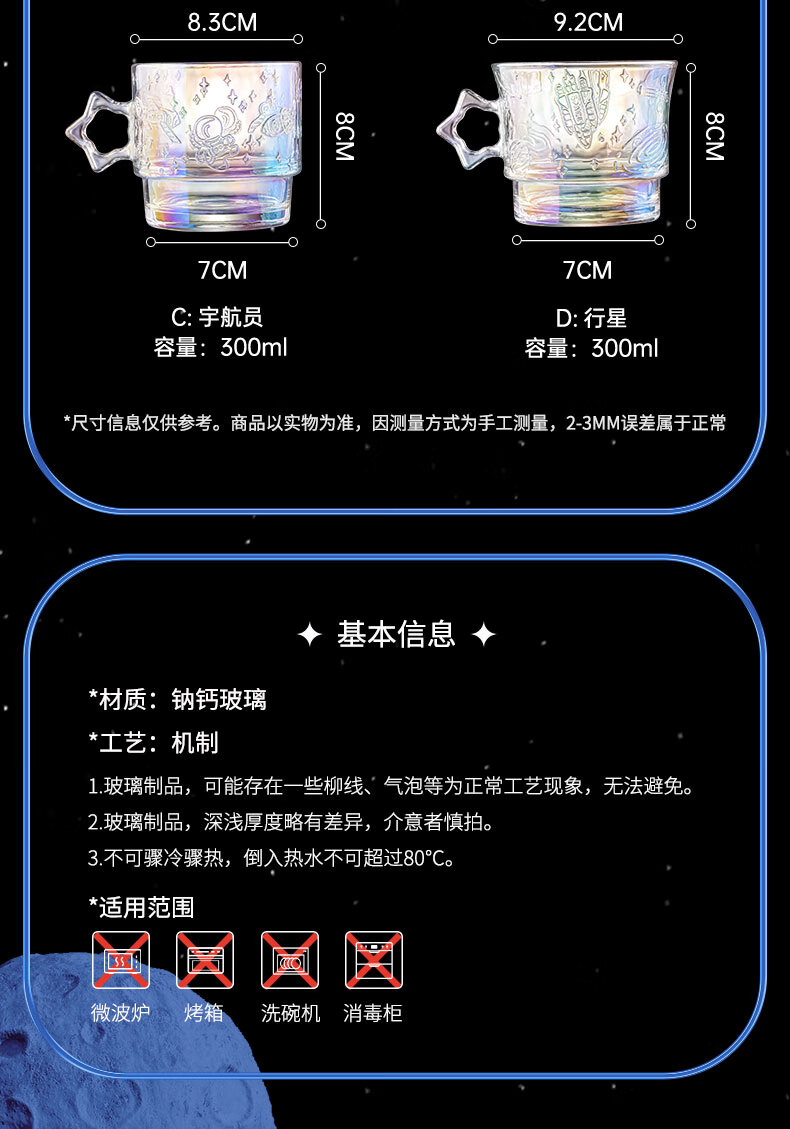 乐唯诗(LOVWISH)星空玻璃水杯高档创意高颜值叠叠杯大容量饮料杯 星空杯*4【极光彩】