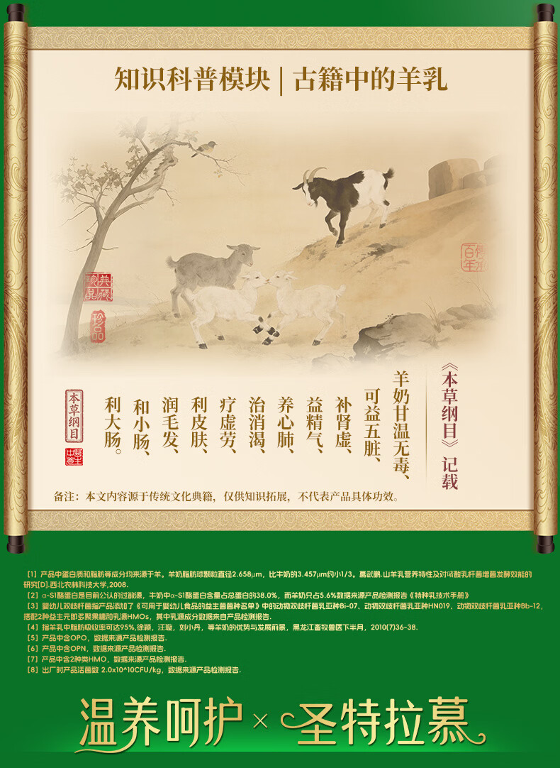 圣元优博圣特拉慕较大婴幼儿配方羊奶粉2段900g 6-12个月欧洲奶源 1罐