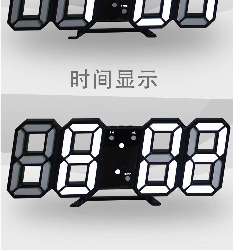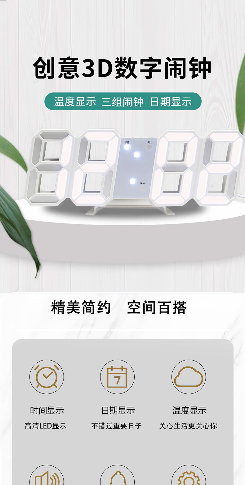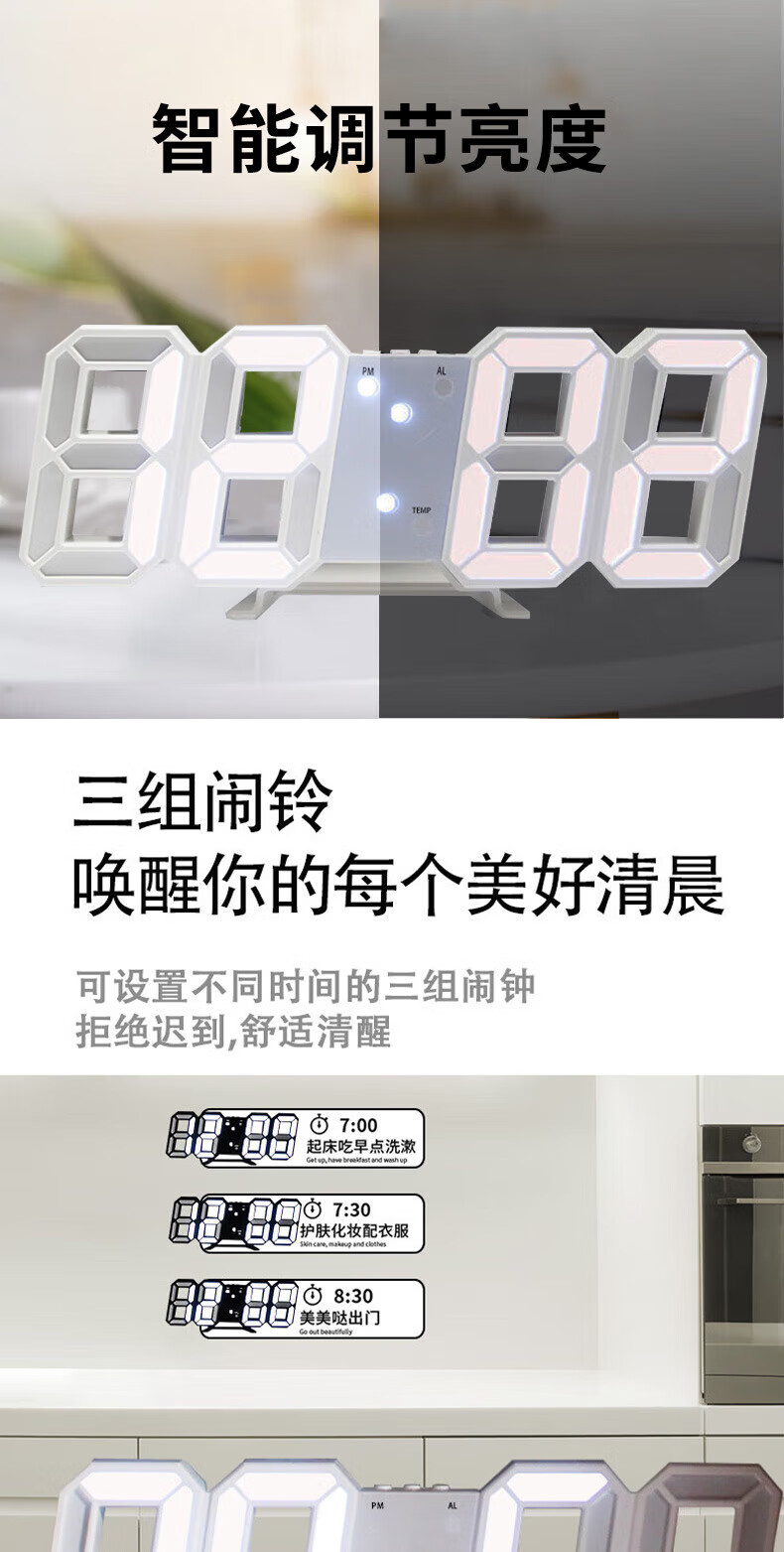 山头林村【甄选百货】 闹钟学生专用 起床多功能卧室宿舍电子夜光时钟3D桌面摆件 【白壳白灯】