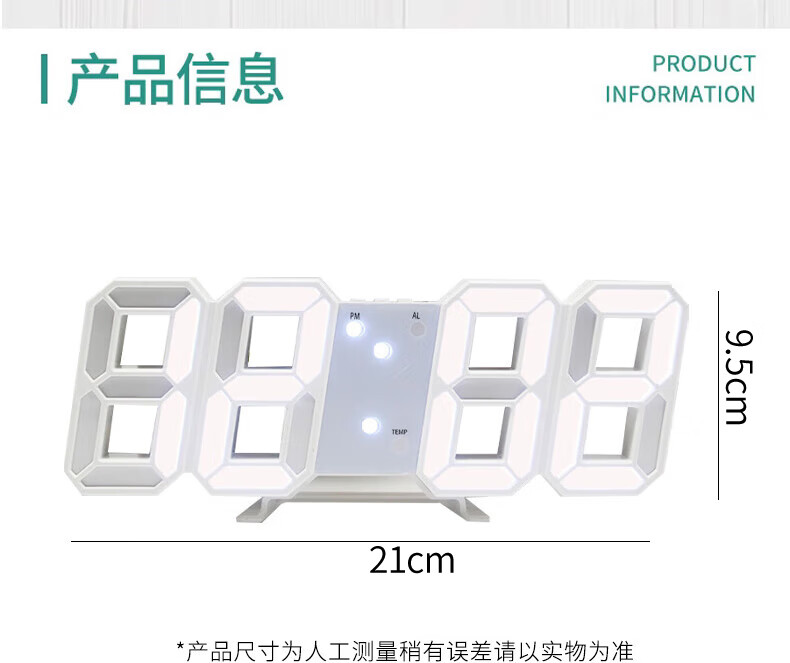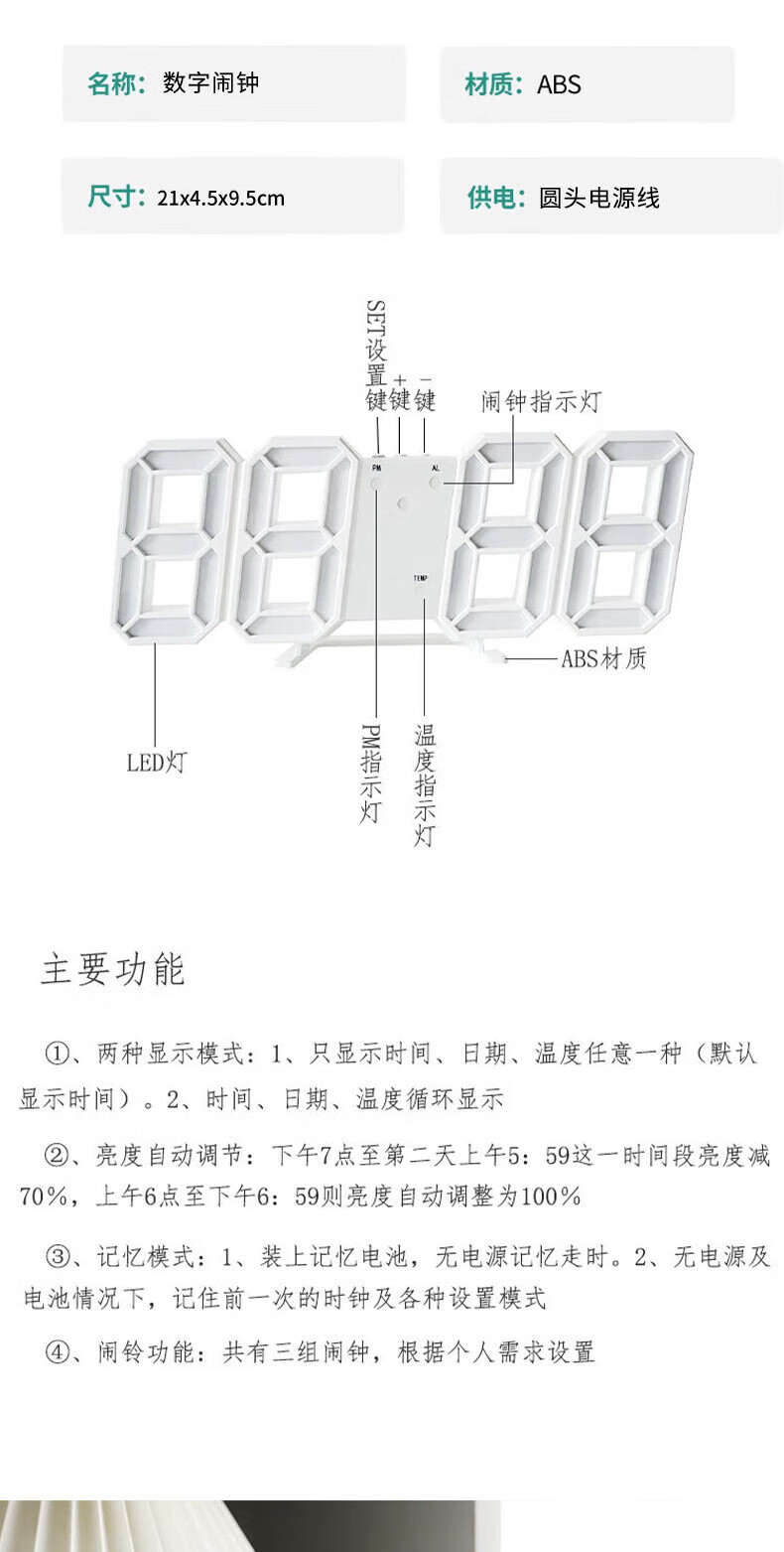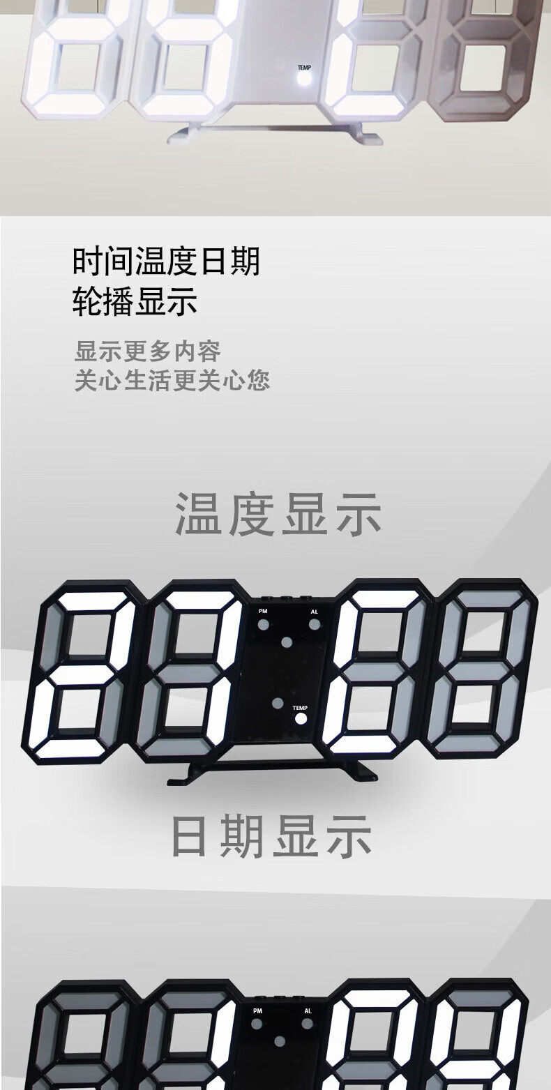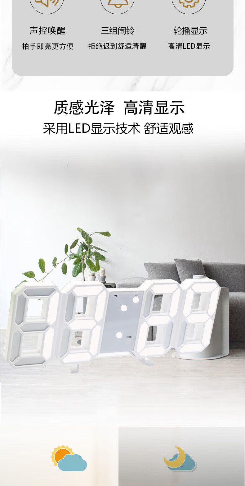 山头林村【甄选百货】 闹钟学生专用 起床多功能卧室宿舍电子夜光时钟3D桌面摆件 【白壳白灯】
