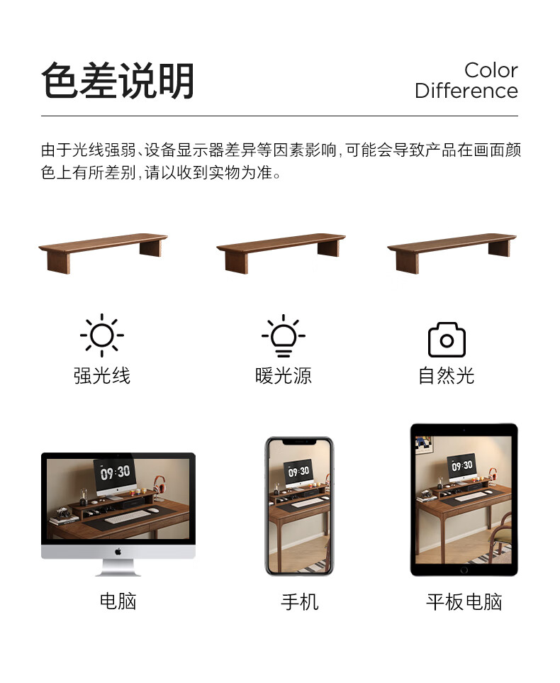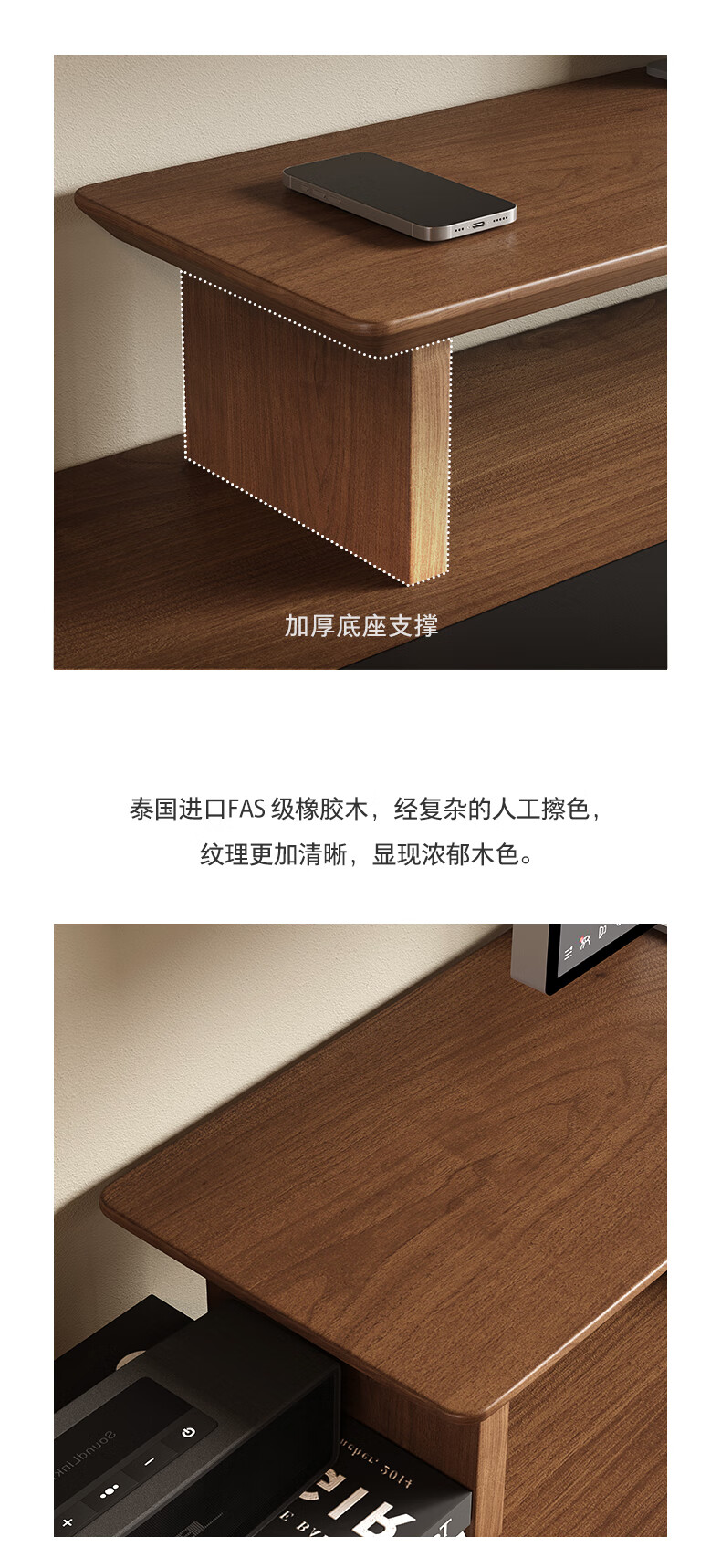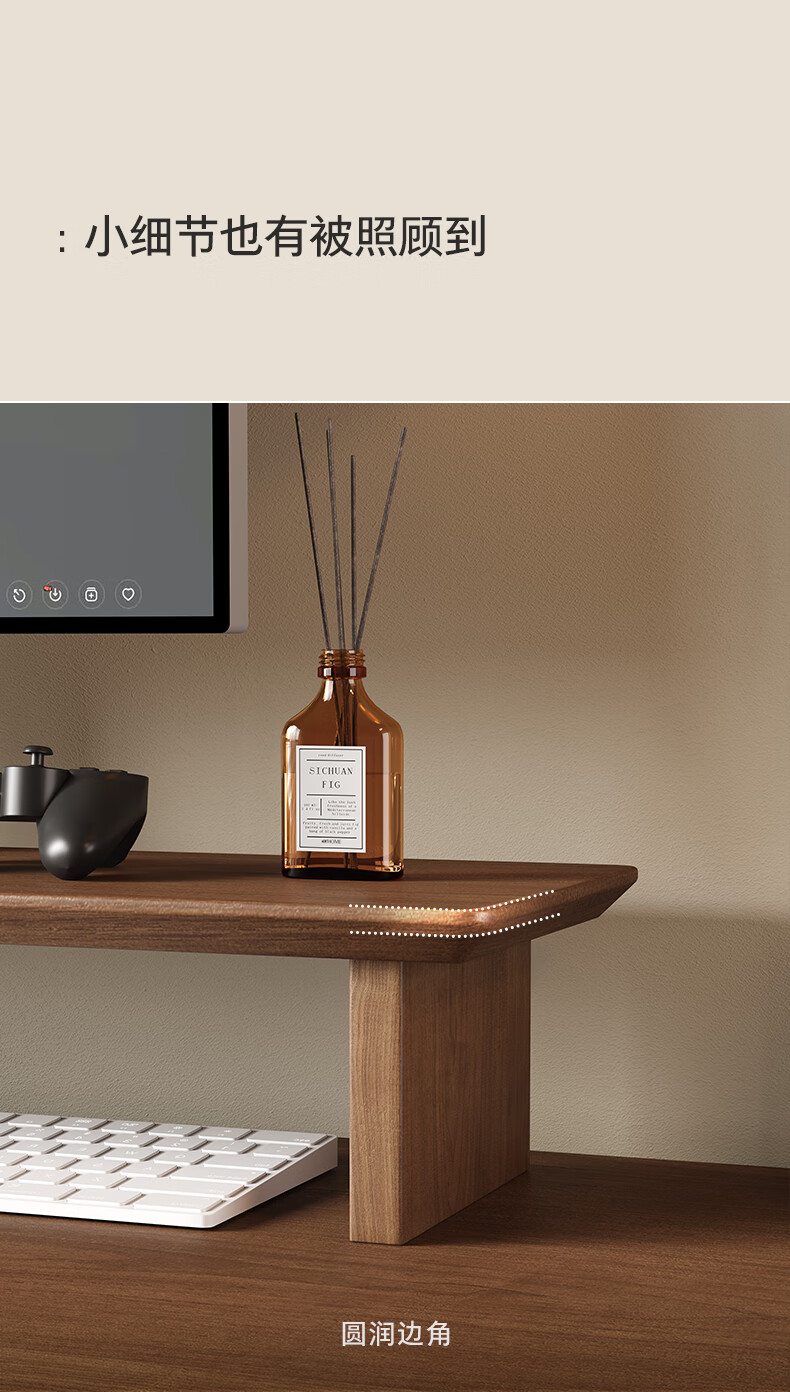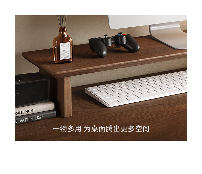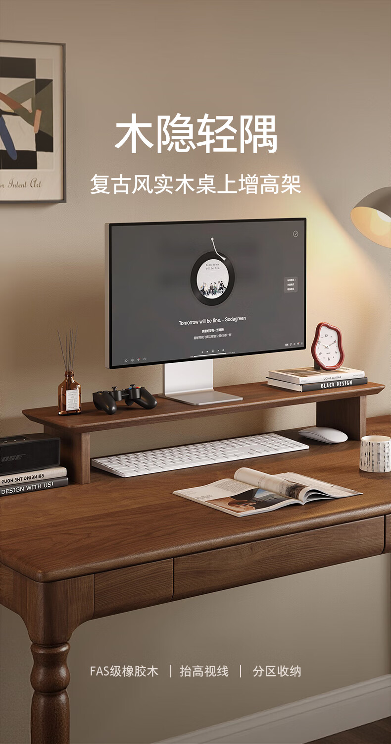 顾家家居实木台式电脑显示器增高架办公桌置物架桌面收纳架胡桃色托架支架 【甄选橡胶木】原木色 100*20*12cm