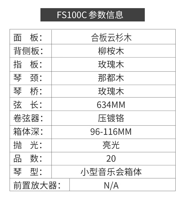 雅马哈(YAMAHA)FS100C民谣吉他初学者入门男女木吉它jita乐器木吉他缺角40英寸