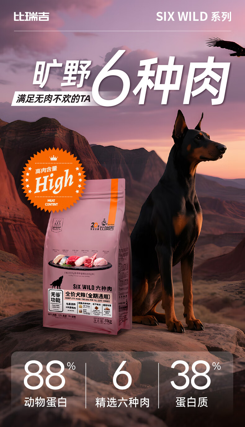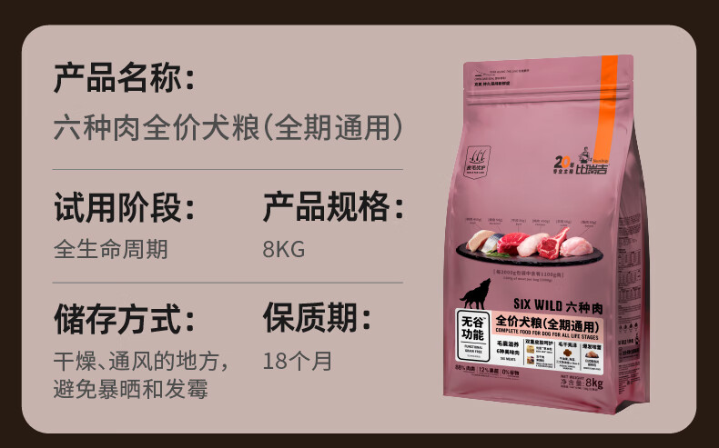 比瑞吉狗粮金毛泰迪六种肉系列高蛋白虾青素无谷全价全期成犬幼犬粮8kg