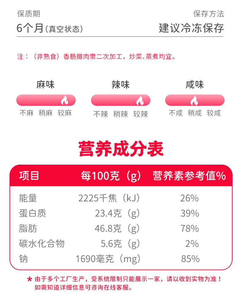 杨大爷烟熏川味腊肠腊肉四川特产麻辣味香肠1斤装500g 需烹饪食用