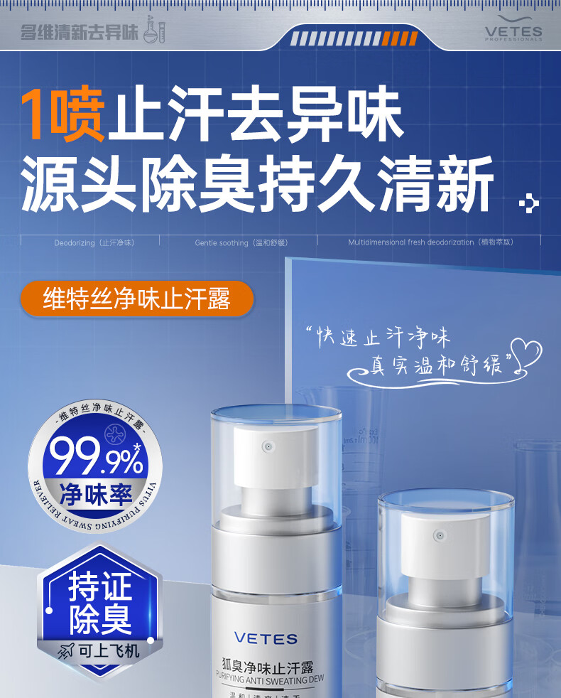 维特丝止汗露狐臭男女士专用腋下除臭止汗喷雾四氯羟铝锆异味去除净味液