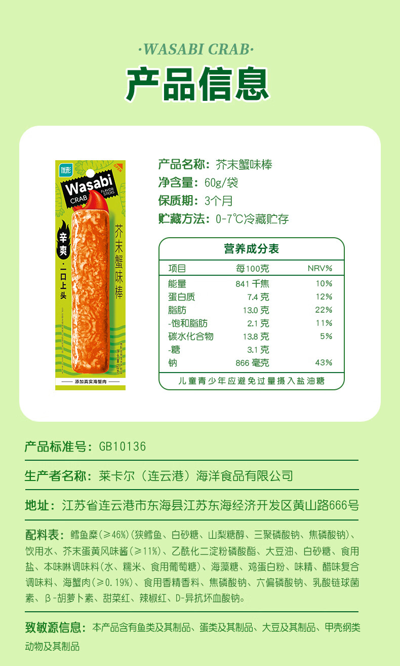 优形(ishape)蟹肉棒阿拉斯加蟹棒即食海鲜零食鳕鱼肉蟹肉蟹柳火锅食材早餐年货 阿拉斯加蟹肉棒5袋