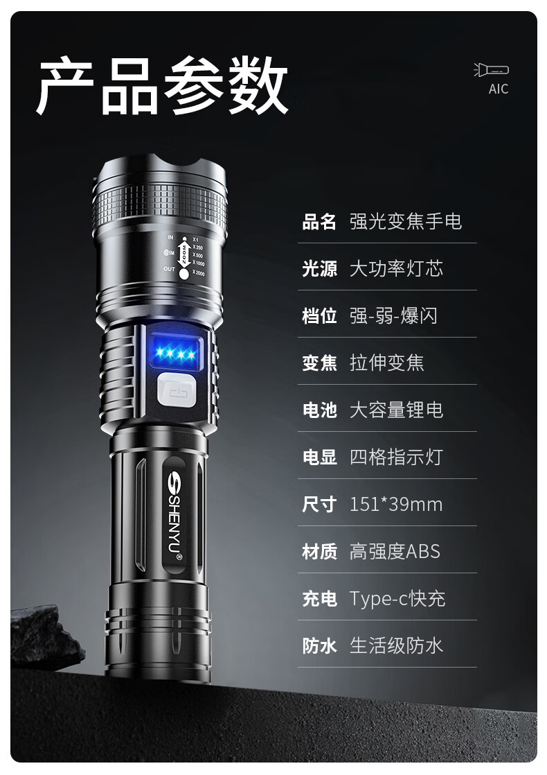 SHENYU手电筒强光超亮可充电户外远射超长续航大容量巡逻耐用家用防水 【爆亮】持久续航-防水防摔