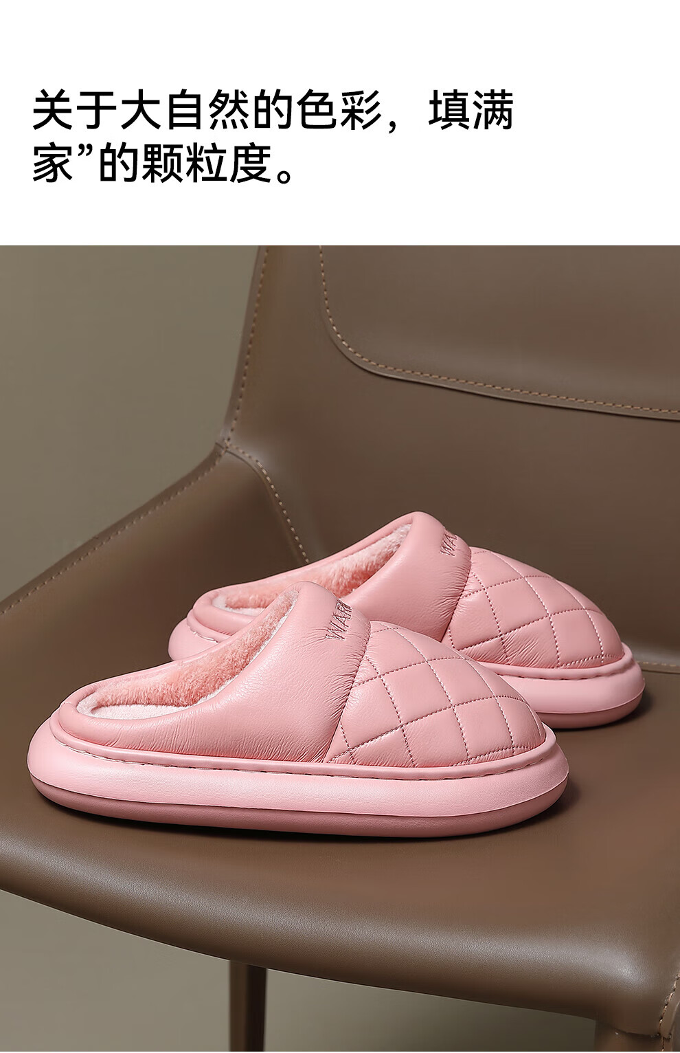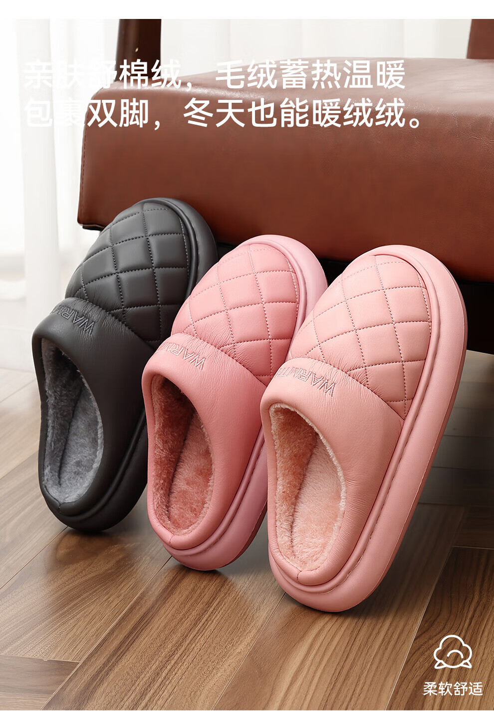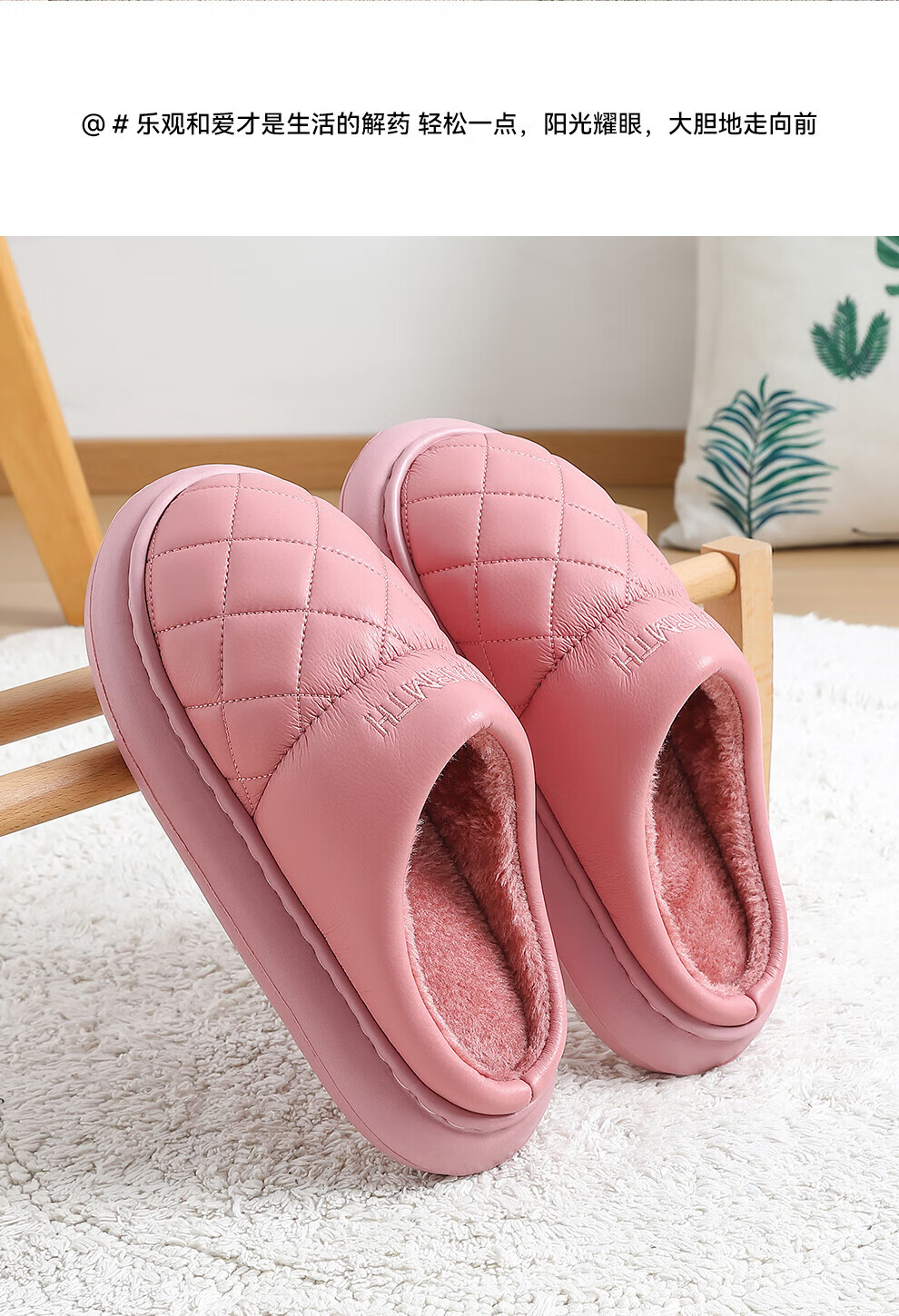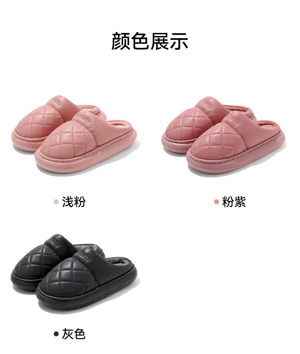 FZT防水棉拖鞋女冬季新款室内家居加绒居冬天女款毛毛皮面拖鞋男防滑 粉紫 36-37 标准码