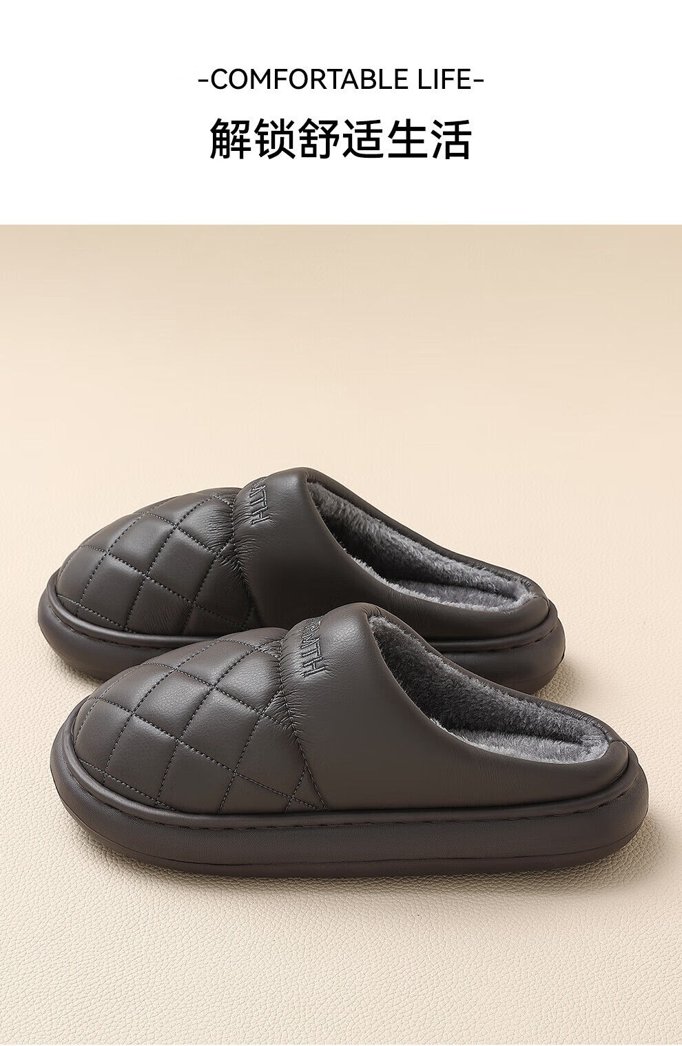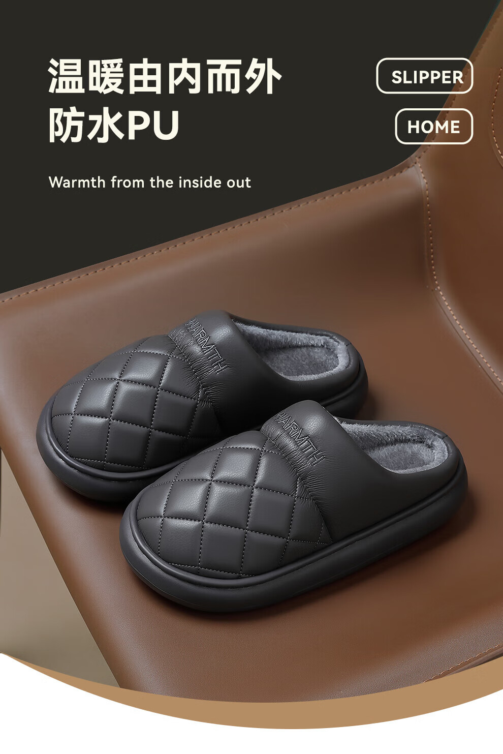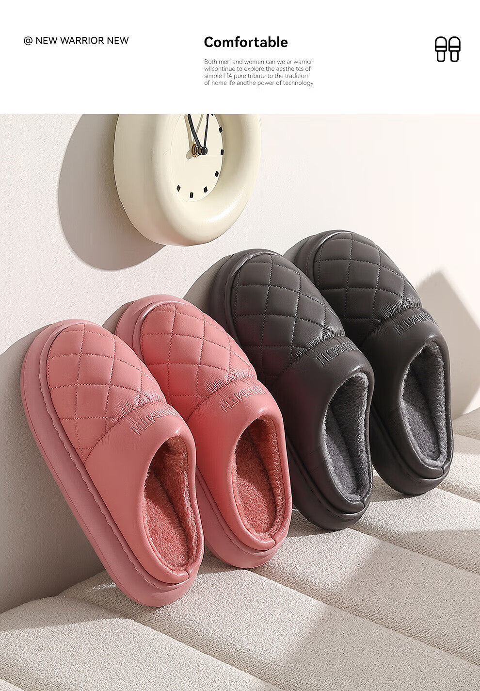 FZT防水棉拖鞋女冬季新款室内家居加绒居冬天女款毛毛皮面拖鞋男防滑 粉紫 36-37 标准码