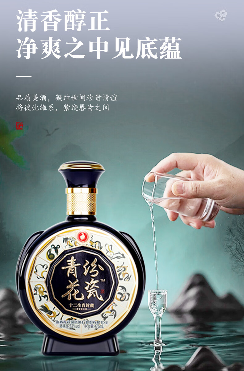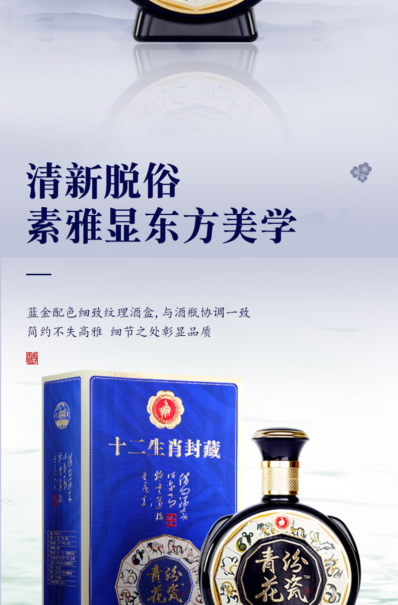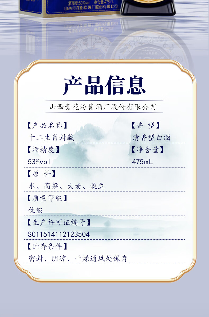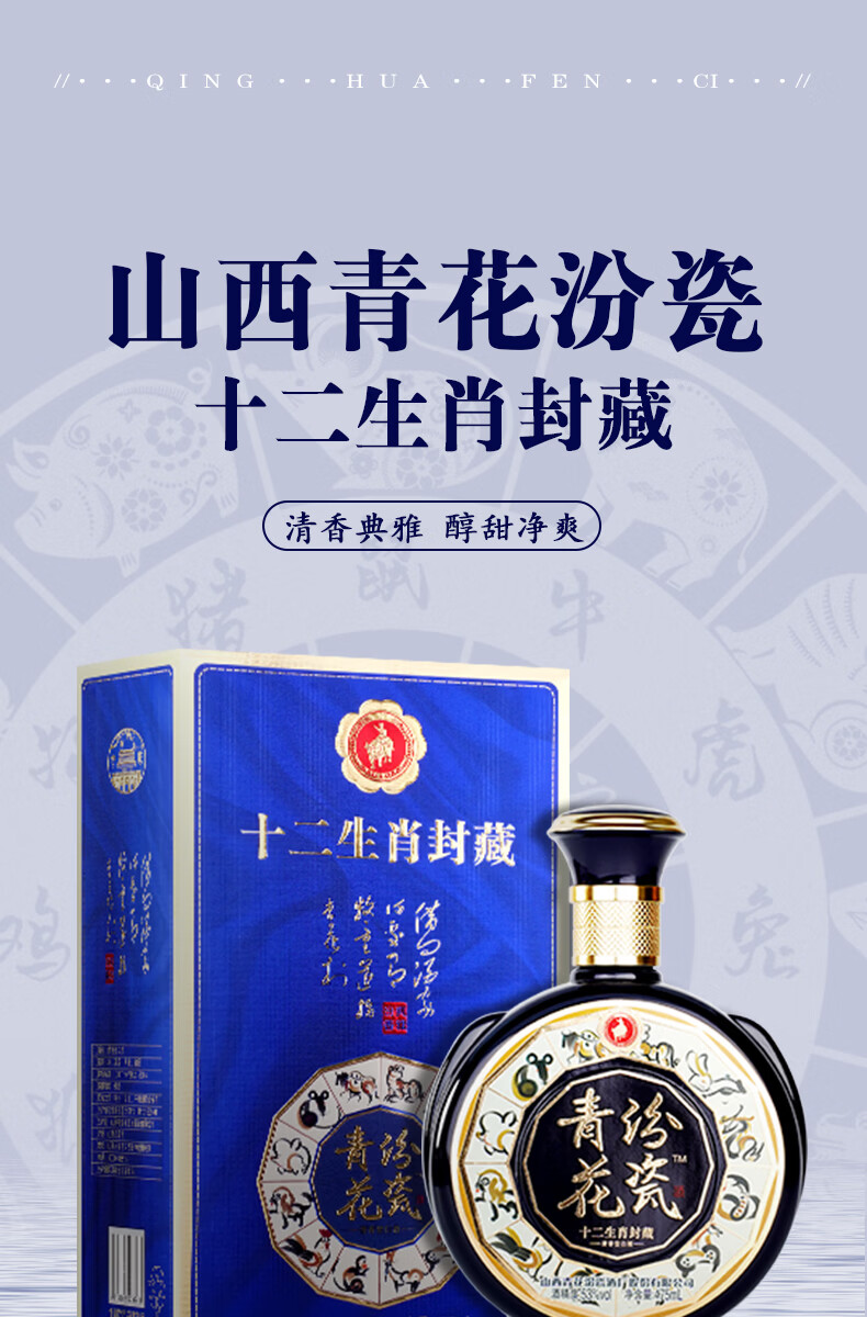 杏彤青花汾瓷 清香型白酒 透明亚克力包装 纯粮酿造 53%vol 475mL 6瓶 十二生肖 整箱装