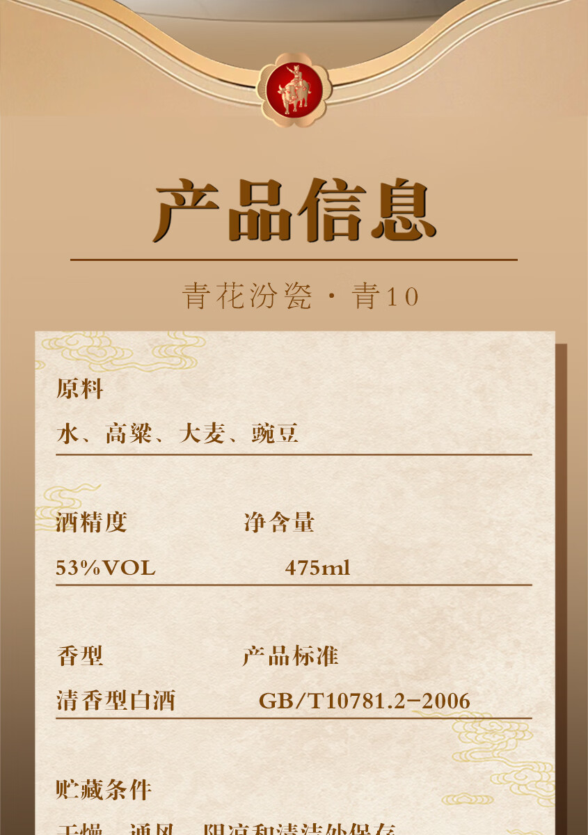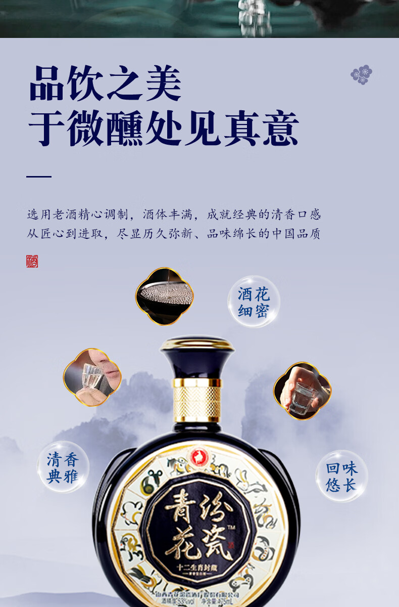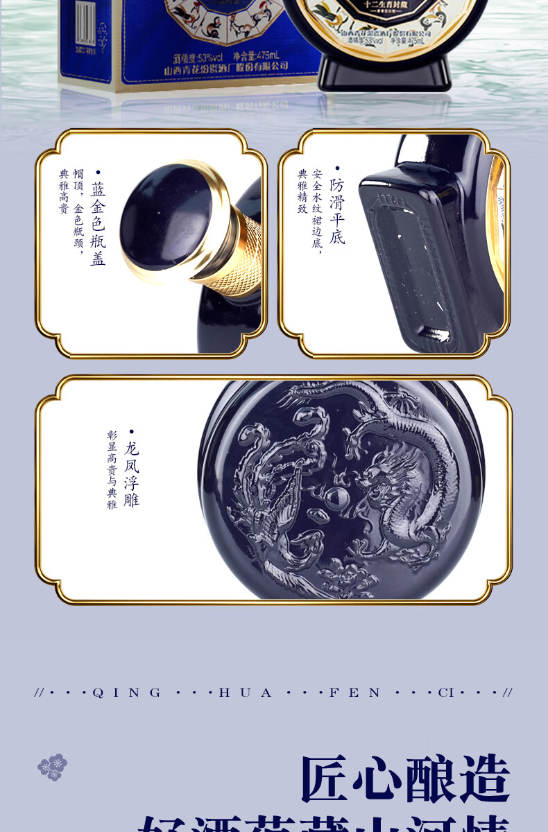 杏彤青花汾瓷 清香型白酒 透明亚克力包装 纯粮酿造 53%vol 475mL 6瓶 十二生肖 整箱装