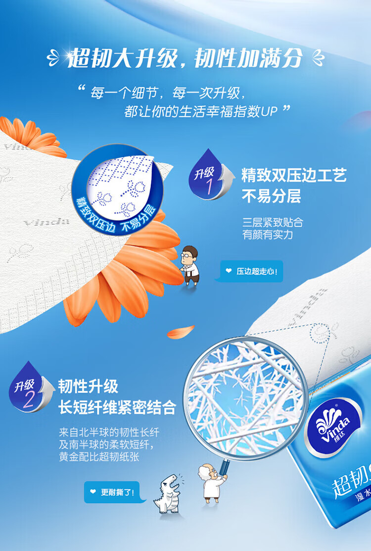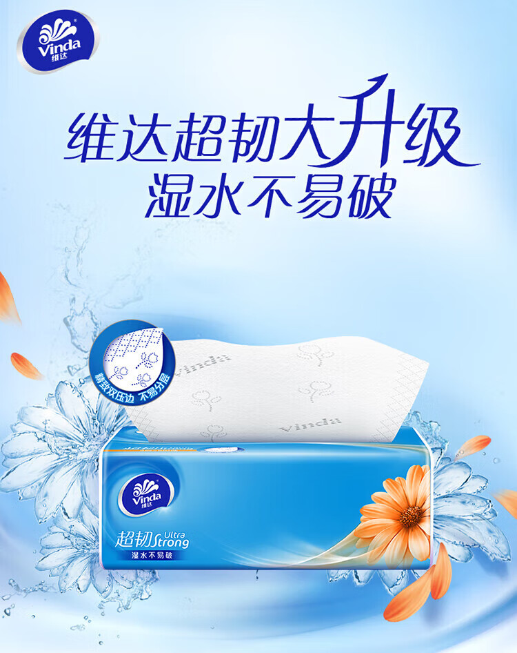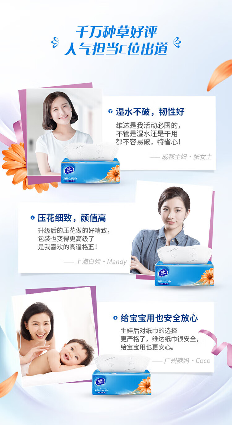 维达抽纸超韧3层100抽面巾纸家用餐巾纸整箱批发实惠装卫生纸巾 3层 100抽*2包