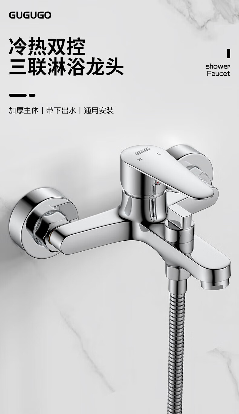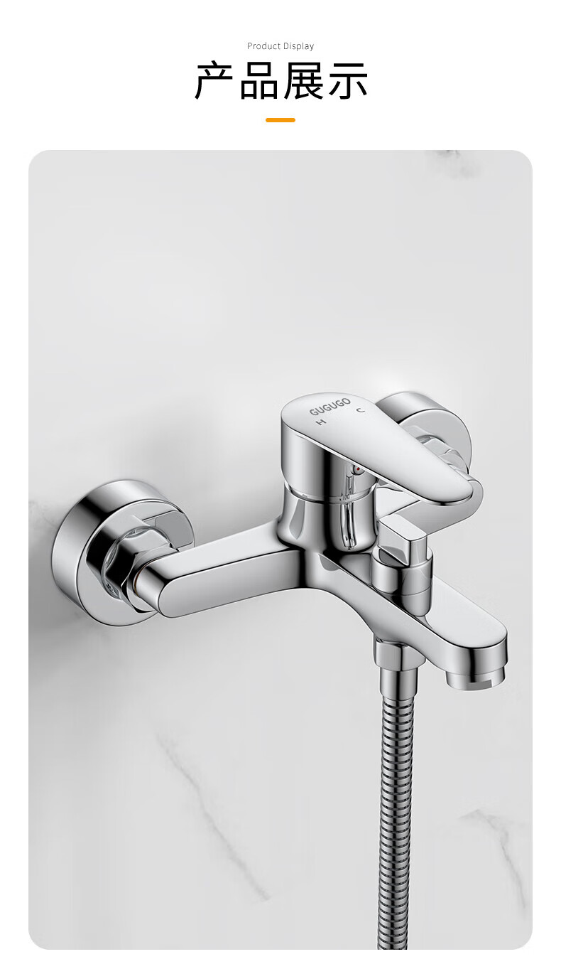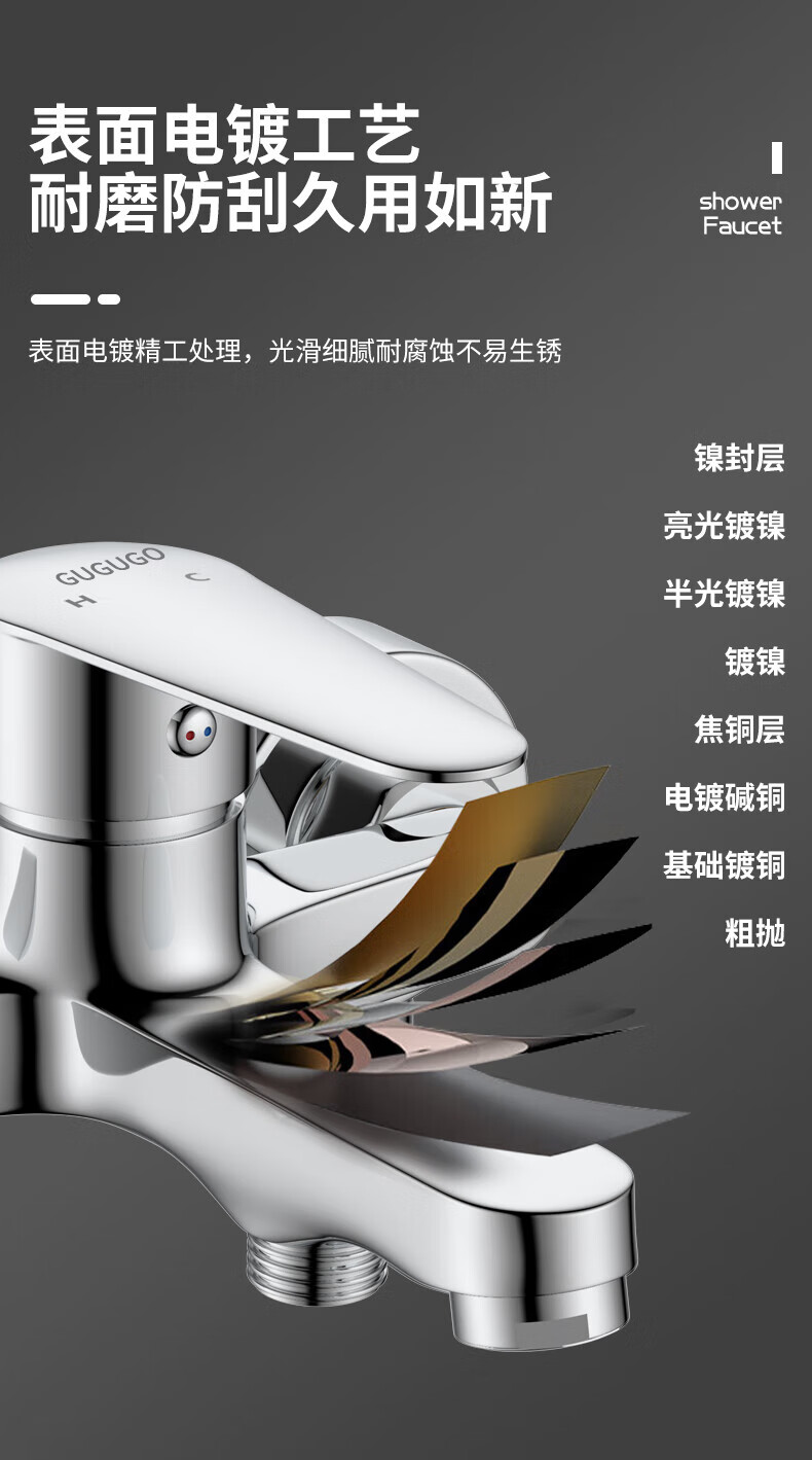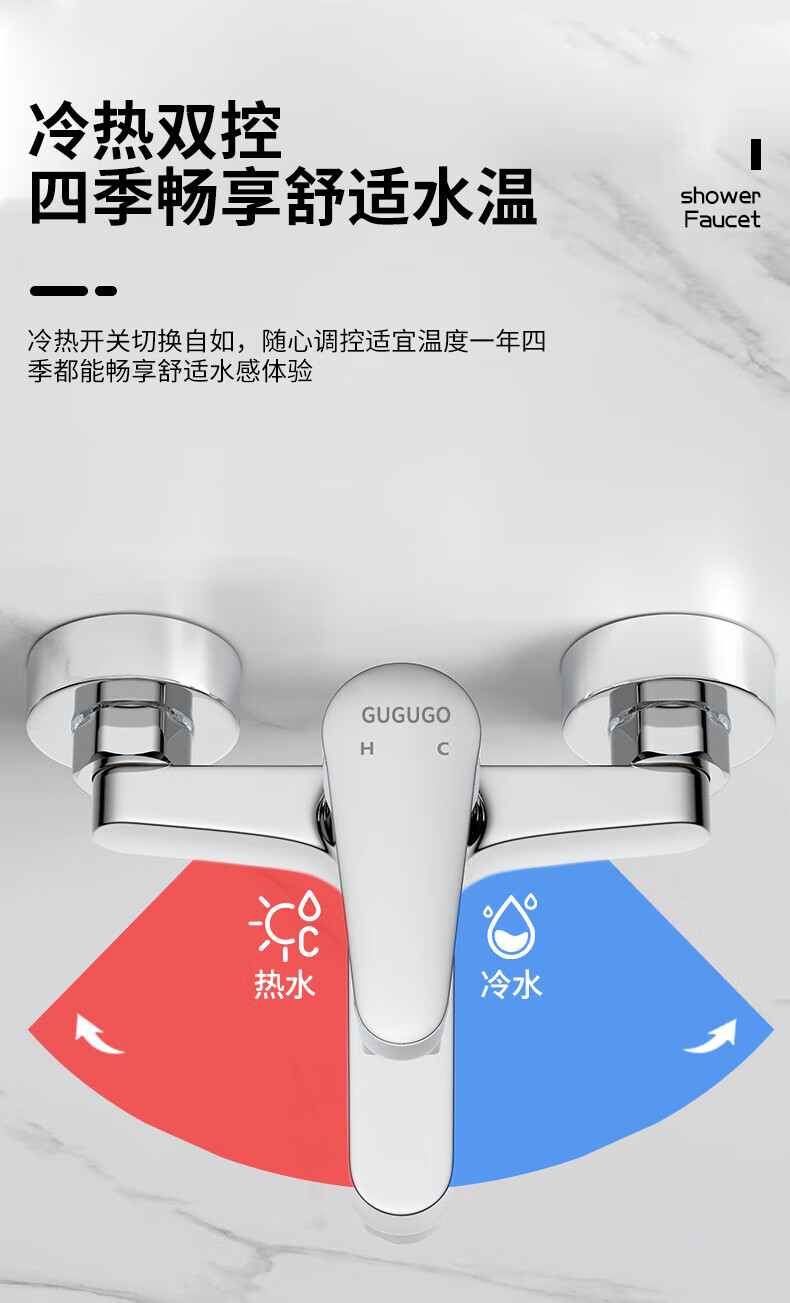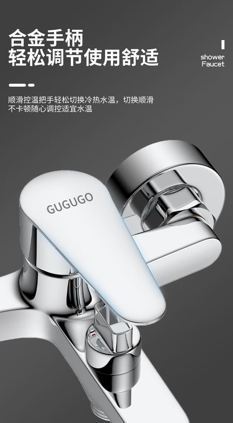 GuGuGo【德国】花洒淋浴套装一体浴室卫浴冷热电热水器混水阀全套无顶喷 【亮银】混水阀+增压花洒套装 分体式不占空间丨赠全套安装配件