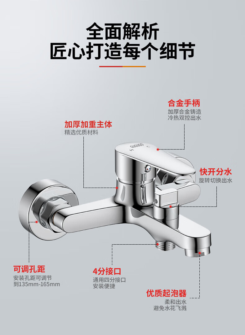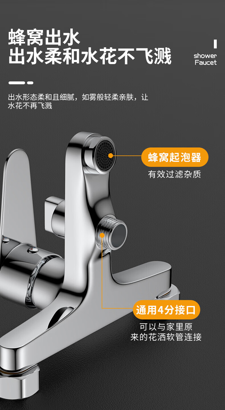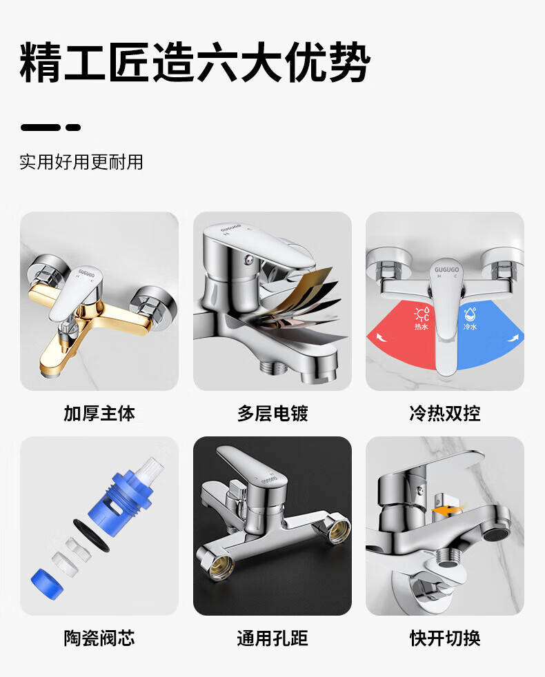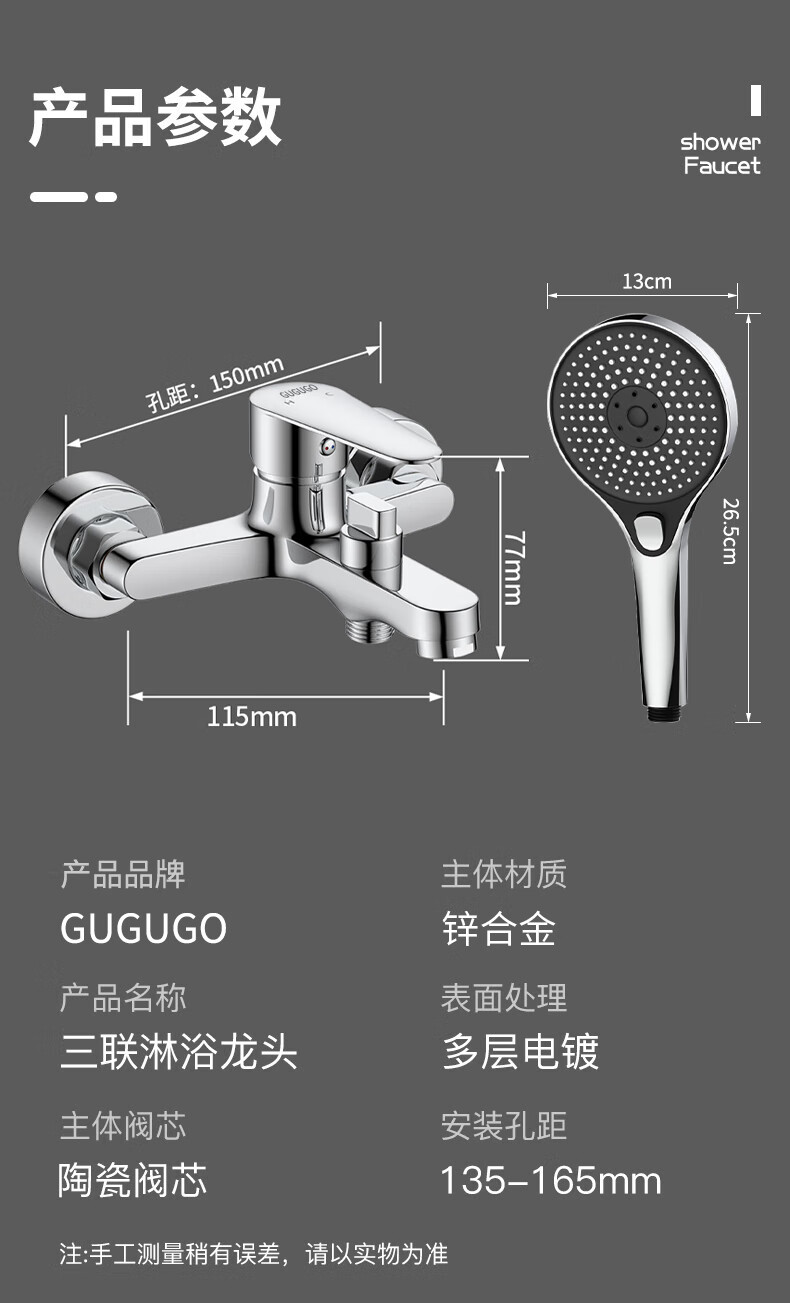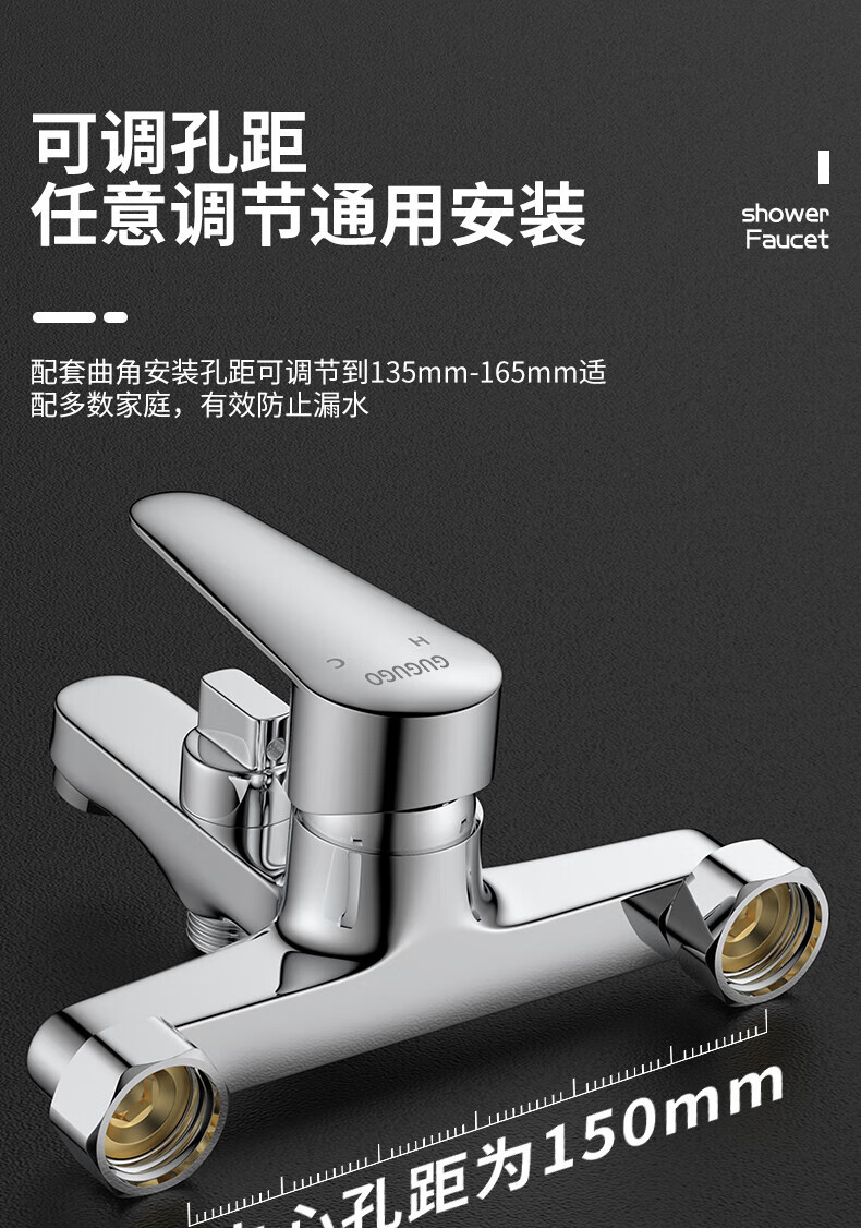 GuGuGo【德国】花洒淋浴套装一体浴室卫浴冷热电热水器混水阀全套无顶喷 【亮银】混水阀+增压花洒套装 分体式不占空间丨赠全套安装配件