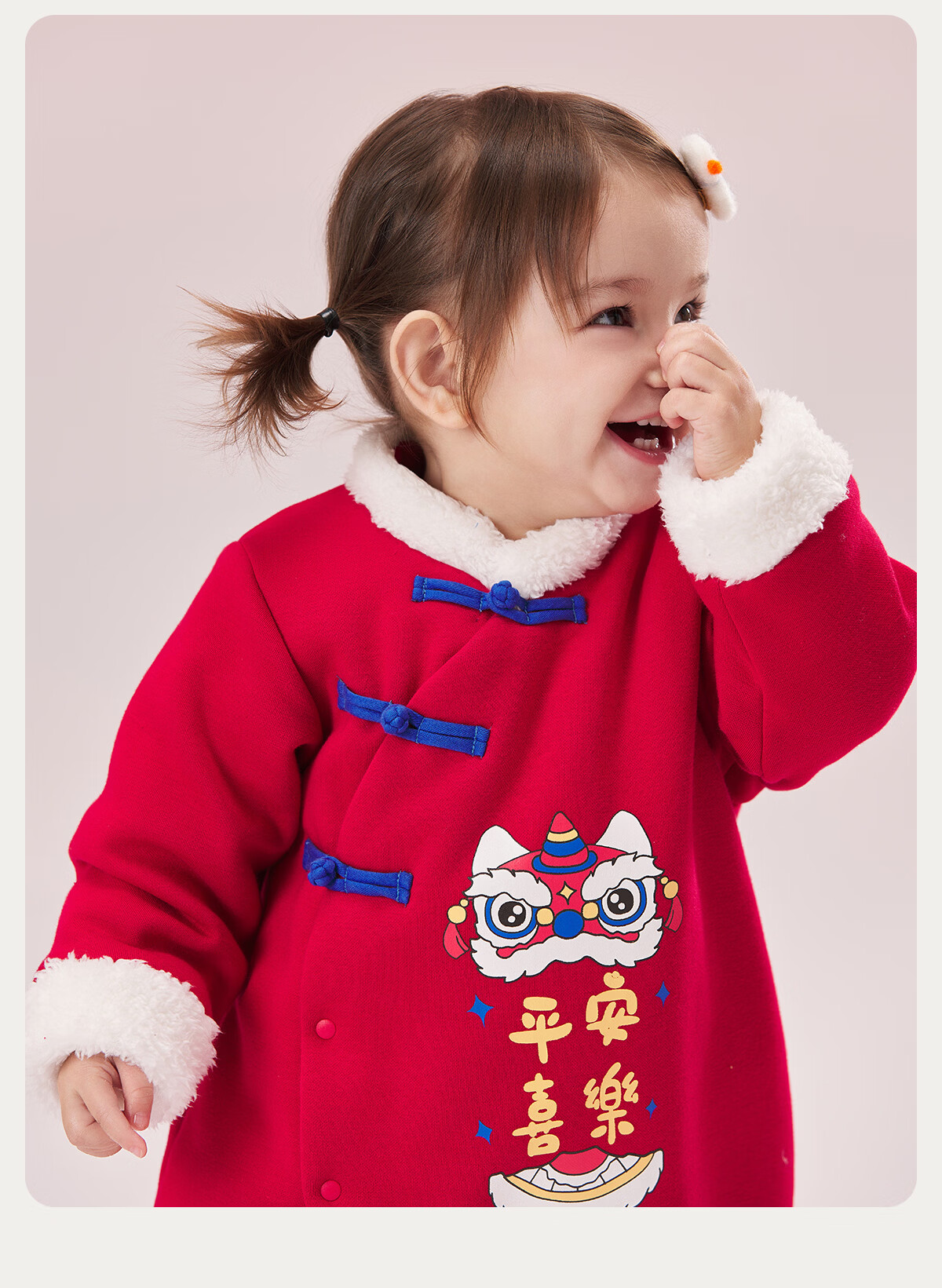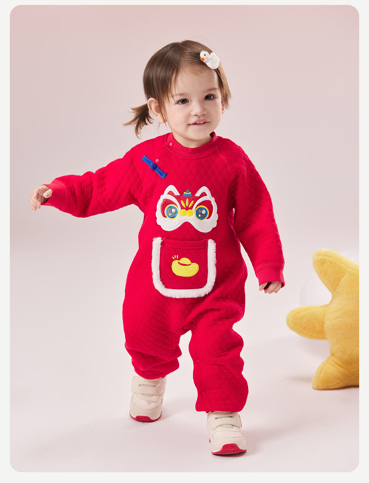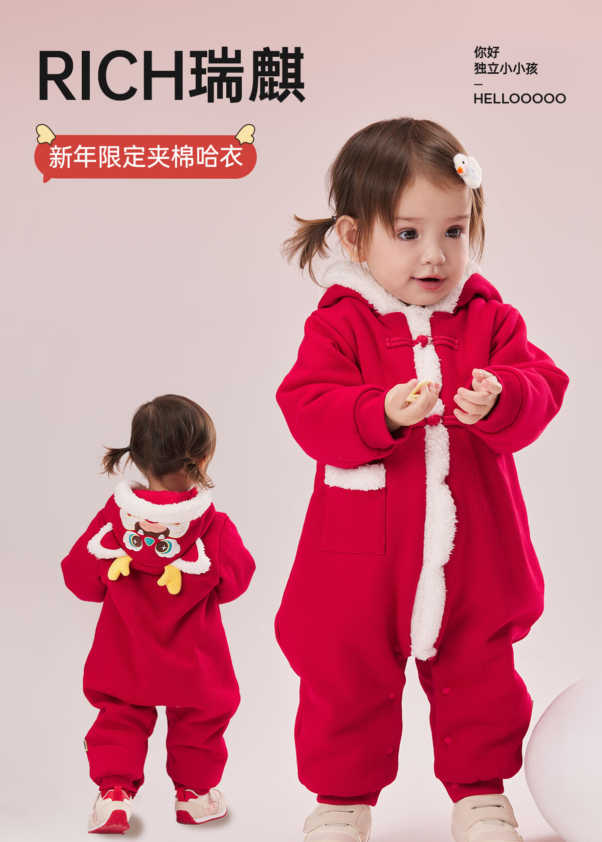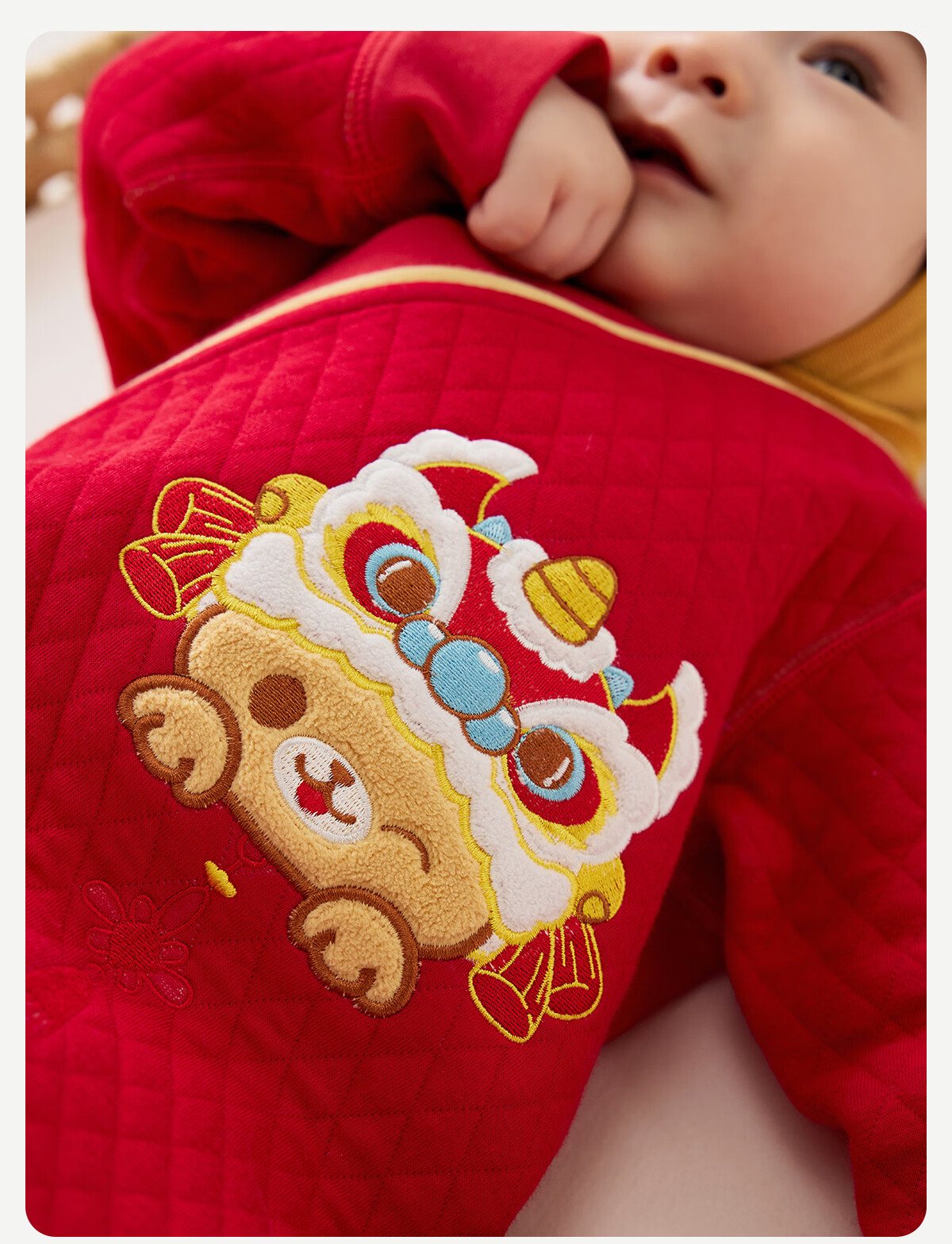 威尔贝鲁(WELLBER)婴儿衣服夹棉哈衣秋冬款新生儿连体衣满月宝宝冬季过年拜年红棉服 【新年】立领夹棉连体衣 90cm