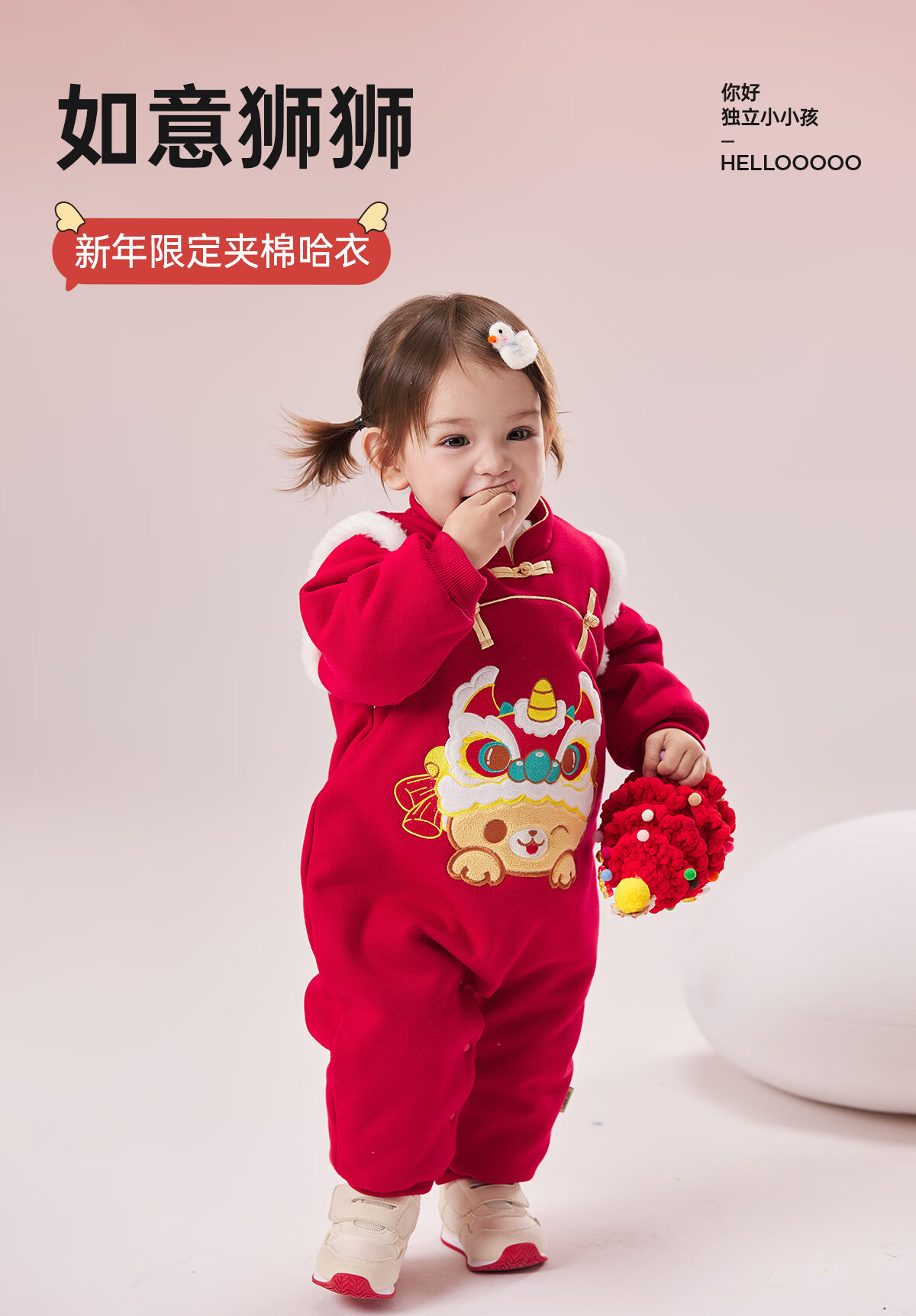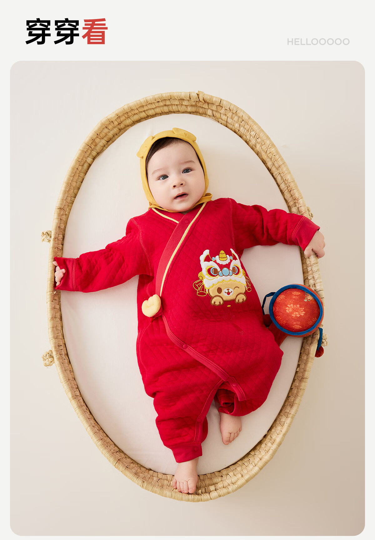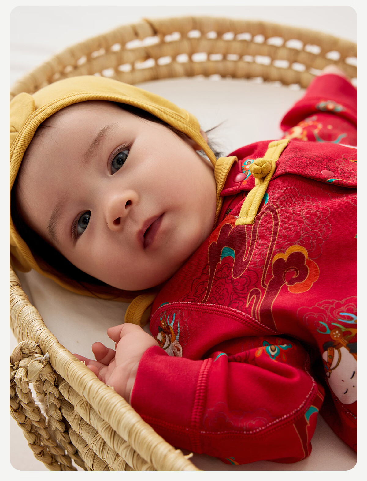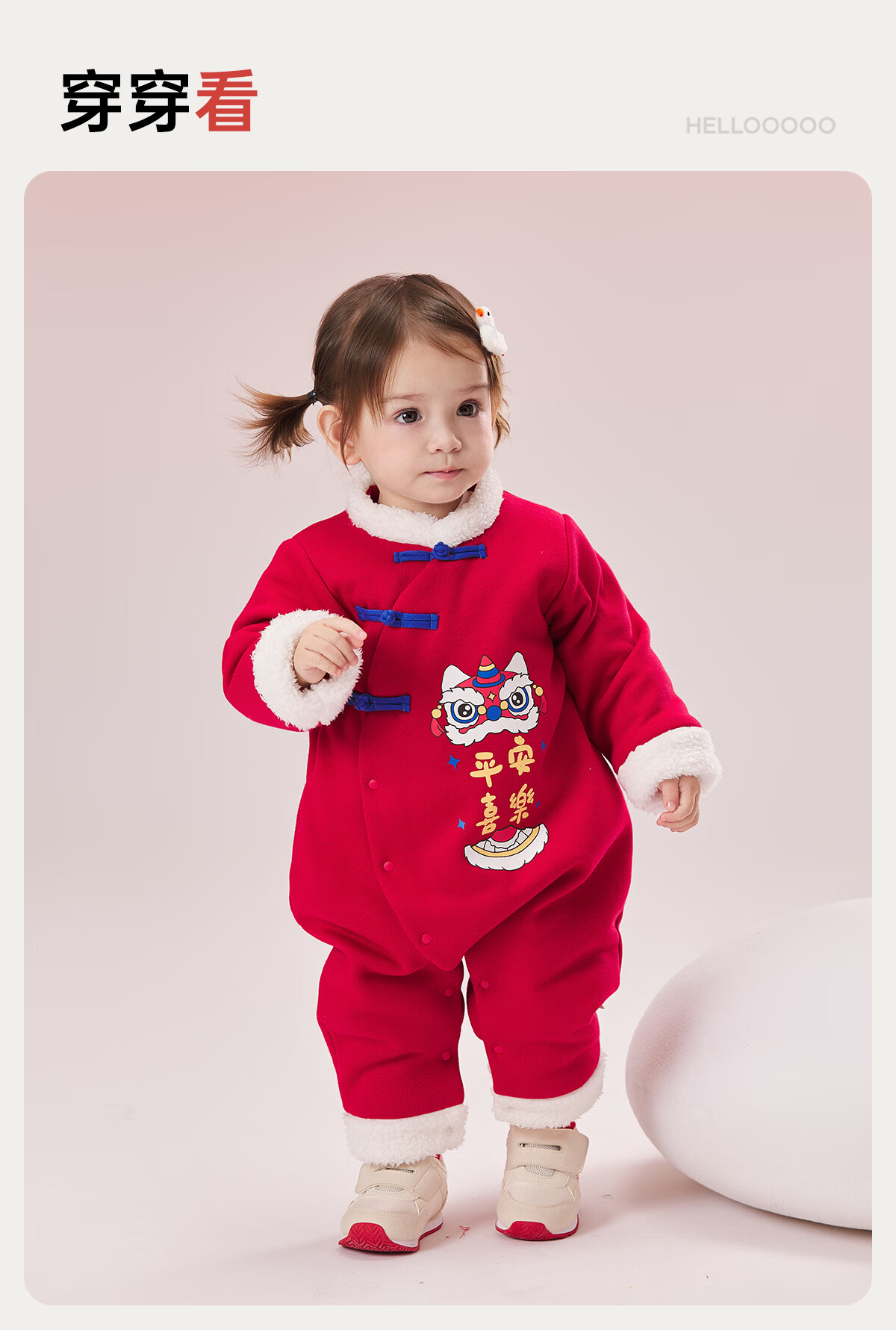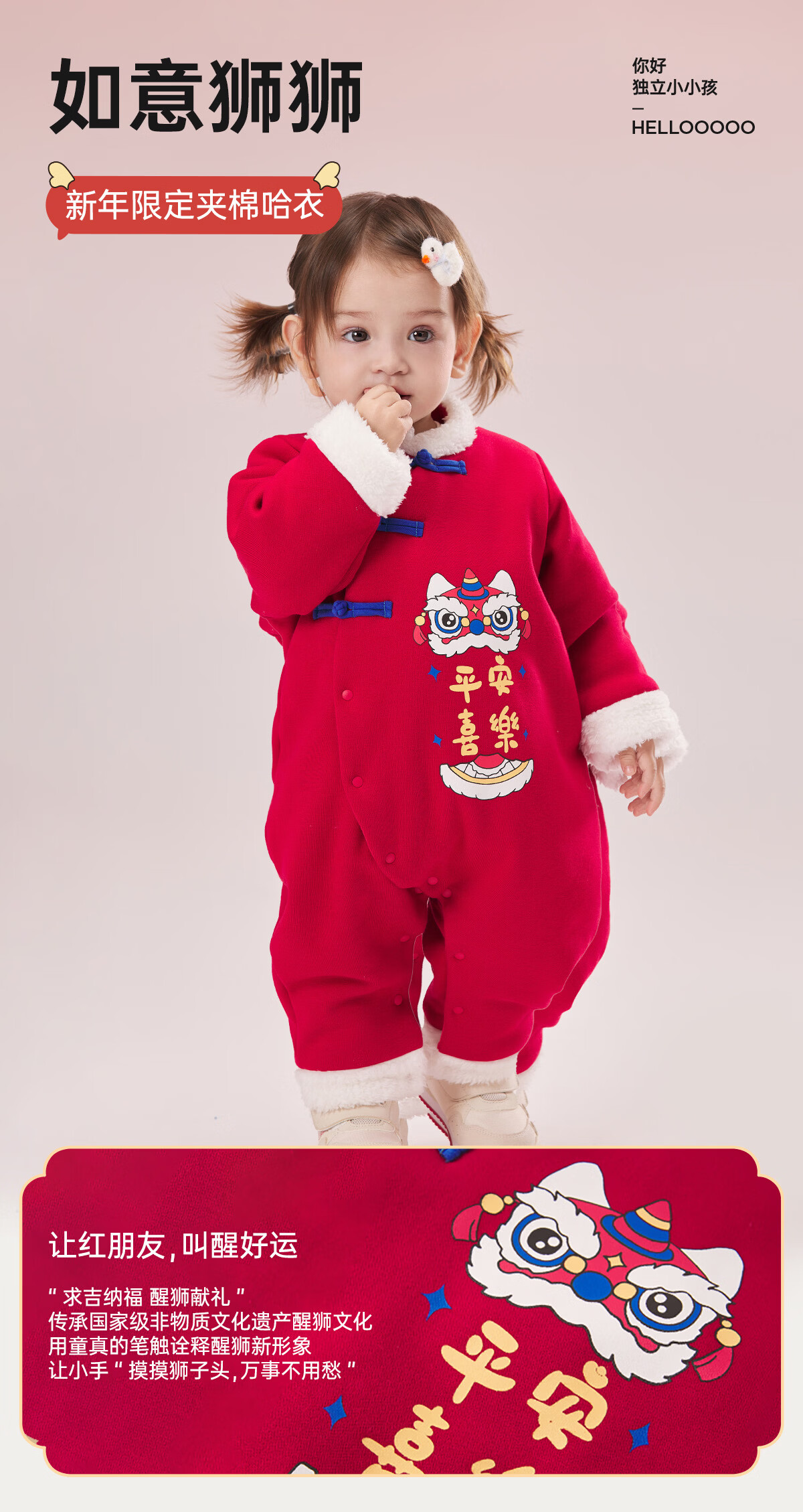 威尔贝鲁(WELLBER)婴儿衣服夹棉哈衣秋冬款新生儿连体衣满月宝宝冬季过年拜年红棉服 【新年】立领夹棉连体衣 90cm