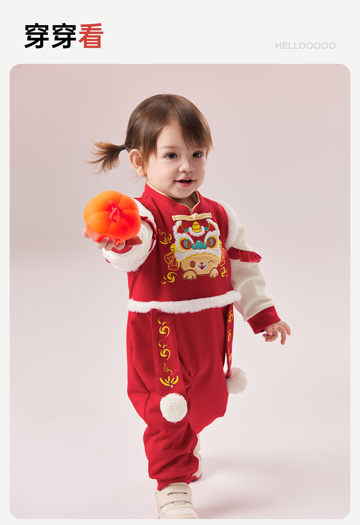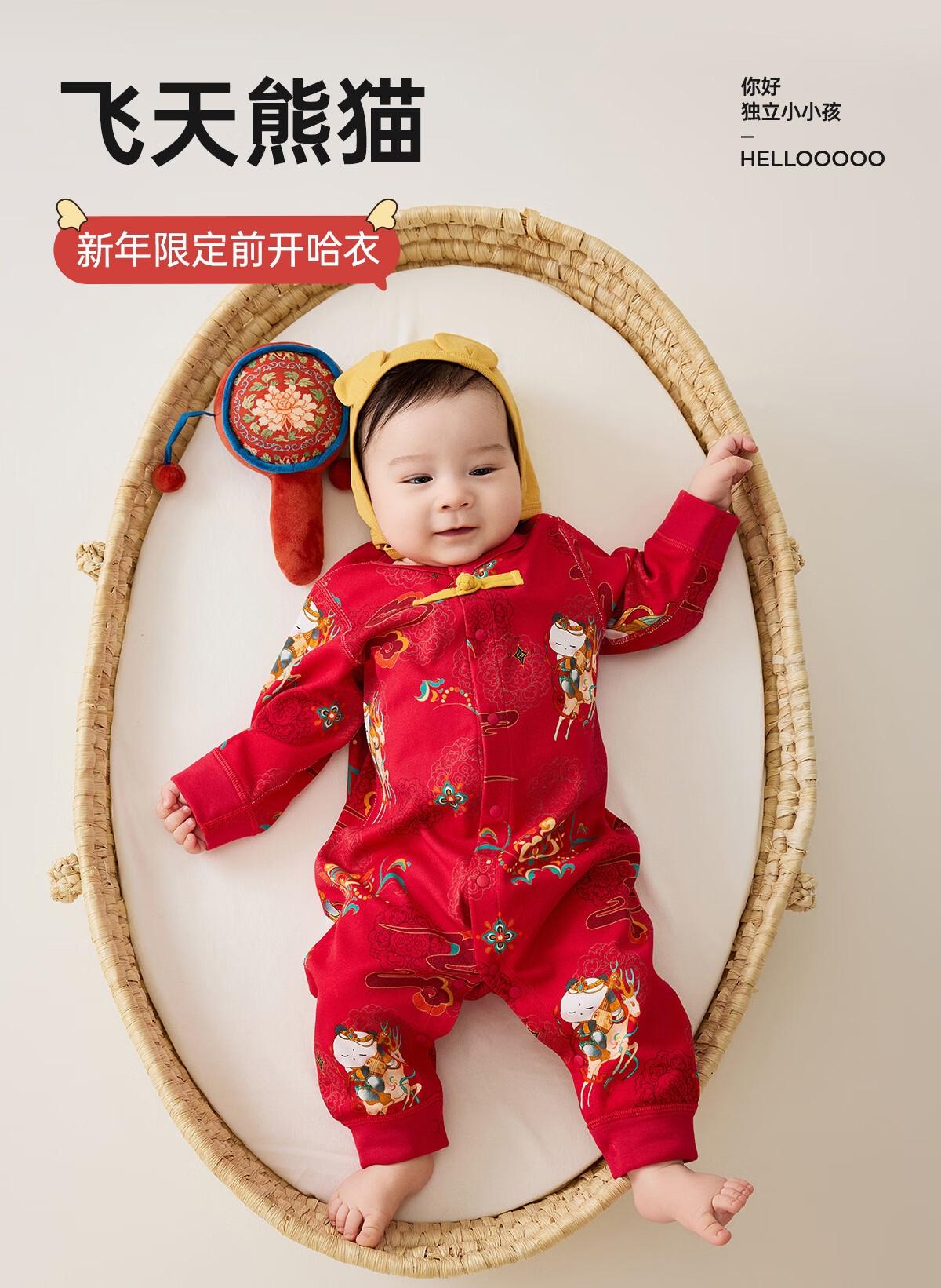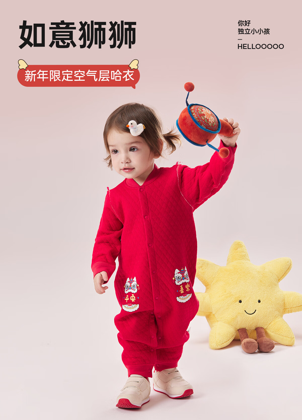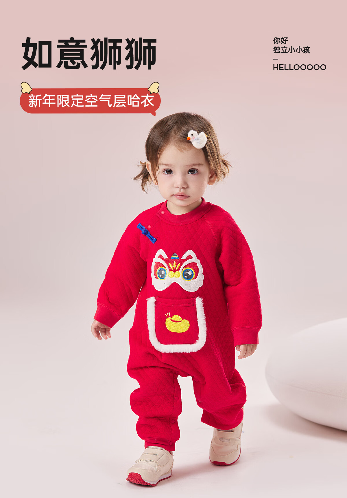 威尔贝鲁(WELLBER)婴儿衣服夹棉哈衣秋冬款新生儿连体衣满月宝宝冬季过年拜年红棉服 【新年】立领夹棉连体衣 90cm