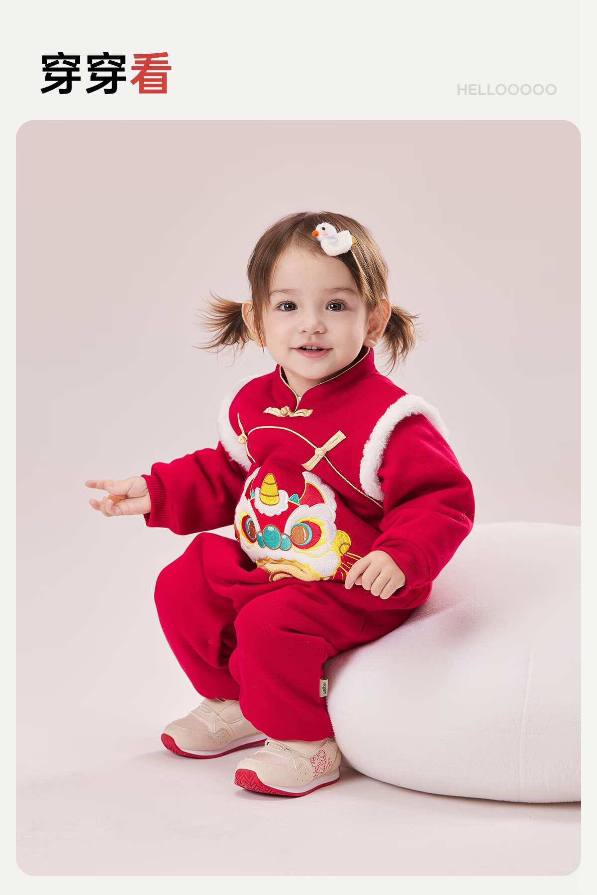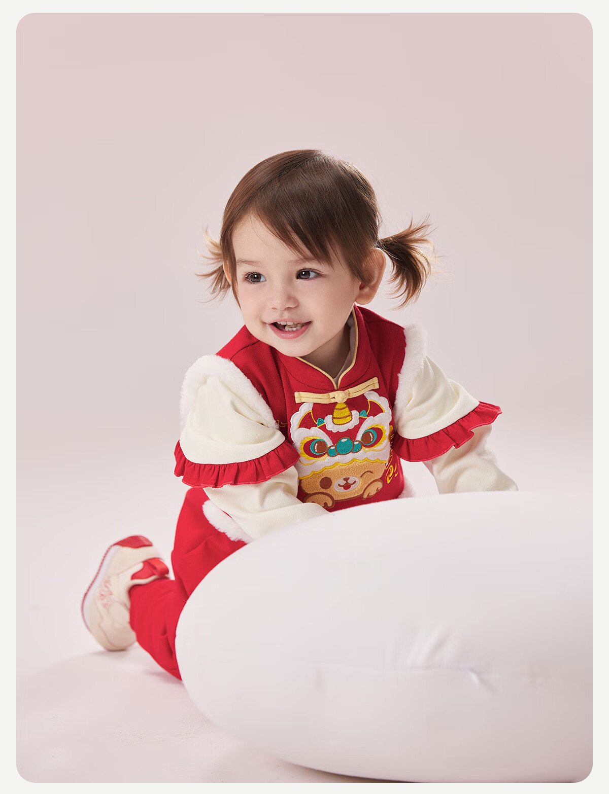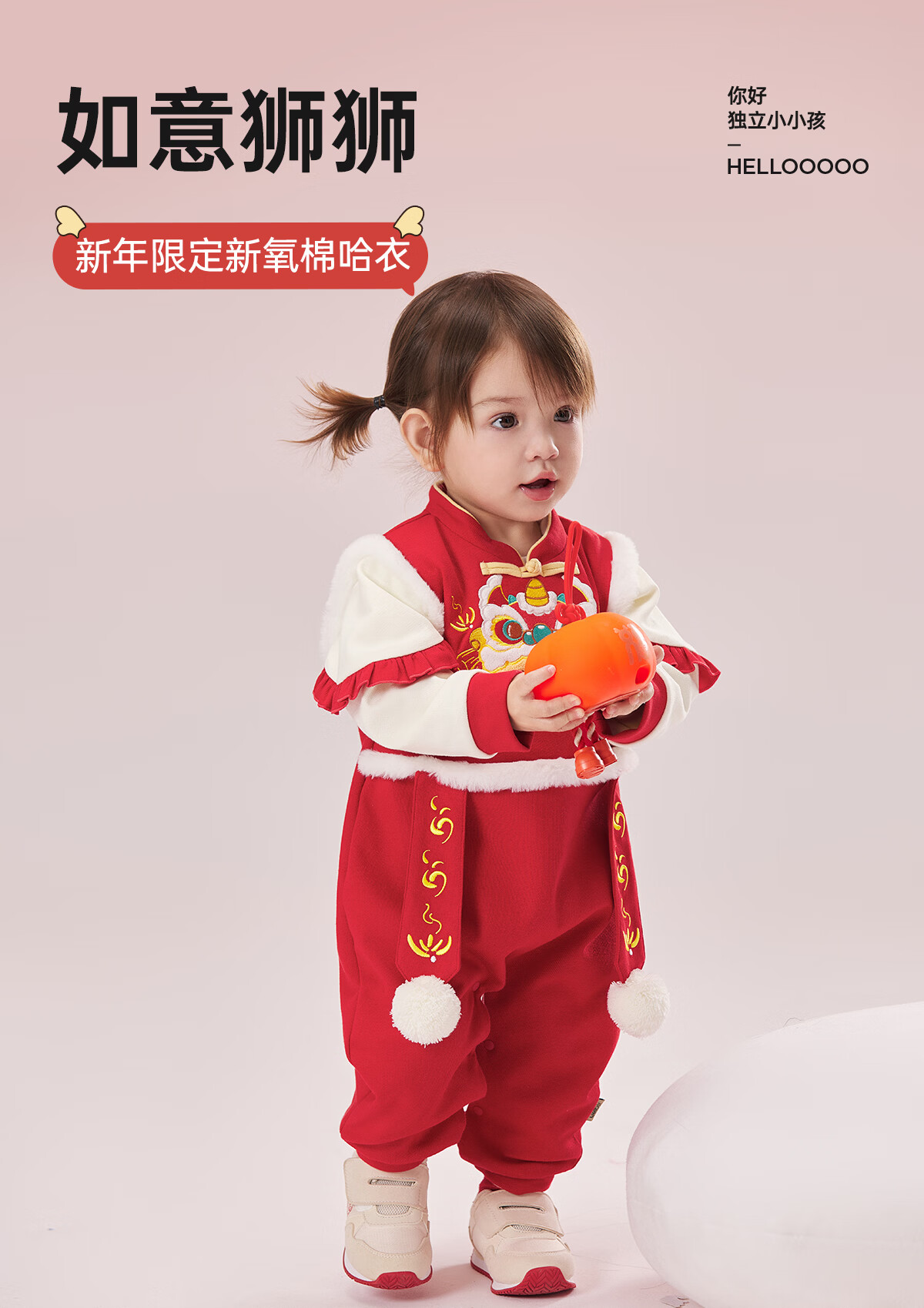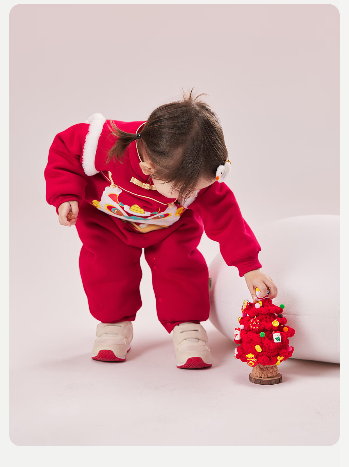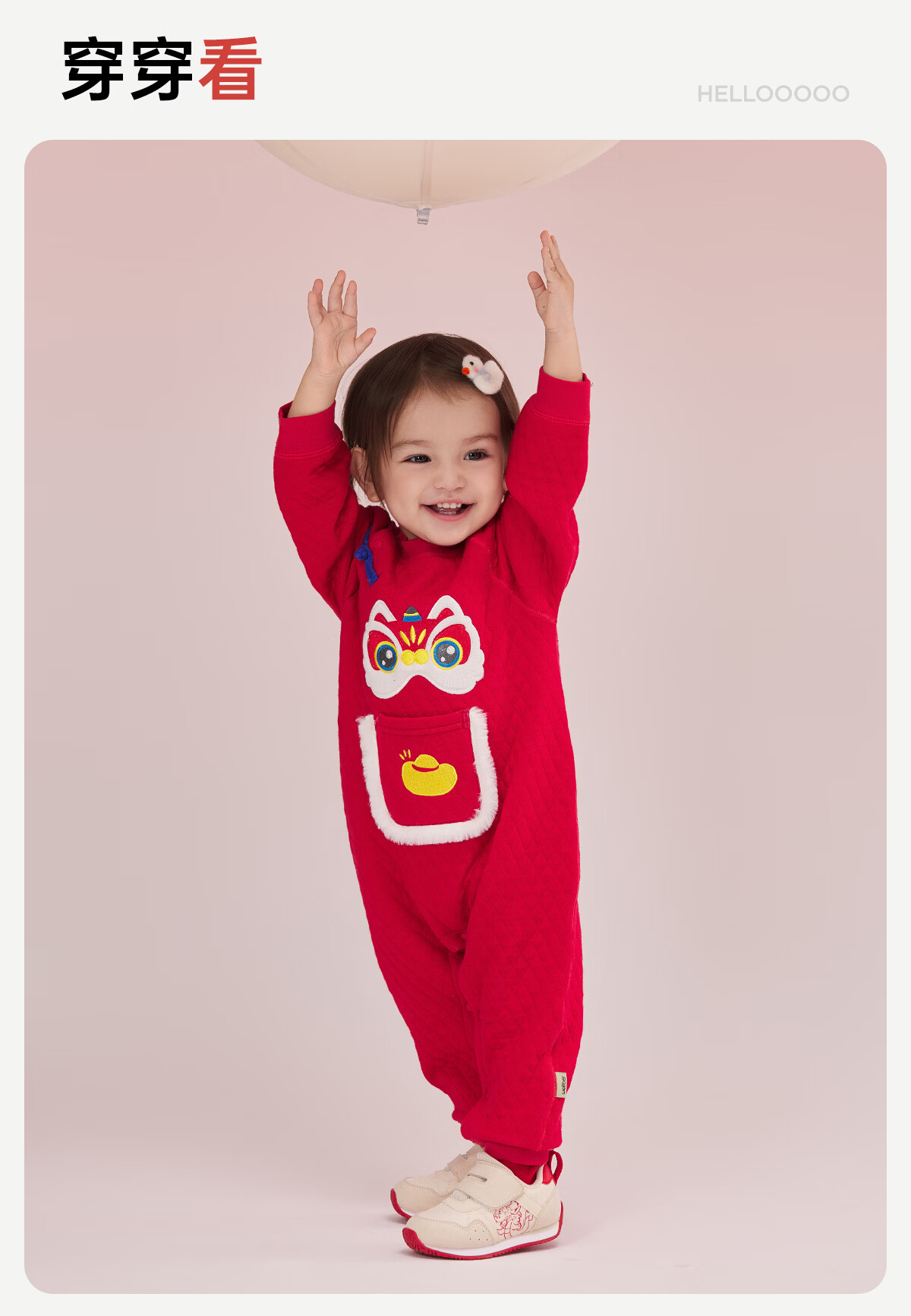 威尔贝鲁(WELLBER)婴儿衣服夹棉哈衣秋冬款新生儿连体衣满月宝宝冬季过年拜年红棉服 【新年】立领夹棉连体衣 90cm