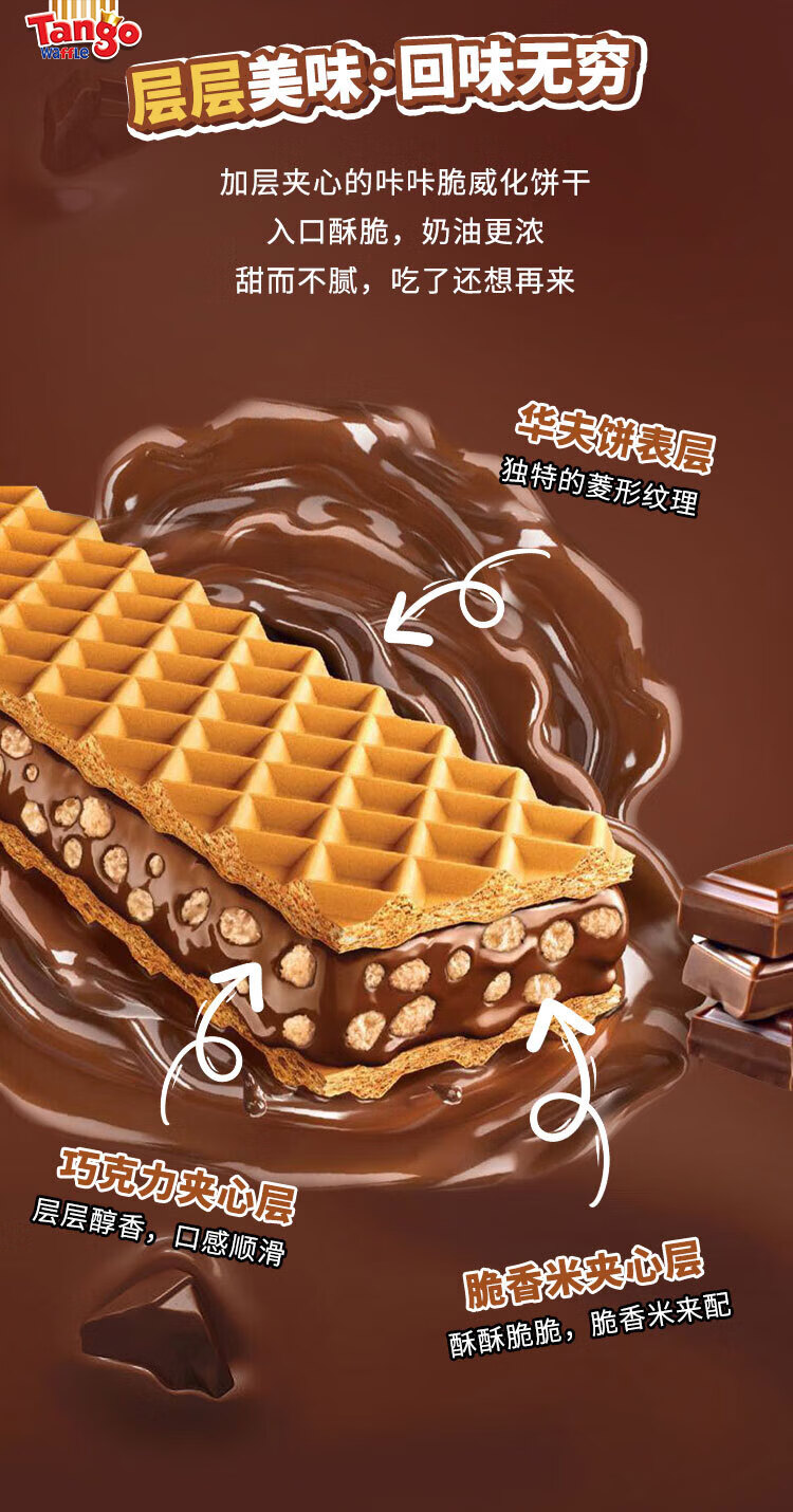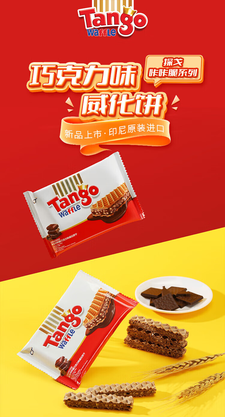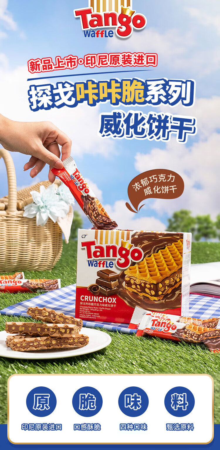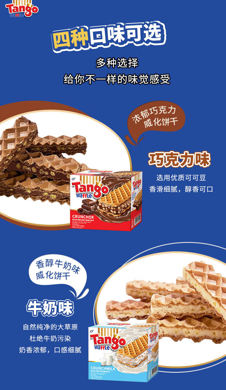 探戈探戈咔咔脆威化饼干160g牛奶巧克力芝士榛子聚会办公进口零食 奶酪*1+牛奶*1+巧克*1 共480g
