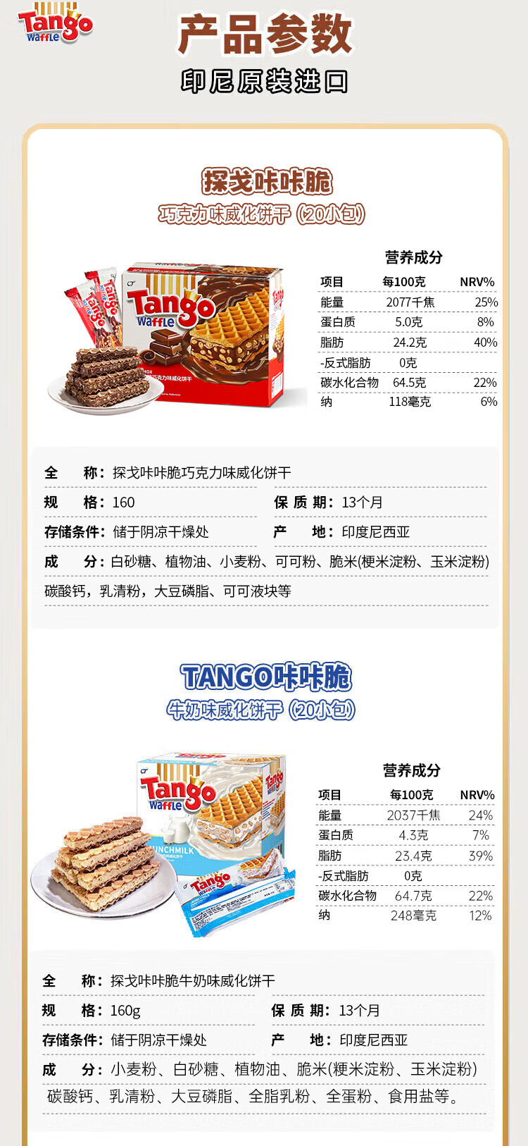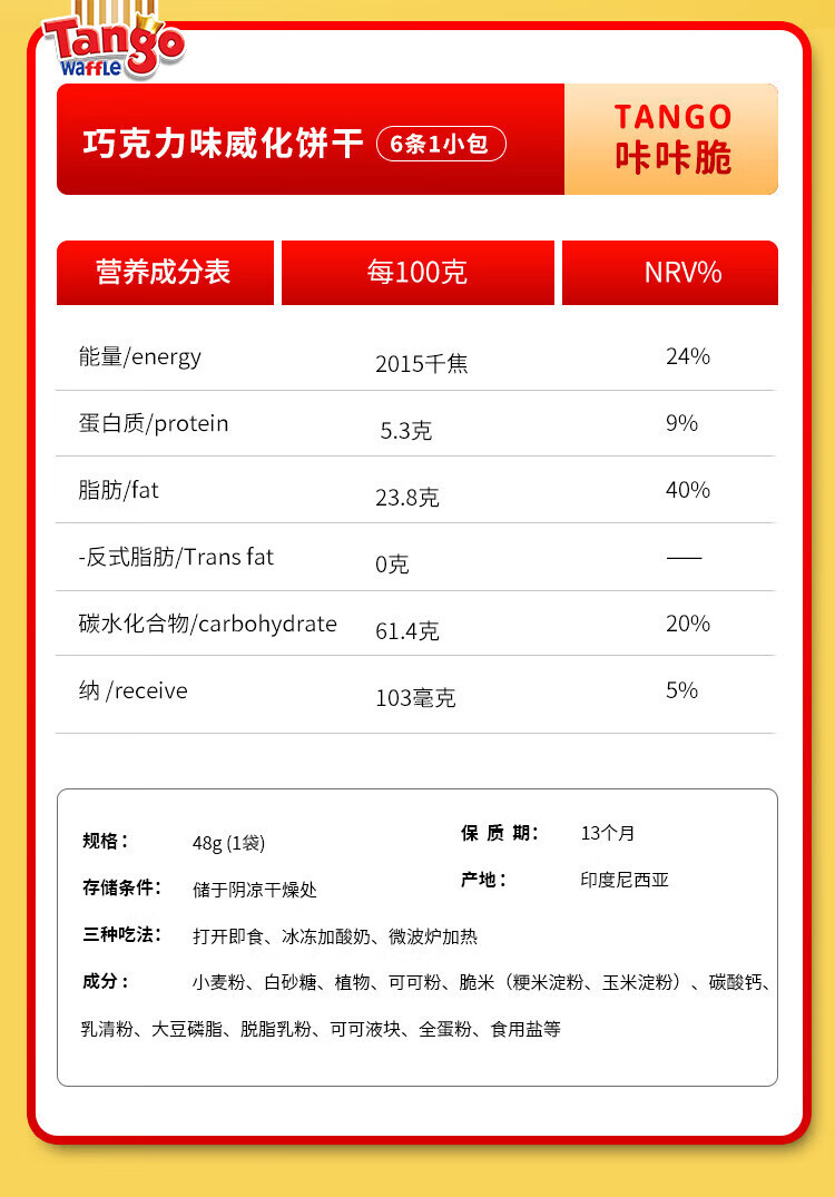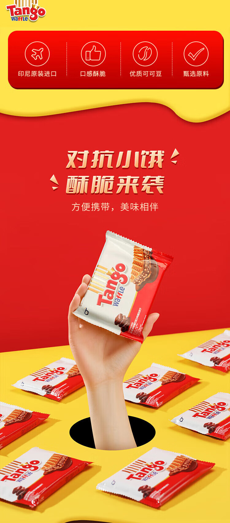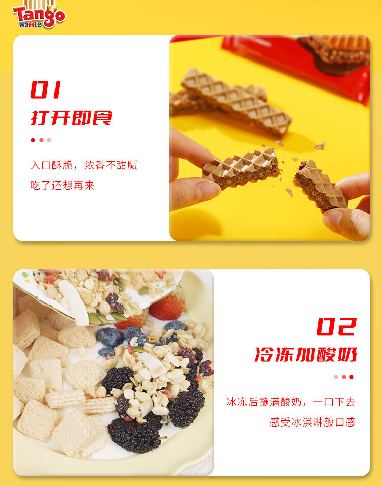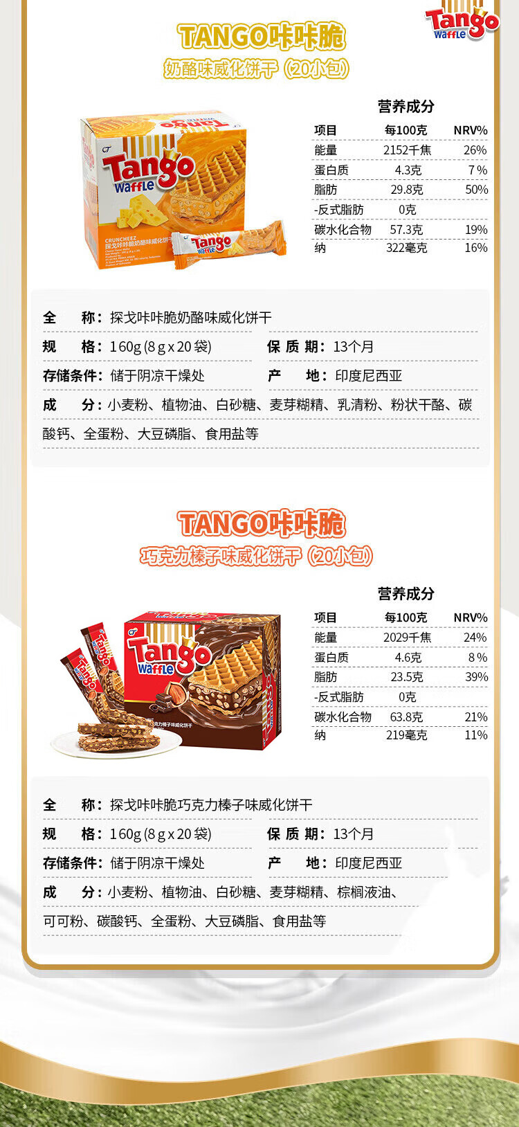 探戈探戈咔咔脆威化饼干160g牛奶巧克力芝士榛子聚会办公进口零食 奶酪*1+牛奶*1+巧克*1 共480g