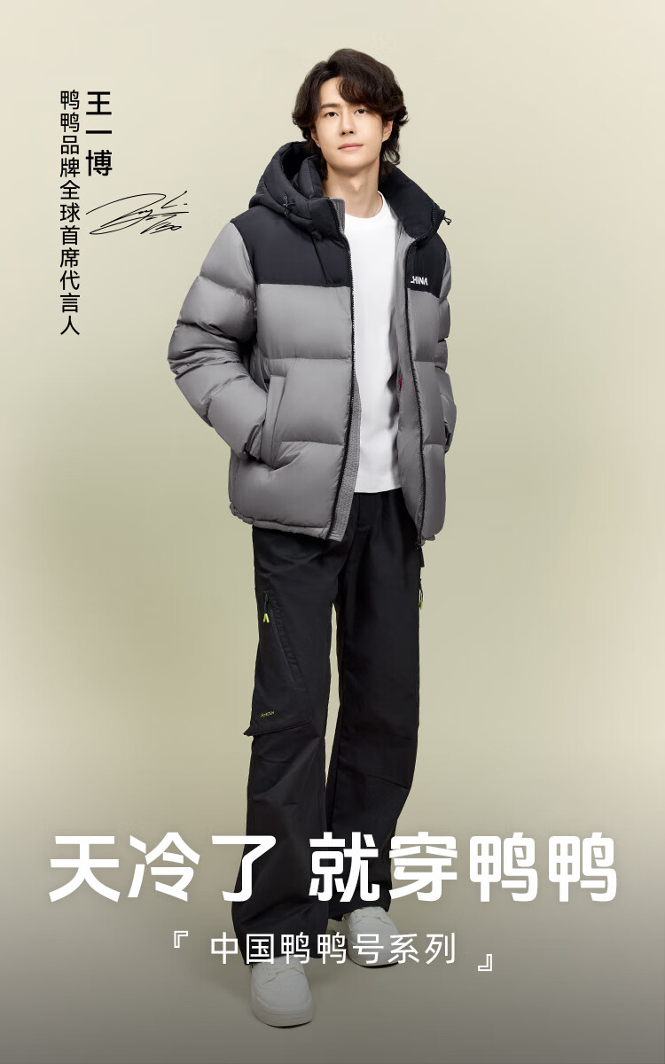 鸭鸭(YAYA)王一博同款320g高充绒冬季新款羽绒服男女零下40度保暖连帽外套 青光黑色 XL