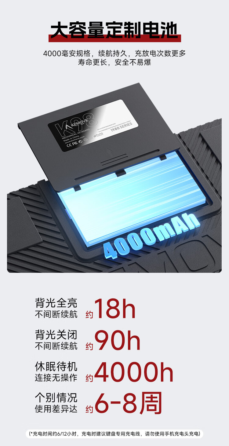 KEMOVE K98 三模无线蓝牙机械键盘客制化全键热插拔双层夹心硅胶填充电竞游戏办公笔记本台式通用键盘 K87 雾蓝 Gateron联合定制 茶轴