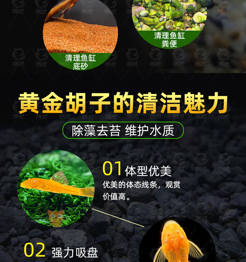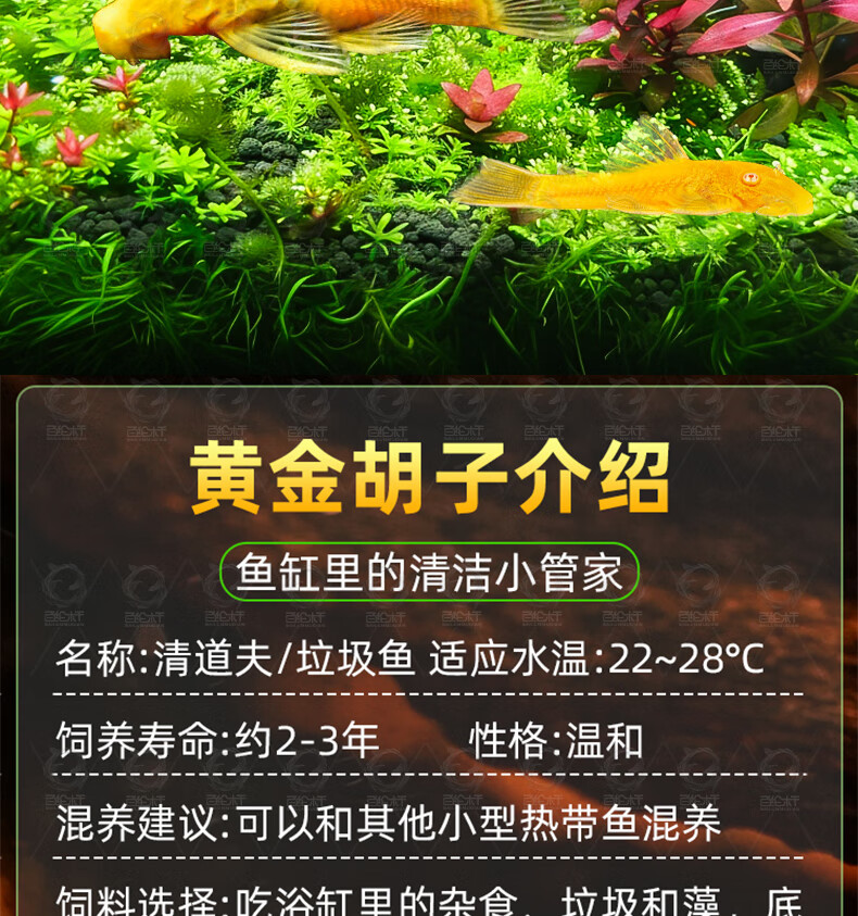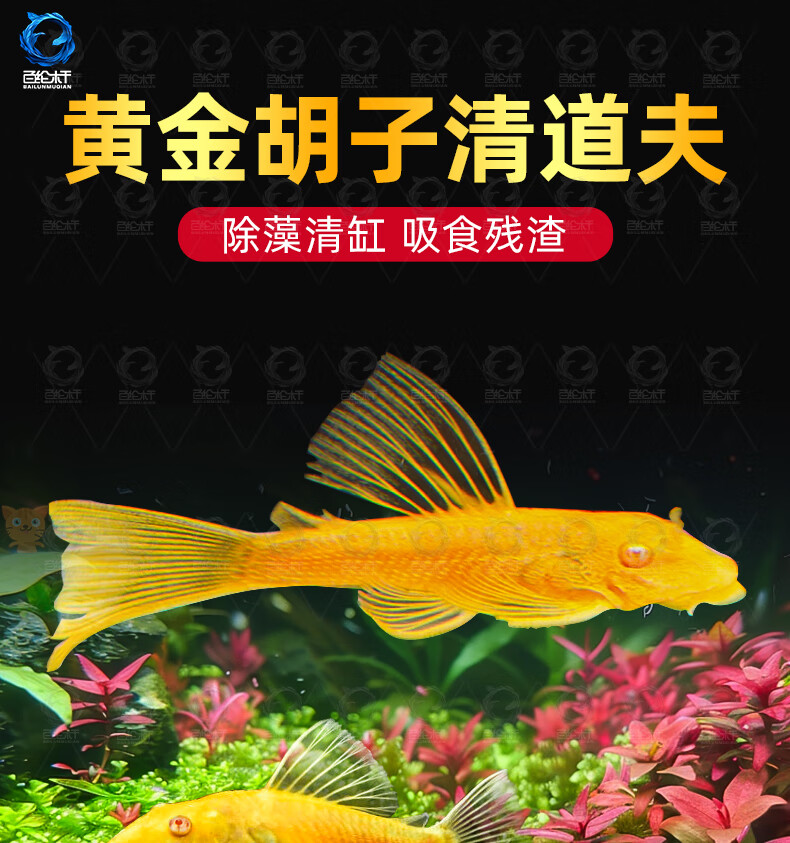 百纶木千黄金胡子鱼缸清洁鱼清理除藻鼠鱼吃清苔观赏鱼清道夫鱼黄金大帆鱼 高品质 3-4cm金色小胡子3条