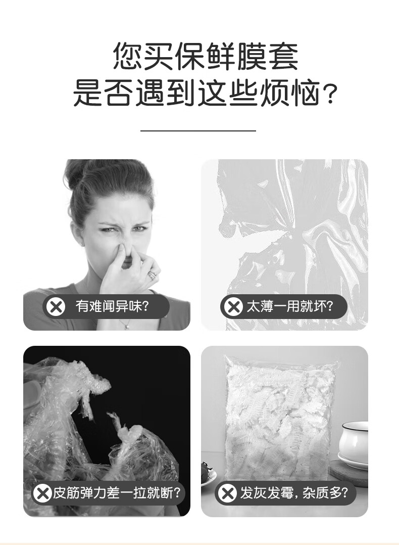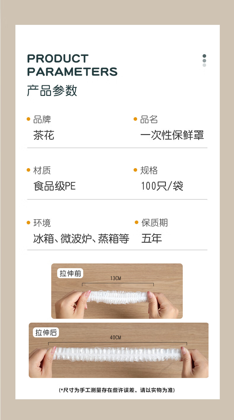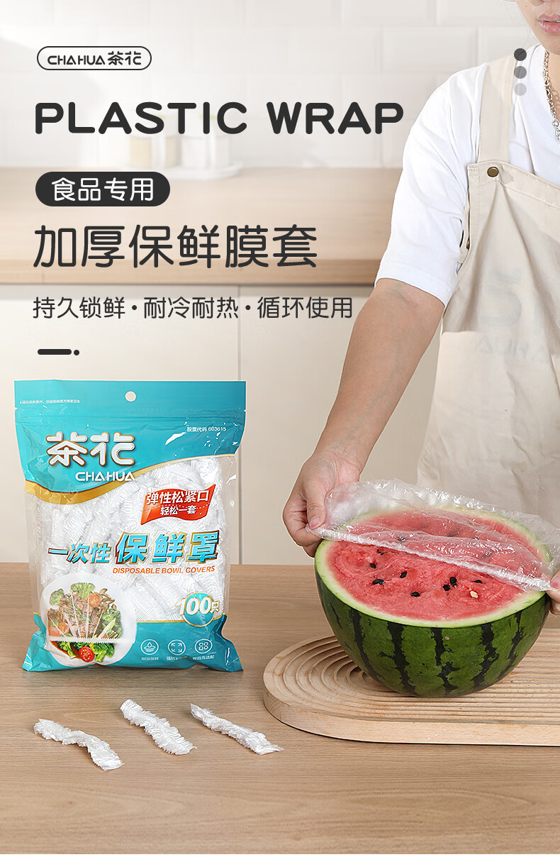 茶花(CHAHUA) 一次性保鲜罩膜松紧通用冰箱饭菜自封口食品级PE防尘保鲜套 200只 可低至0.09/只