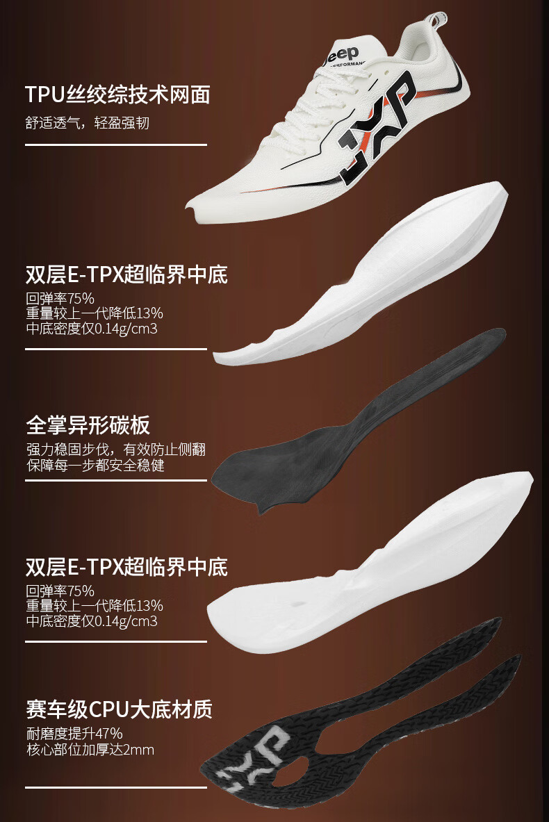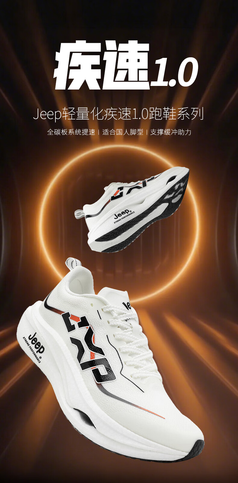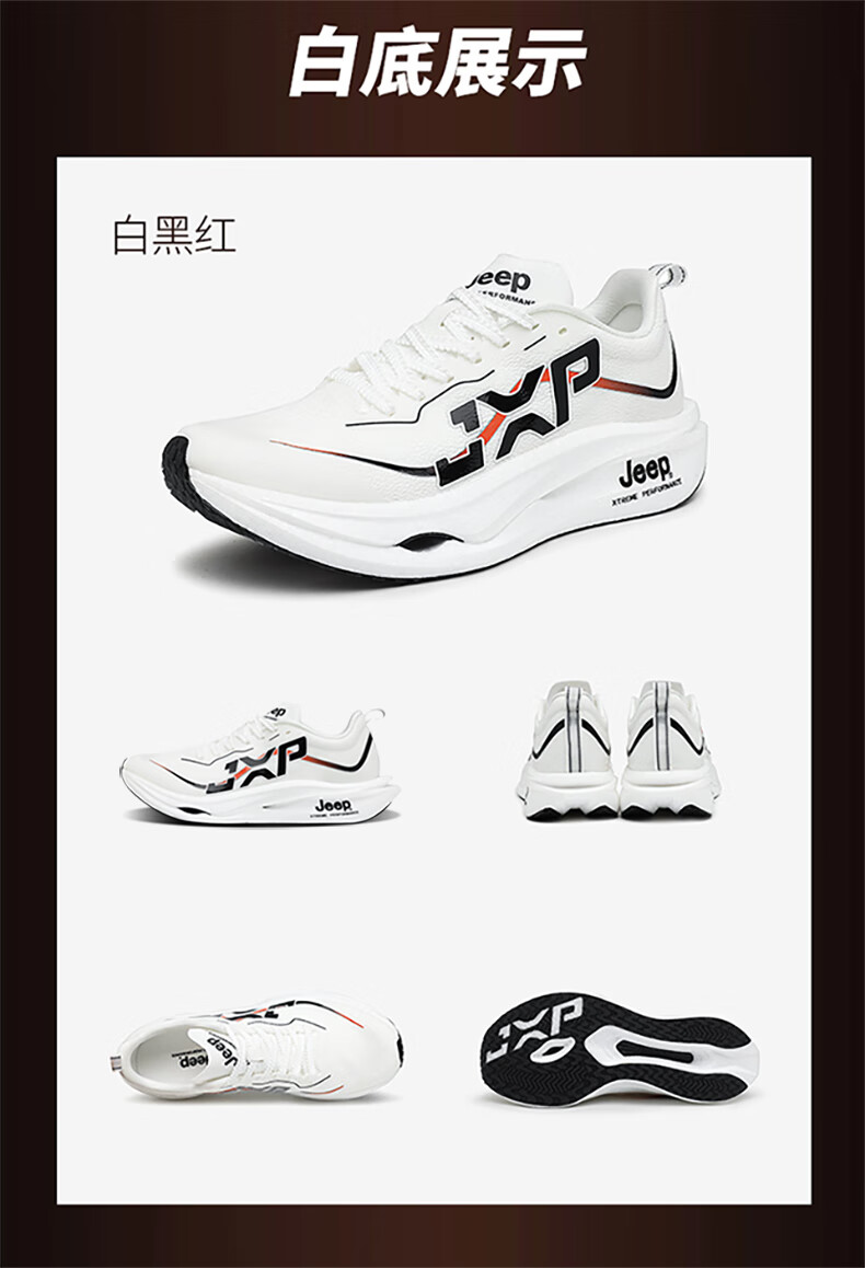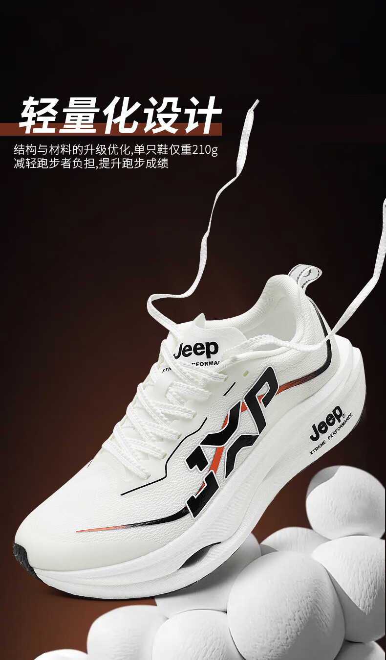 Jeep吉普男鞋疾速1.0全碳板训练跑步鞋轻量化设计软底跳绳运动鞋子男 白红色 40 运动鞋尺码