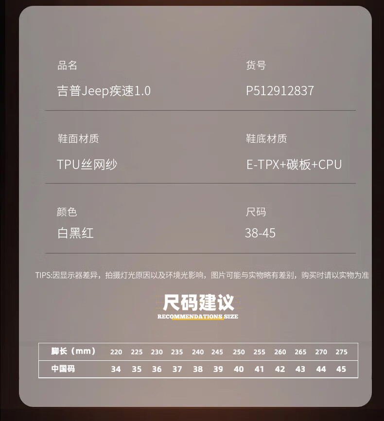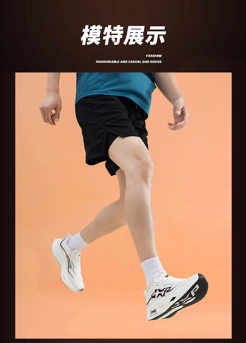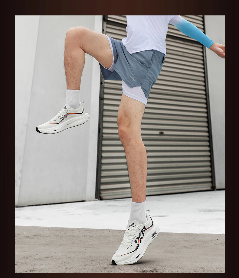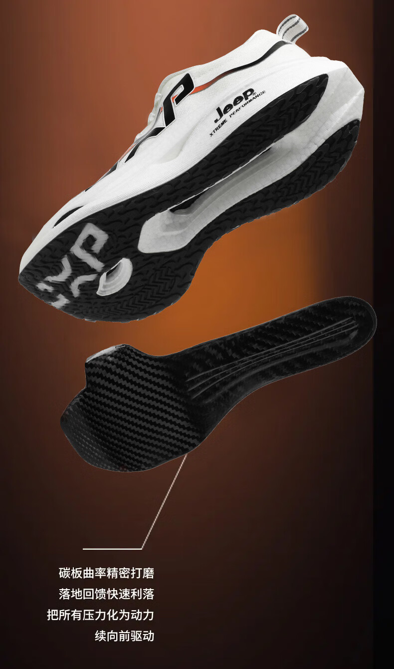 Jeep吉普男鞋疾速1.0全碳板训练跑步鞋轻量化设计软底跳绳运动鞋子男 白红色 40 运动鞋尺码