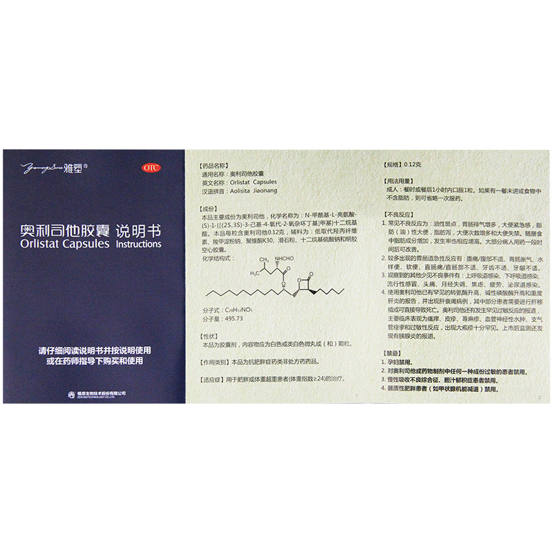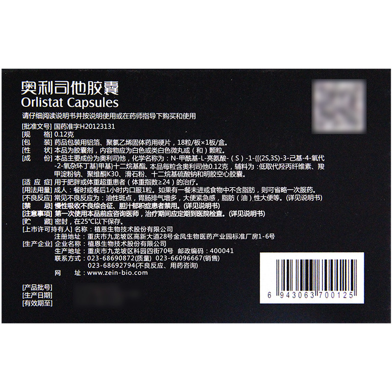 [雅塑]奥利司他胶囊 0.12g*18粒 1盒装 奥利司他胶囊0.12g*18粒减脂减重减肥用药国药准字OTC男女通用