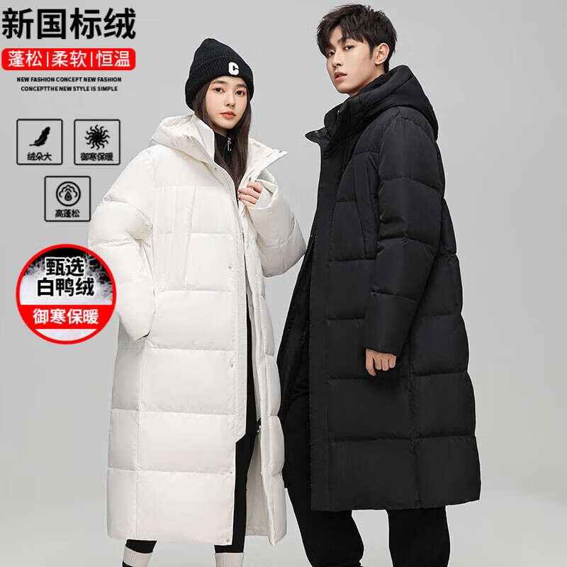 国际标准羽绒服高品质服男女情侣连帽外套新国标高品质保暖大衣 白色 S