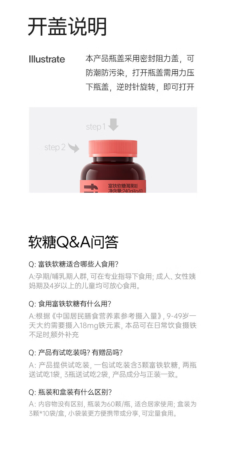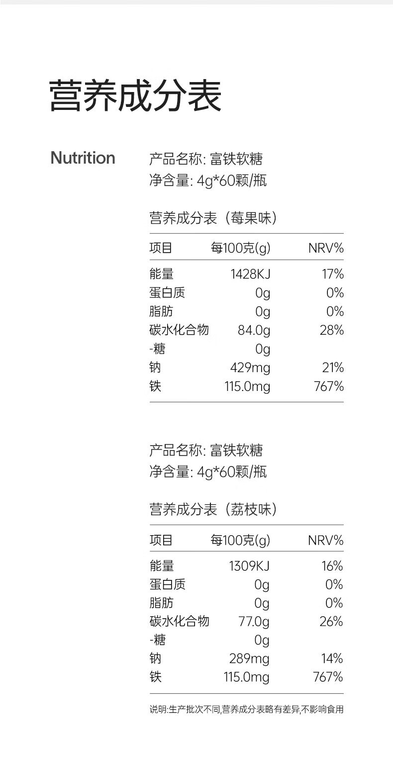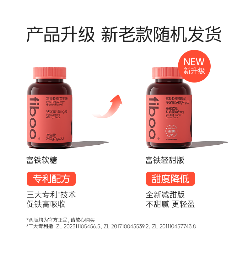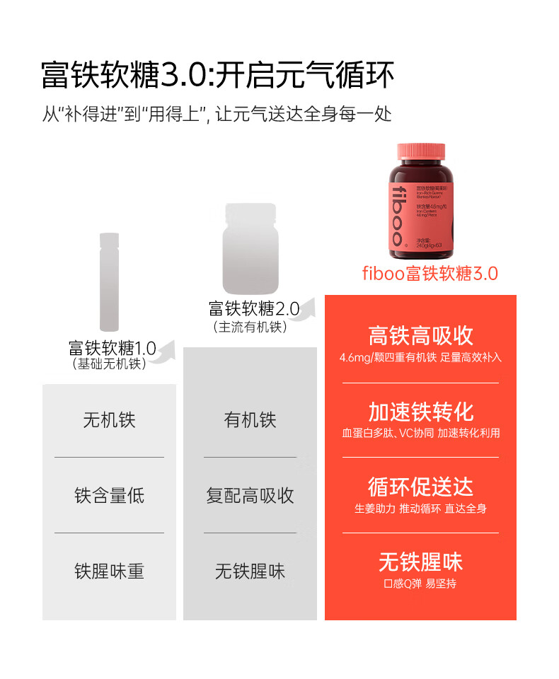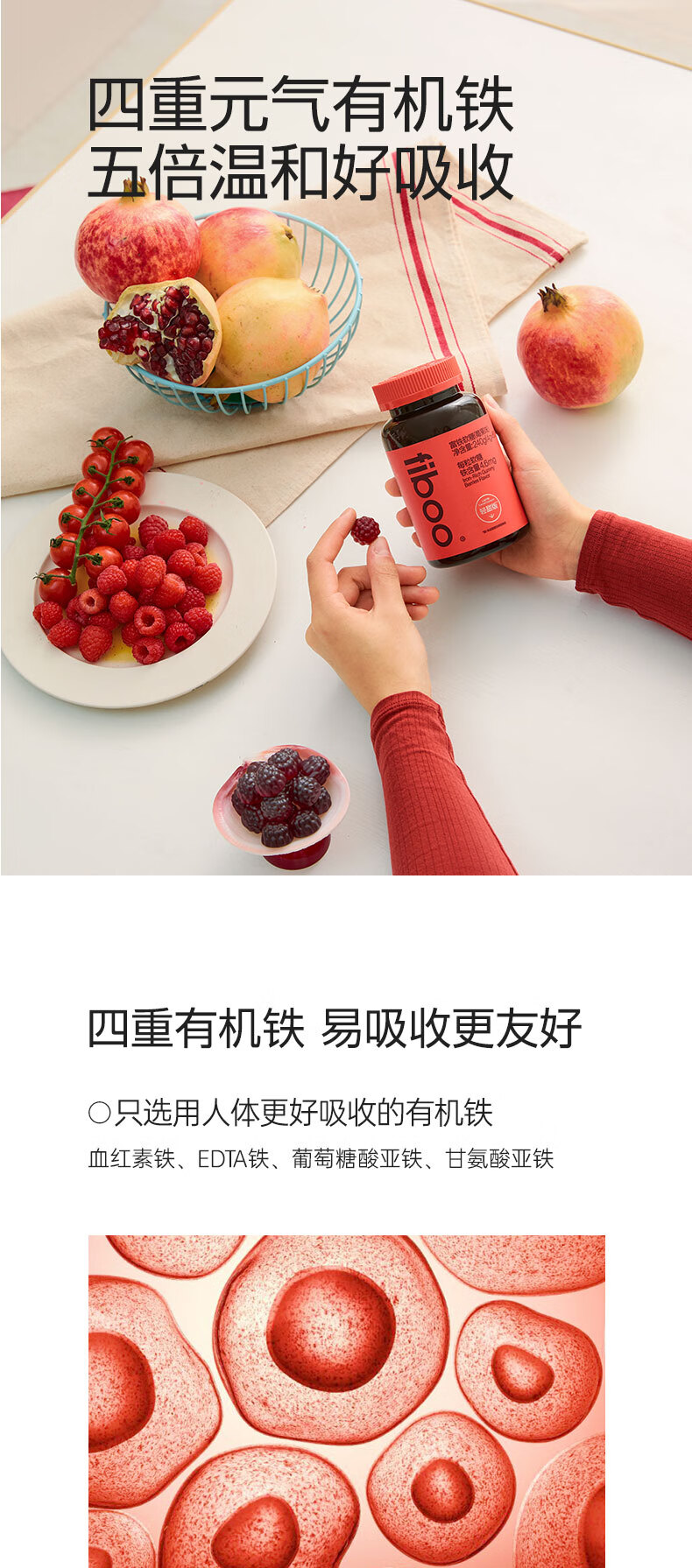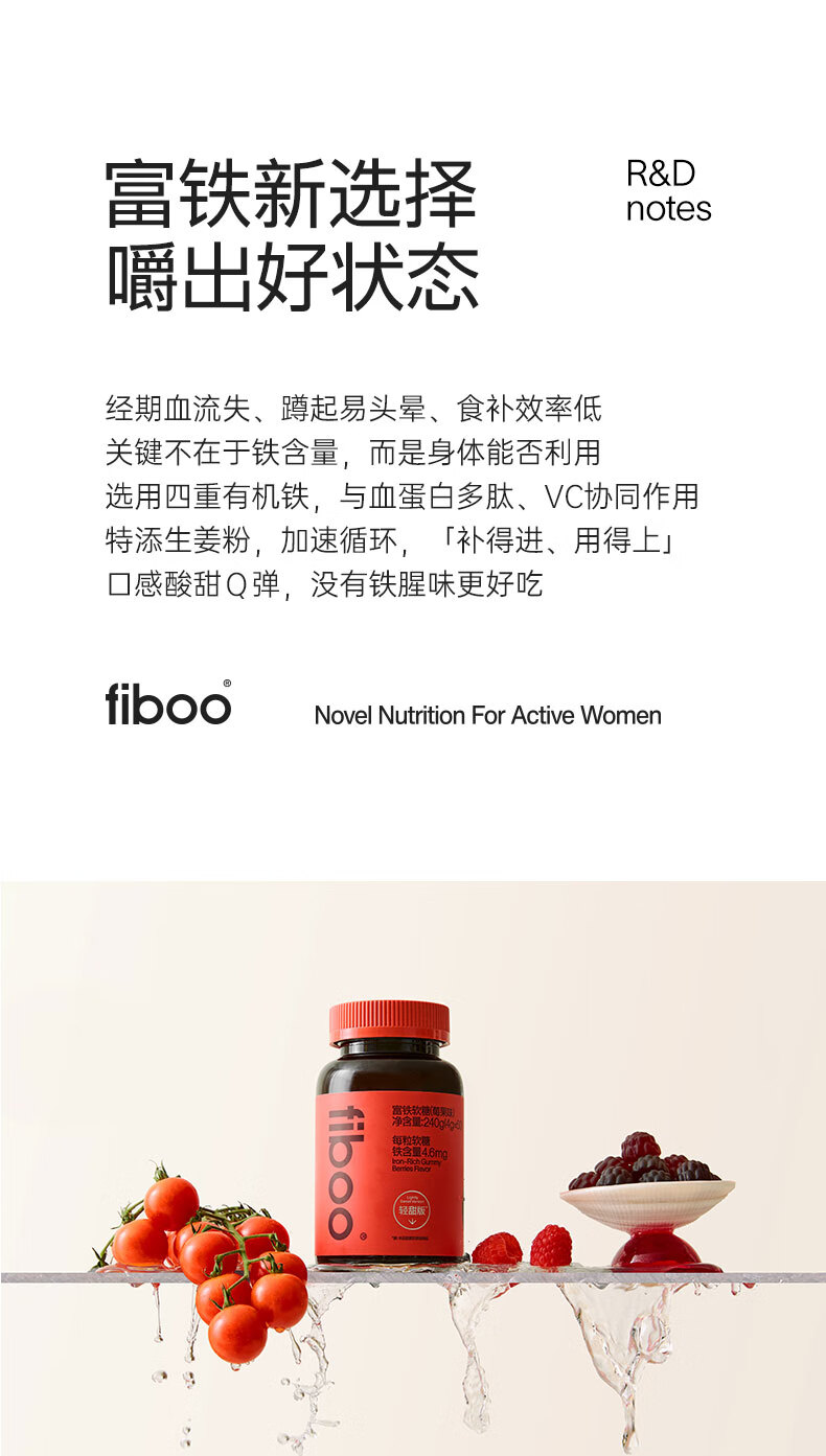 FIBOO她练富铁补铁软糖元气铁孕妇女性哺乳期补元素铁养气血0蔗糖含维c 【如自选口味 联系客服】 60粒*2瓶