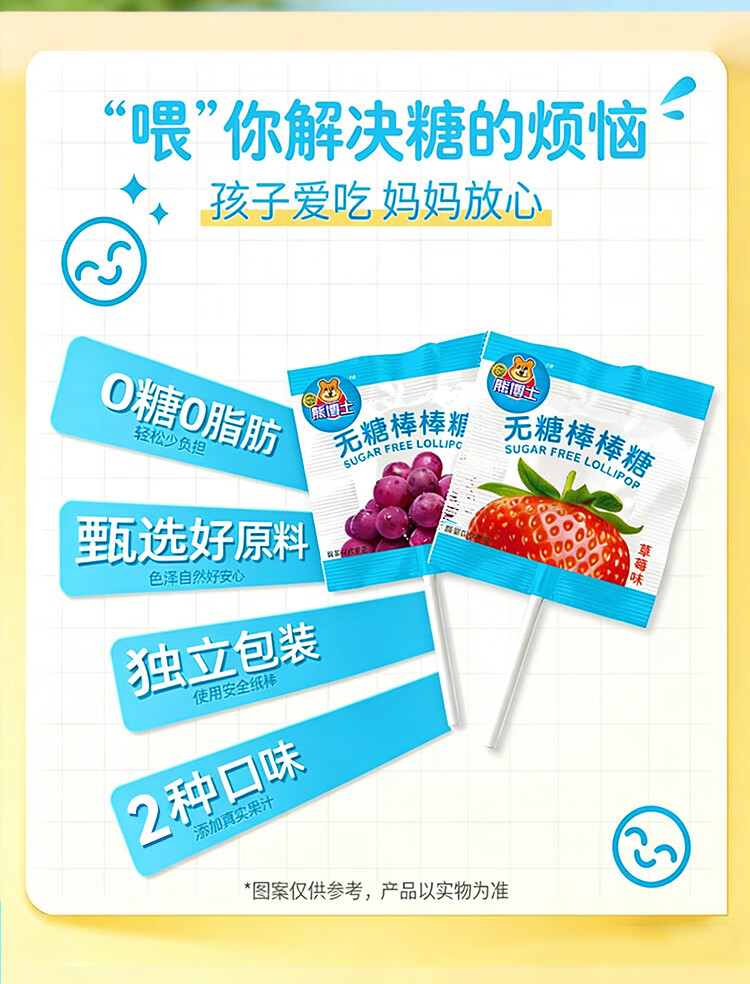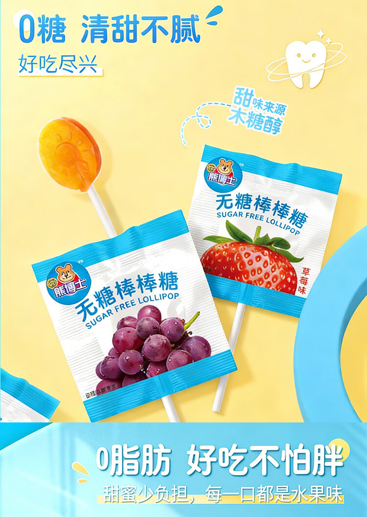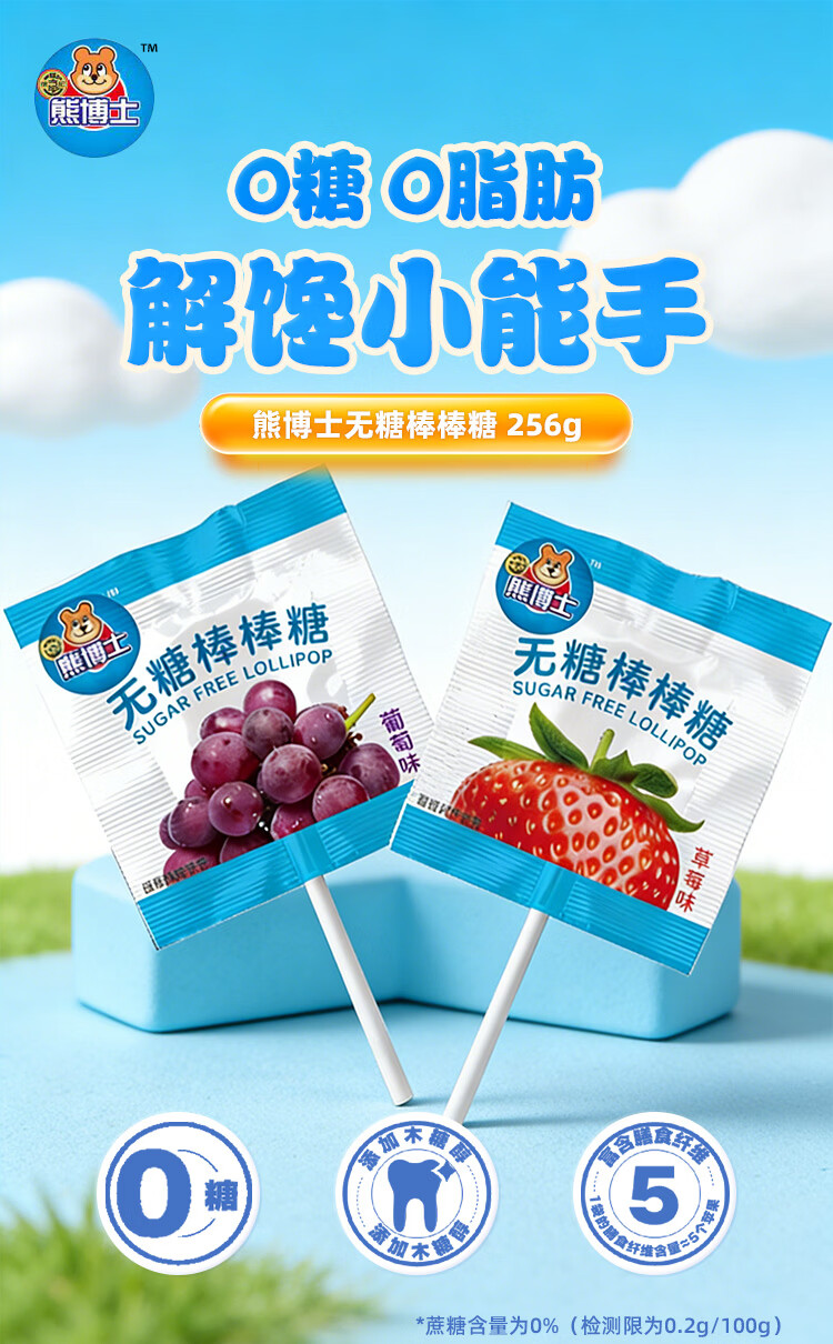 徐福记 熊博士无糖棒棒糖256g 新年礼物儿童糖果 办公室零食 侯明昊推荐